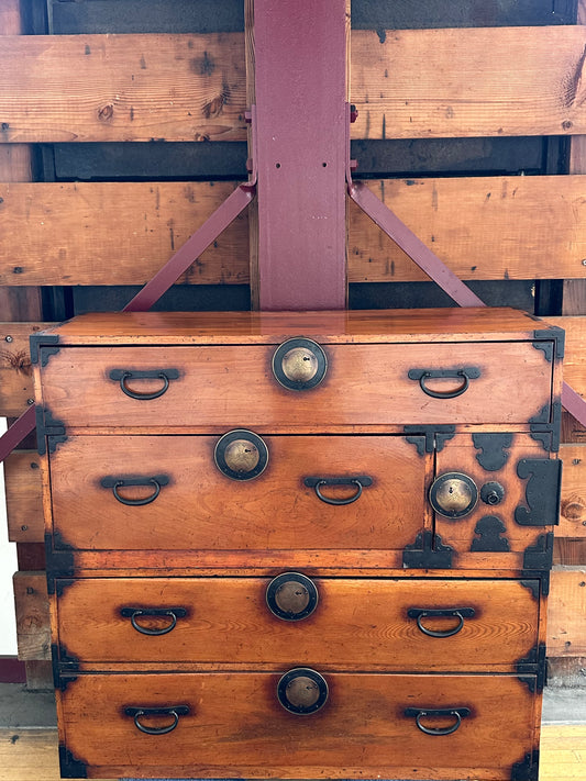 Antique Japanese Meiji Ishōdansu Kimono Tansu Chest Sugi Wood 38"H