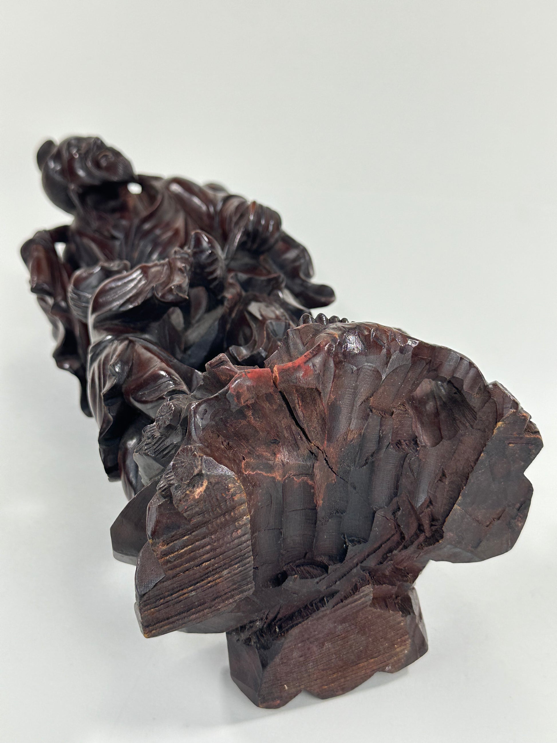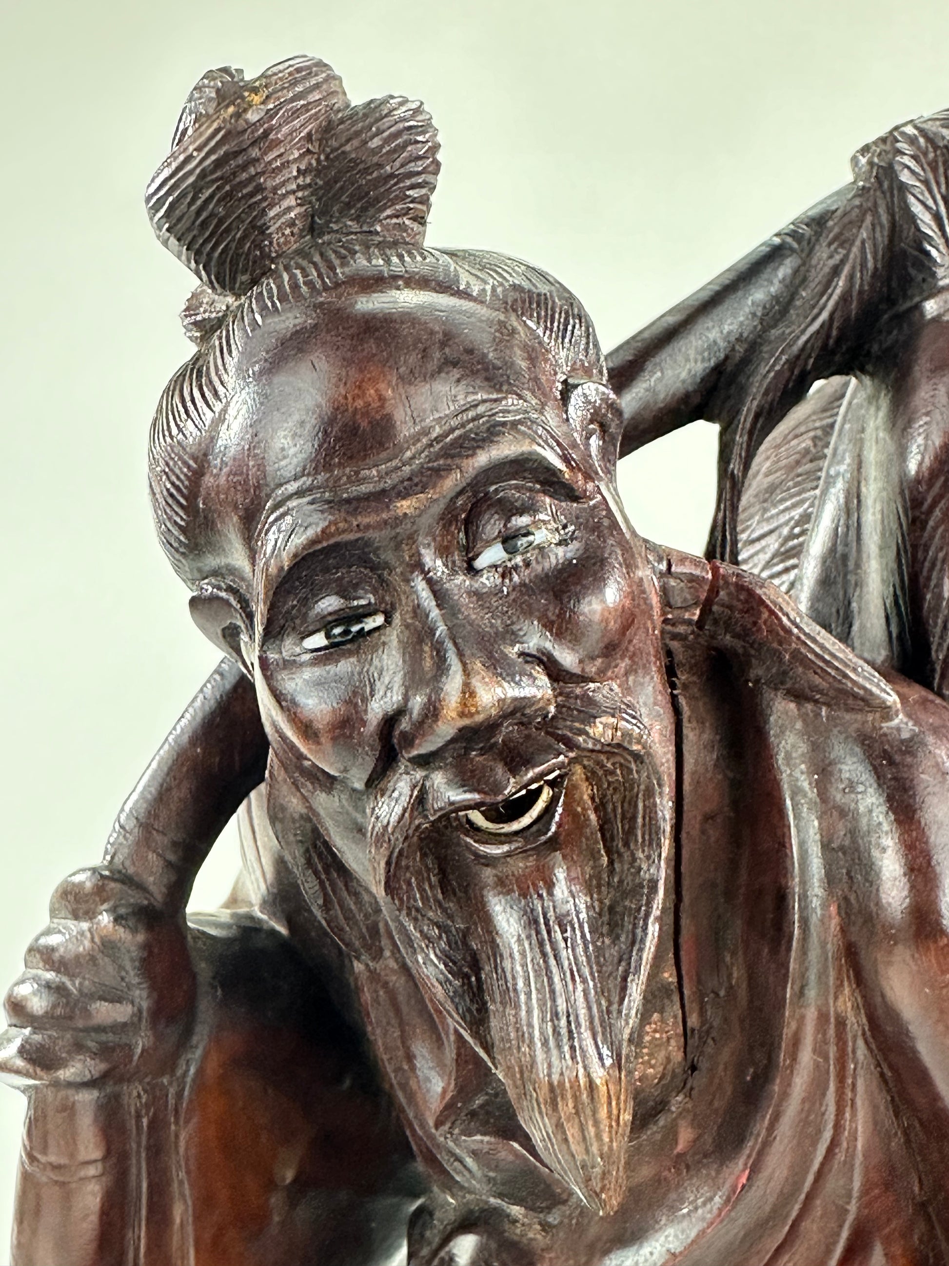 Antique Chinese Carved Wooden Statue of Shoulao 14”
