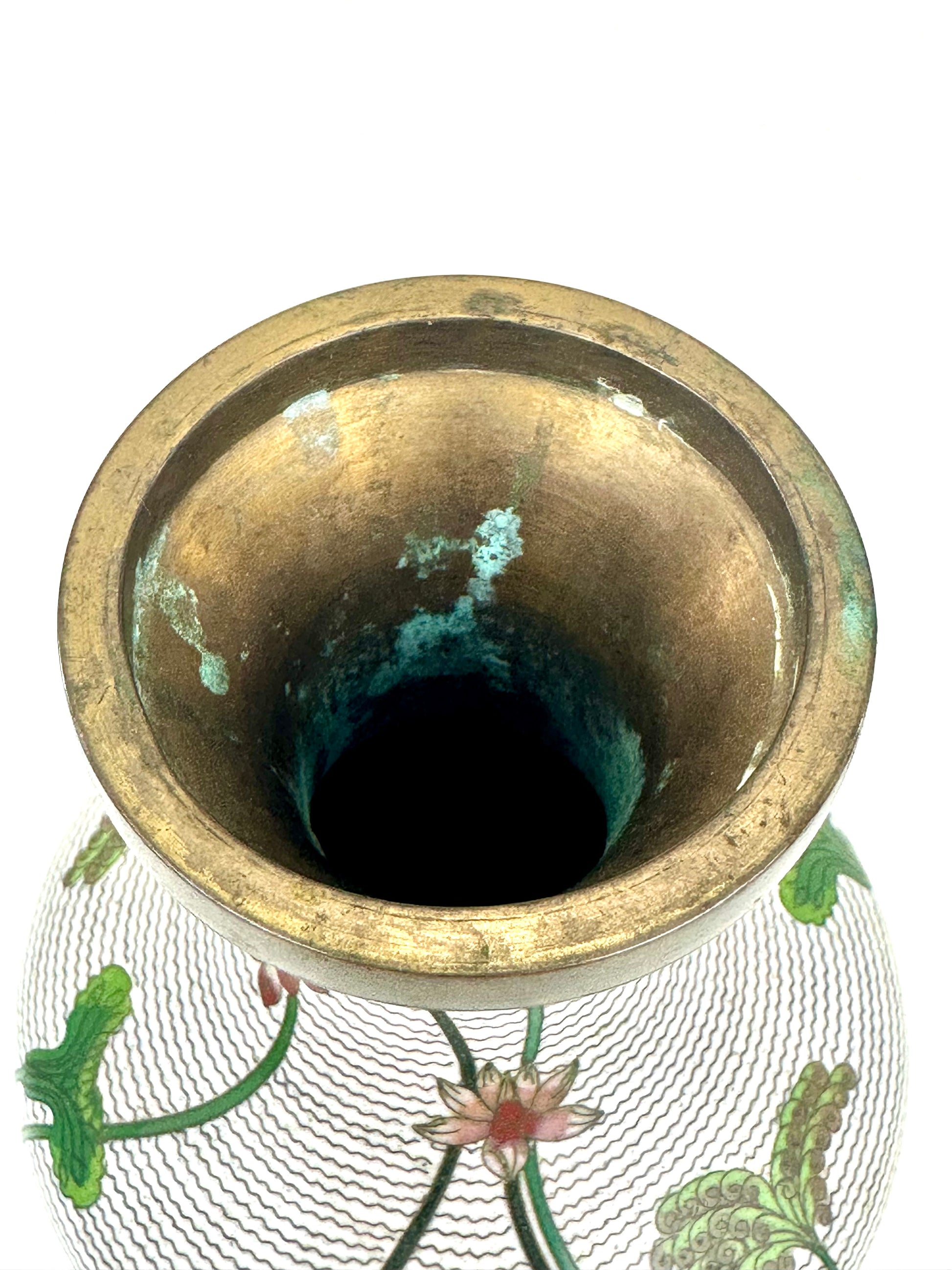 Antique Chinese Late Qing Dynasty (c1910) Cloisonné Vase Lotus Flower 6”