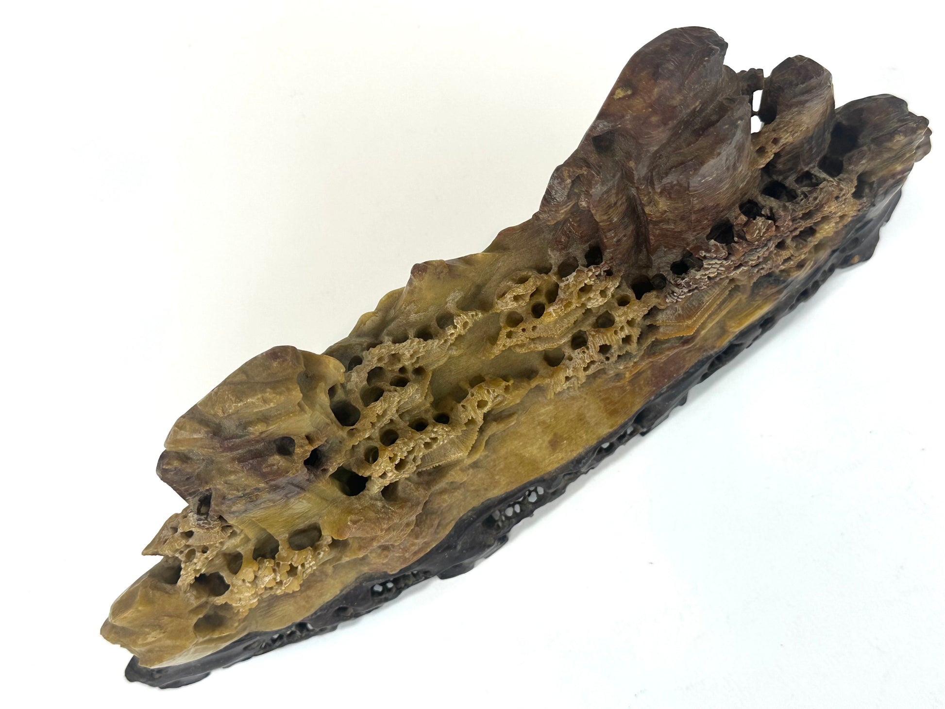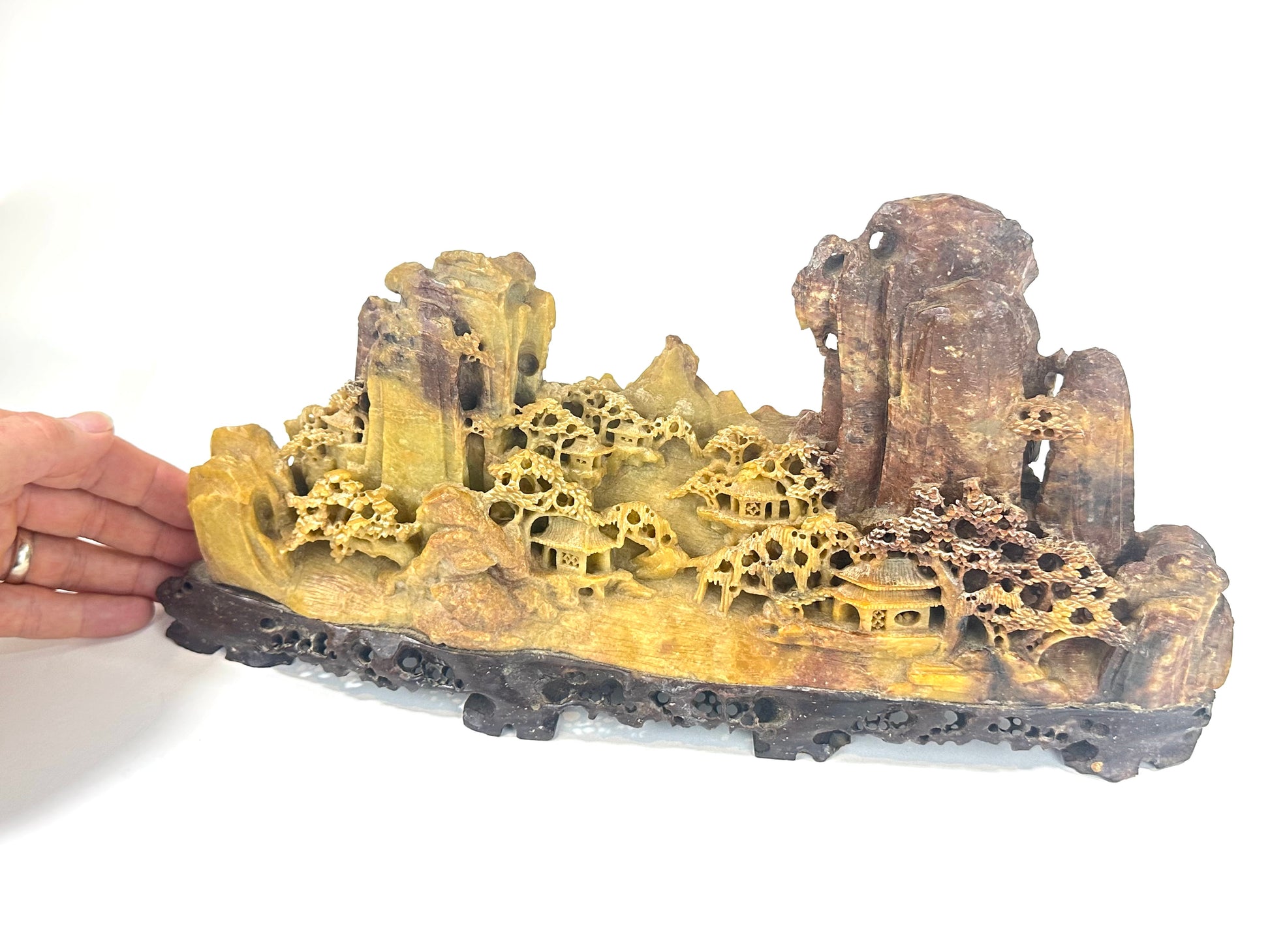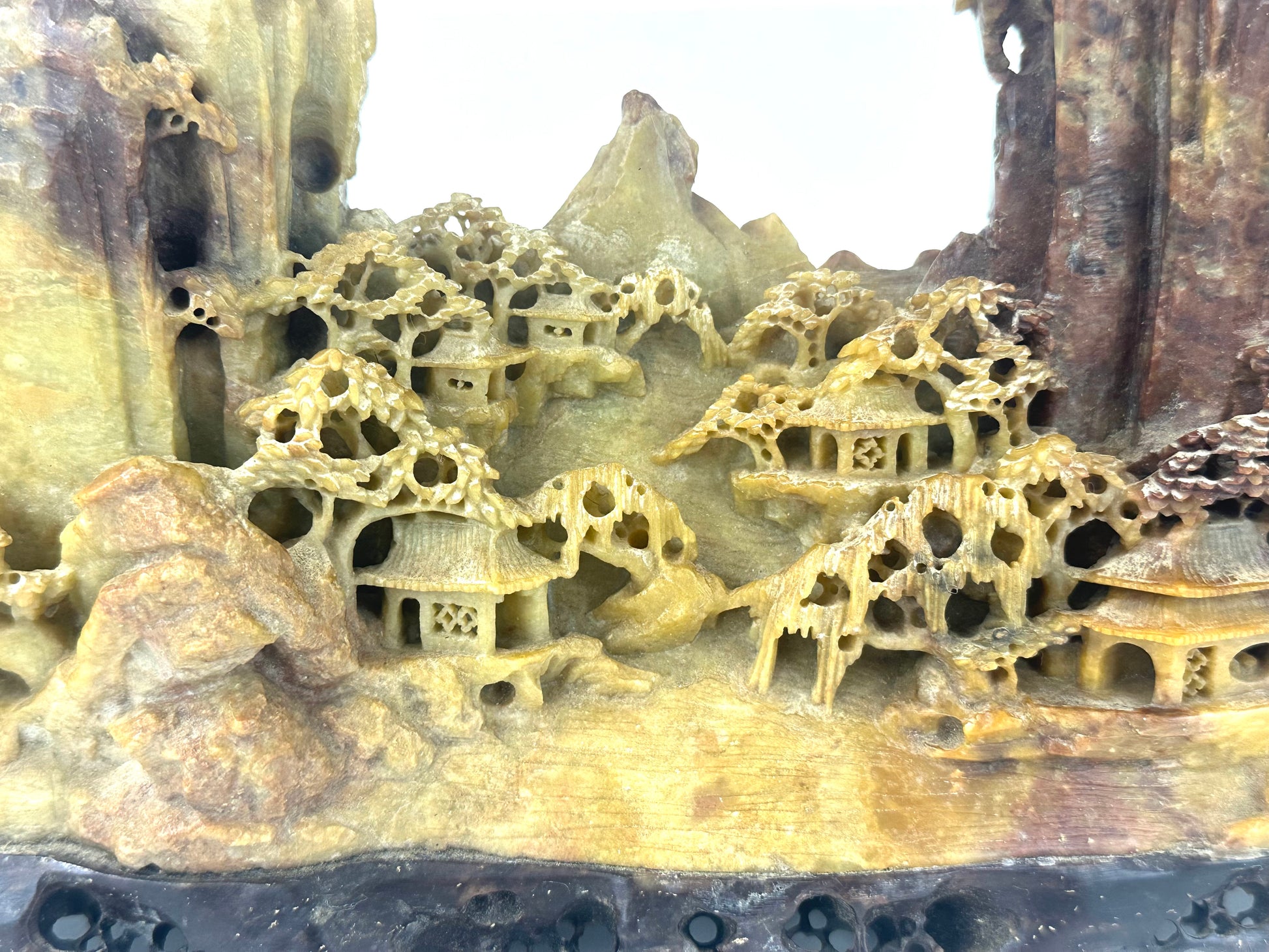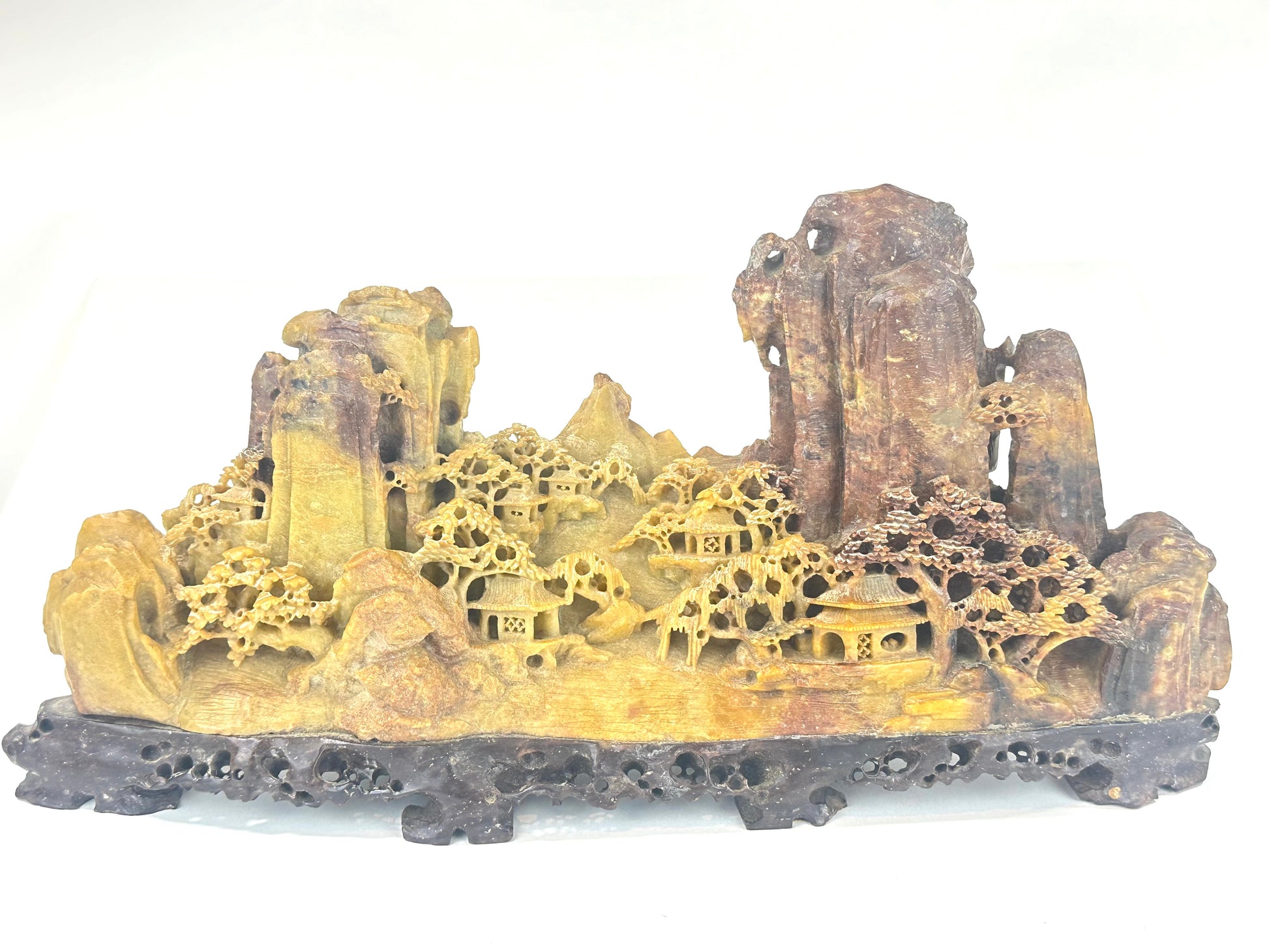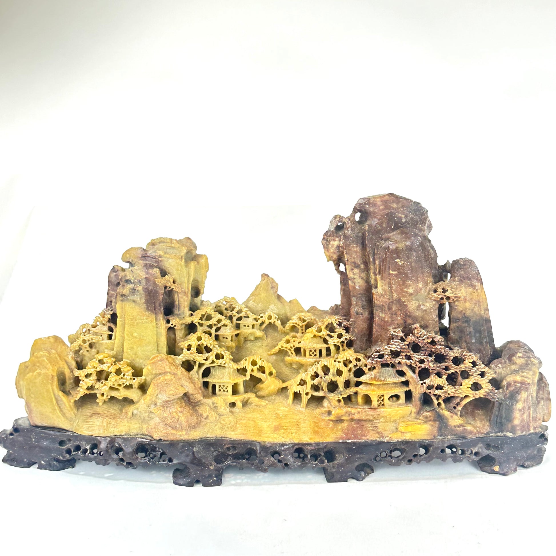 Antique Chinese Natural Carved Stone Mountain Village 12”