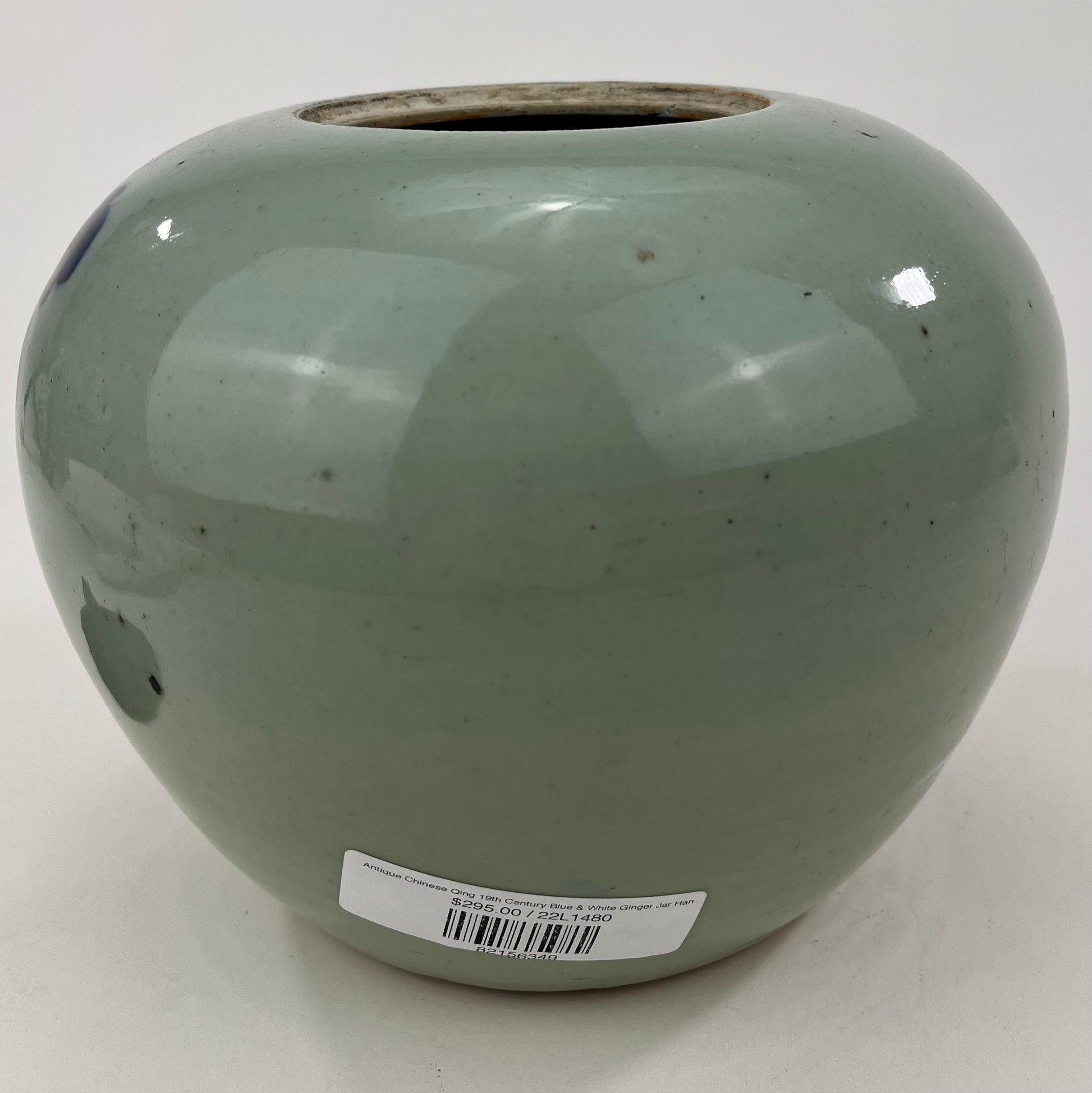 Antique Chinese Qing 19th Century Blue & White Ginger Jar Hand Painted 8"