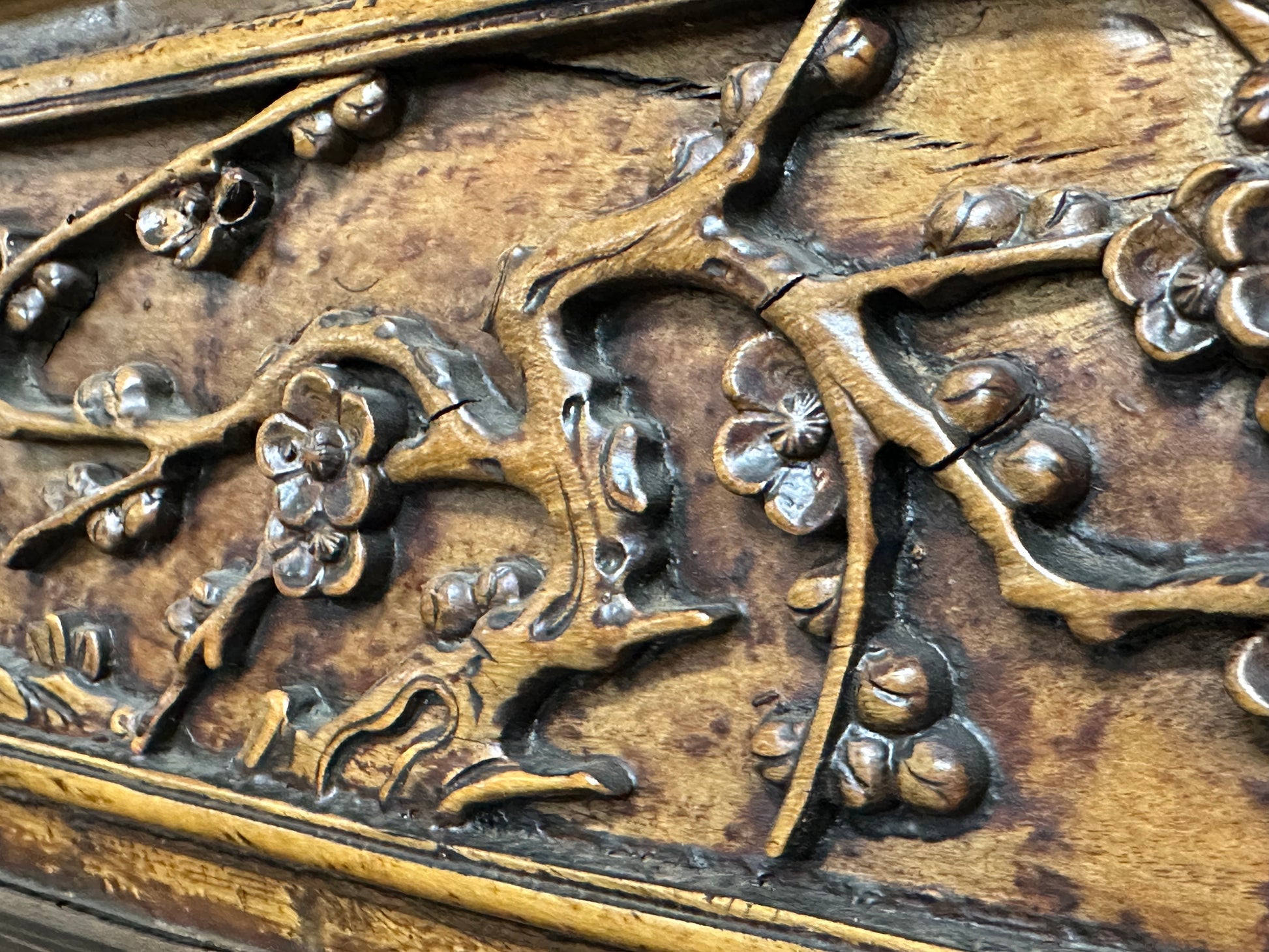 This carving was once incorporated into a much larger part of a room design. During the Chinese cultural revolution most of these fabulous carvings were destroyed. Some were saved and warehoused until recently. As China attempts to maintain her long cultural heritage, such carvings are no longer being allowed out the country.