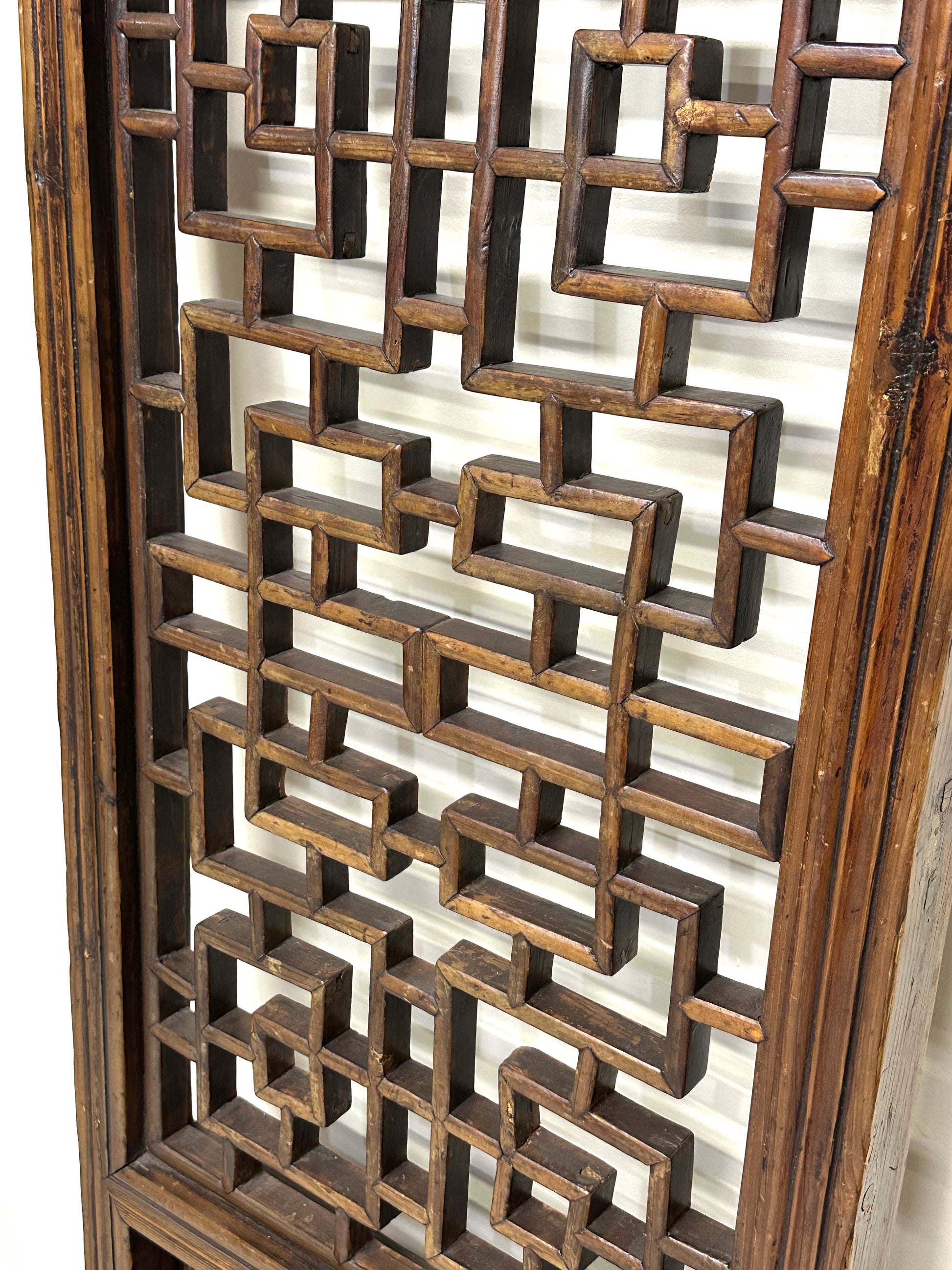 Antique Chinese Qing Dynasty 19th Hand Carved Wood Window Panel 21 x 66