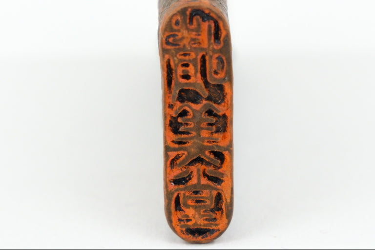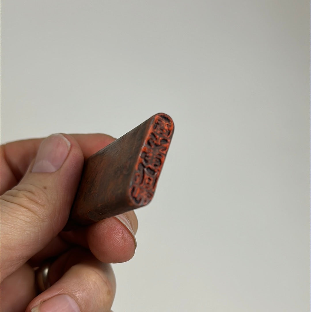 This is a vintage Chinese booxwood stamp known as an inkan. In Japan and China one does not sign, but rather stamp ones name with a chop or inkan like this one.