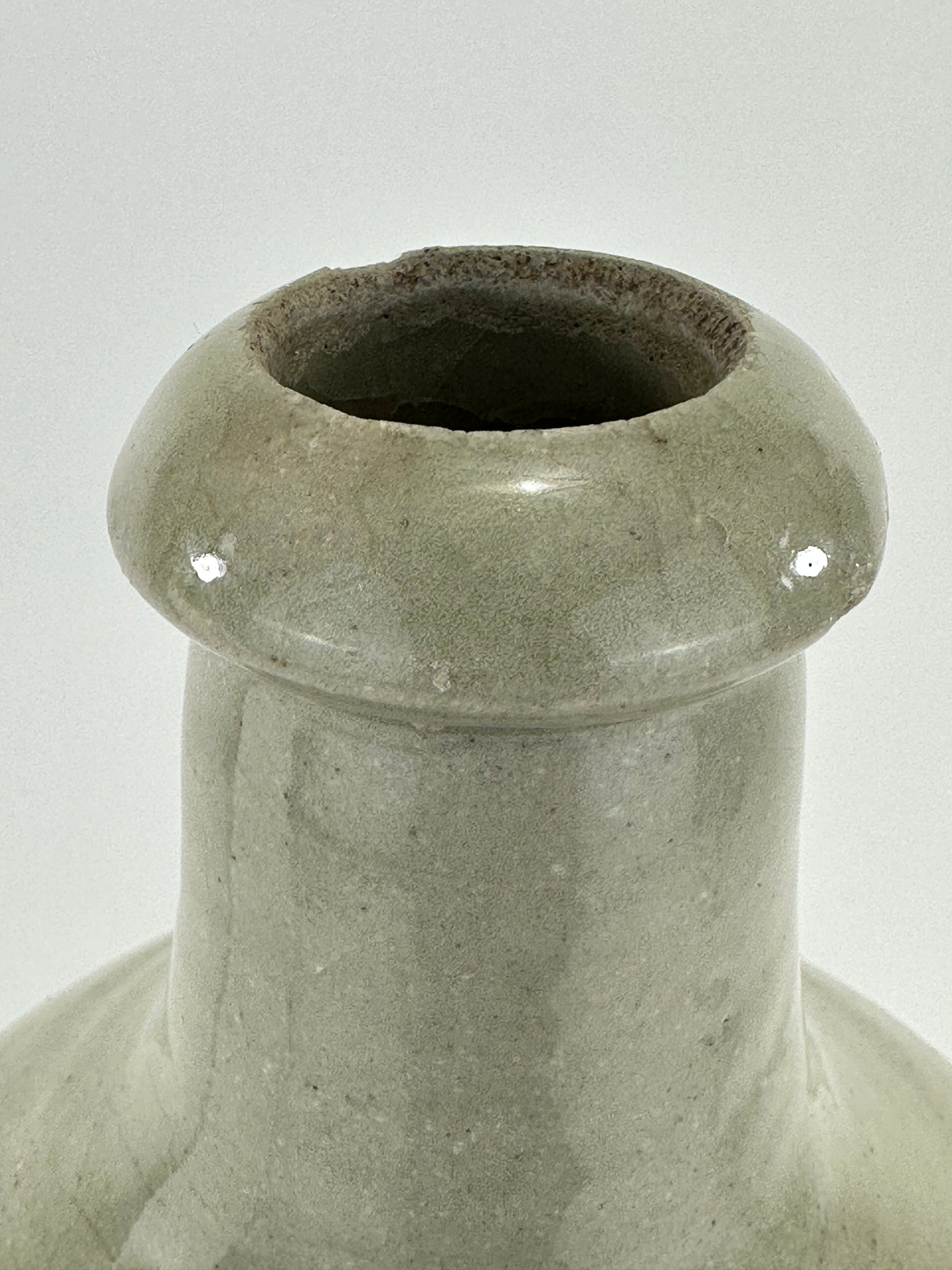 This Japanese tokkuri (徳利) was traditionally used for storing and serving sake, Japan’s fermented rice wine. Larger examples such as this one were typically employed by brewers, inns, or taverns for transport and bulk storage, often sealed with paper or cloth and secured with twine.