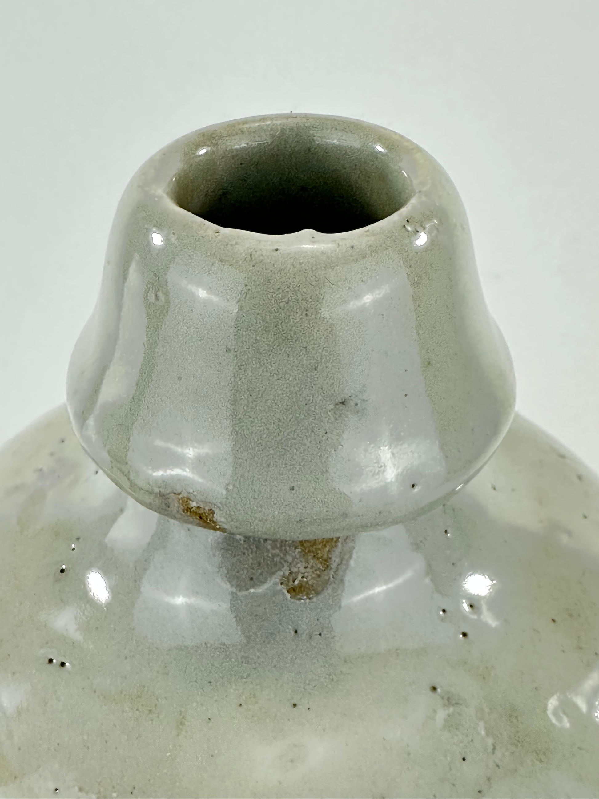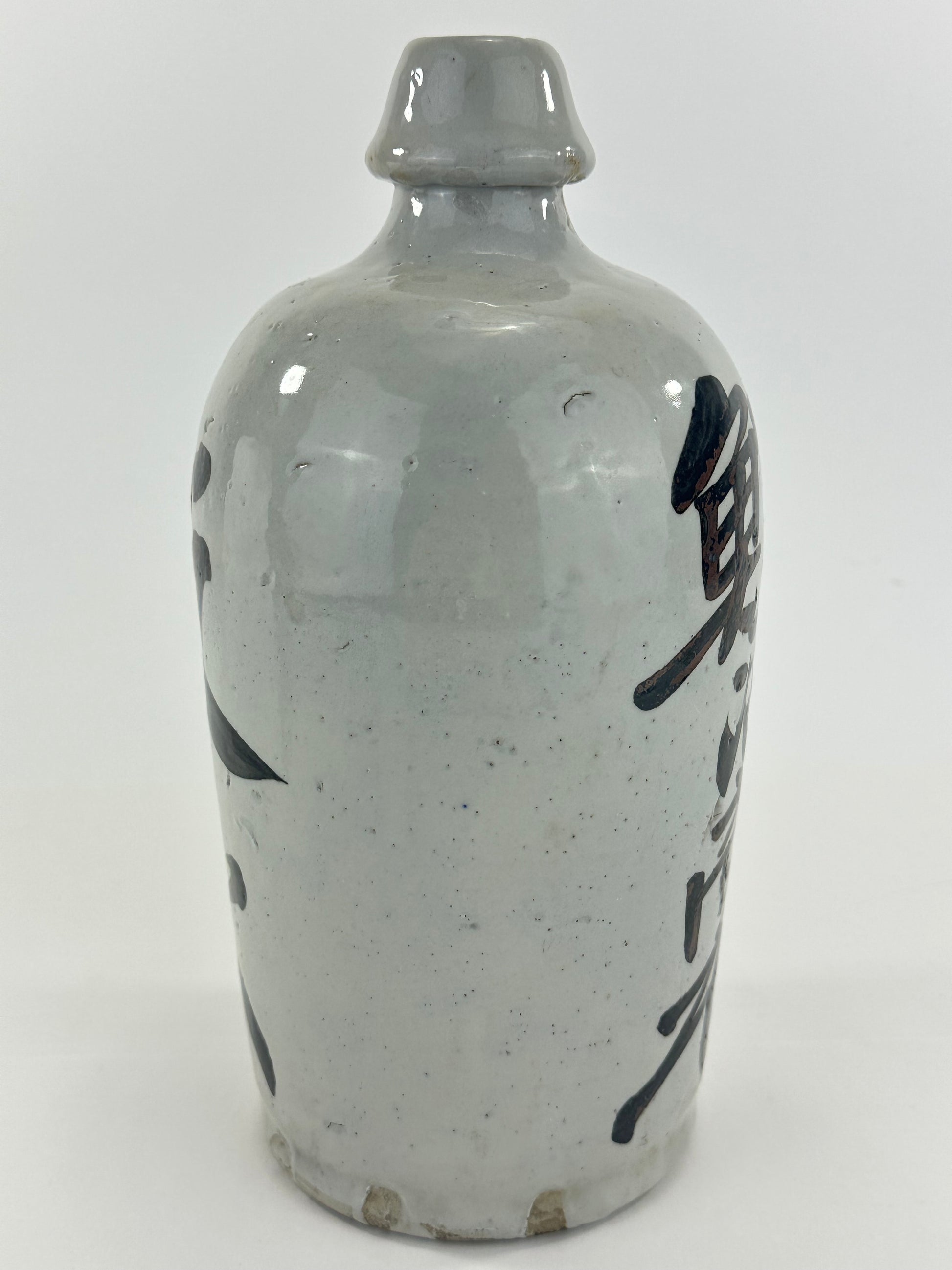 This Japanese tokkuri (徳利) was traditionally used for storing and serving sake, Japan’s fermented rice wine. Larger examples such as this one were typically employed by brewers, inns, or taverns for transport and bulk storage, often sealed with paper or cloth and secured with twine.