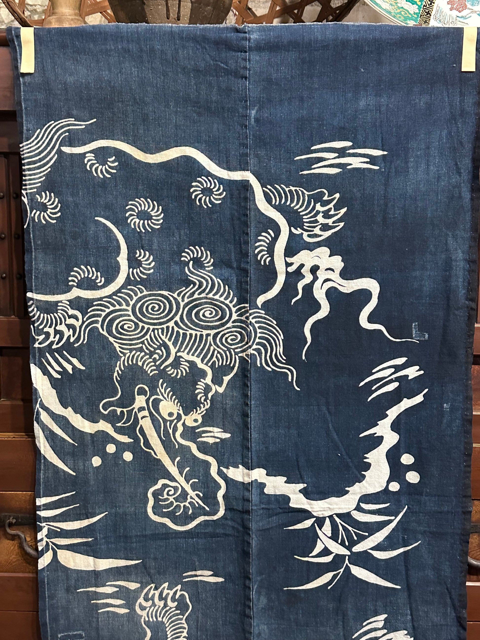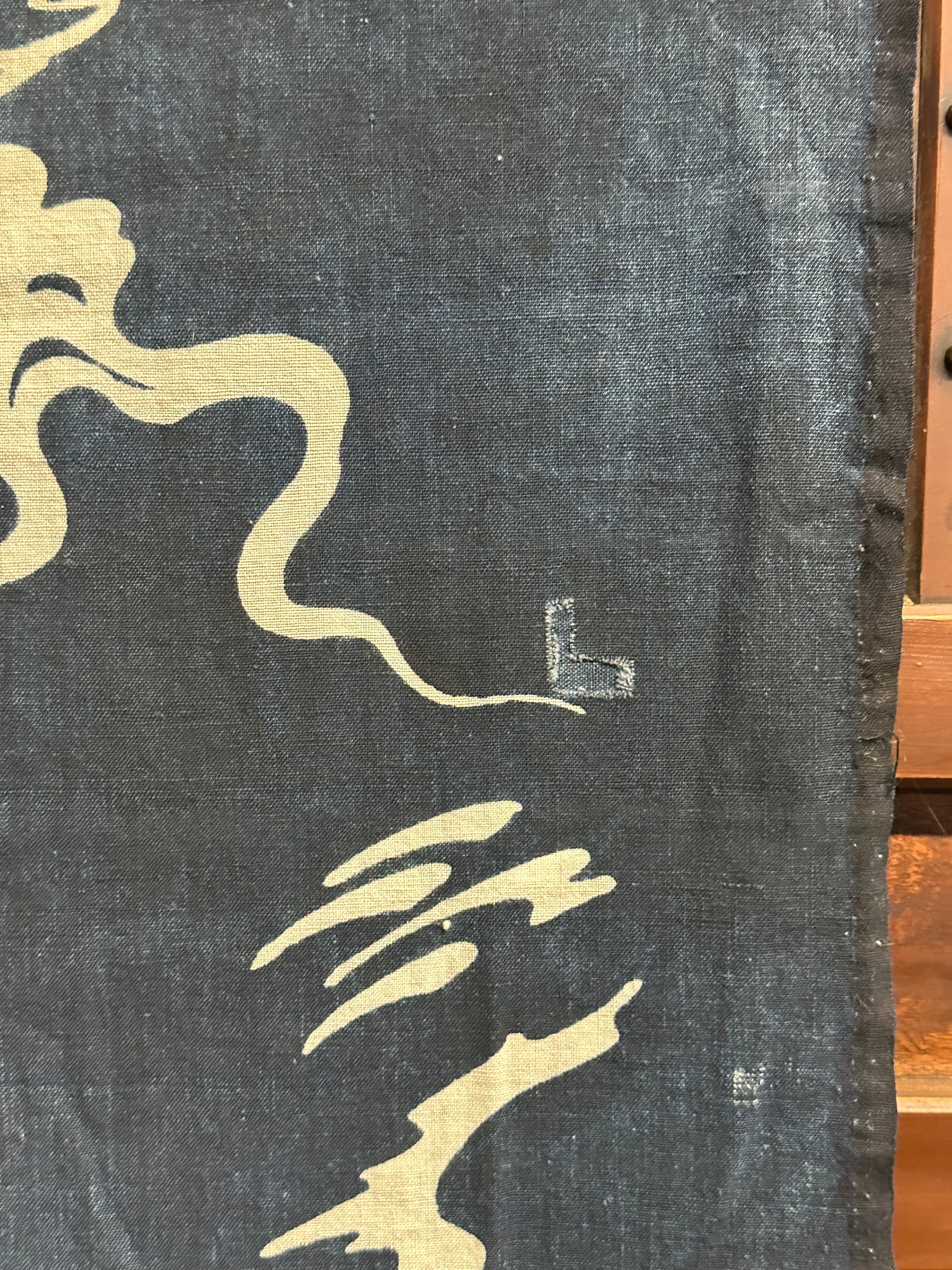 This exquisite piece of antique 100+ year old Japanese hand woven cotton features a design, created using the traditional tsutsugaki dyeing technique.