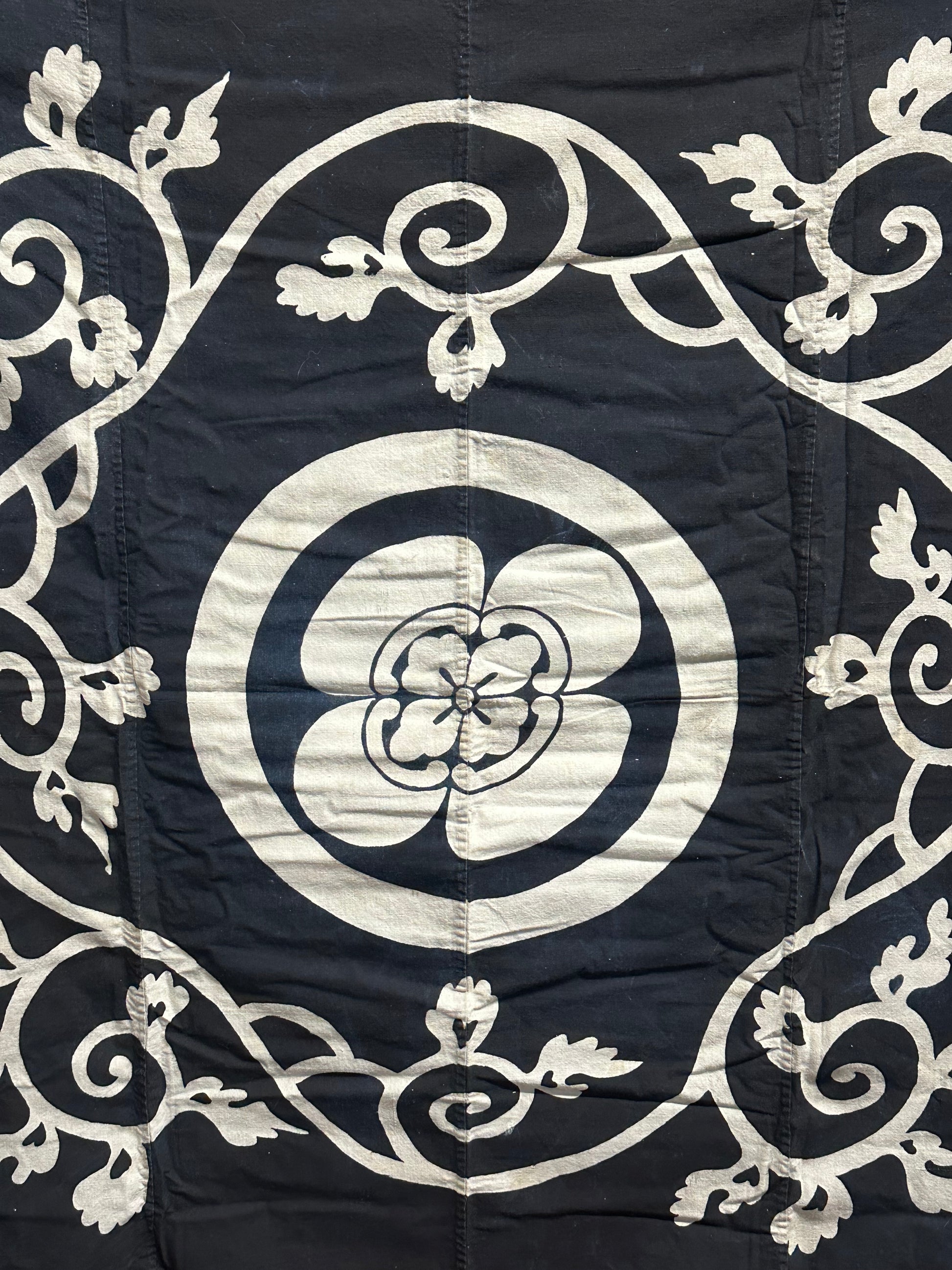 Antique Japanese 19th Century Textile Kamon Crest - Tsutsugaki 51"x53.5"