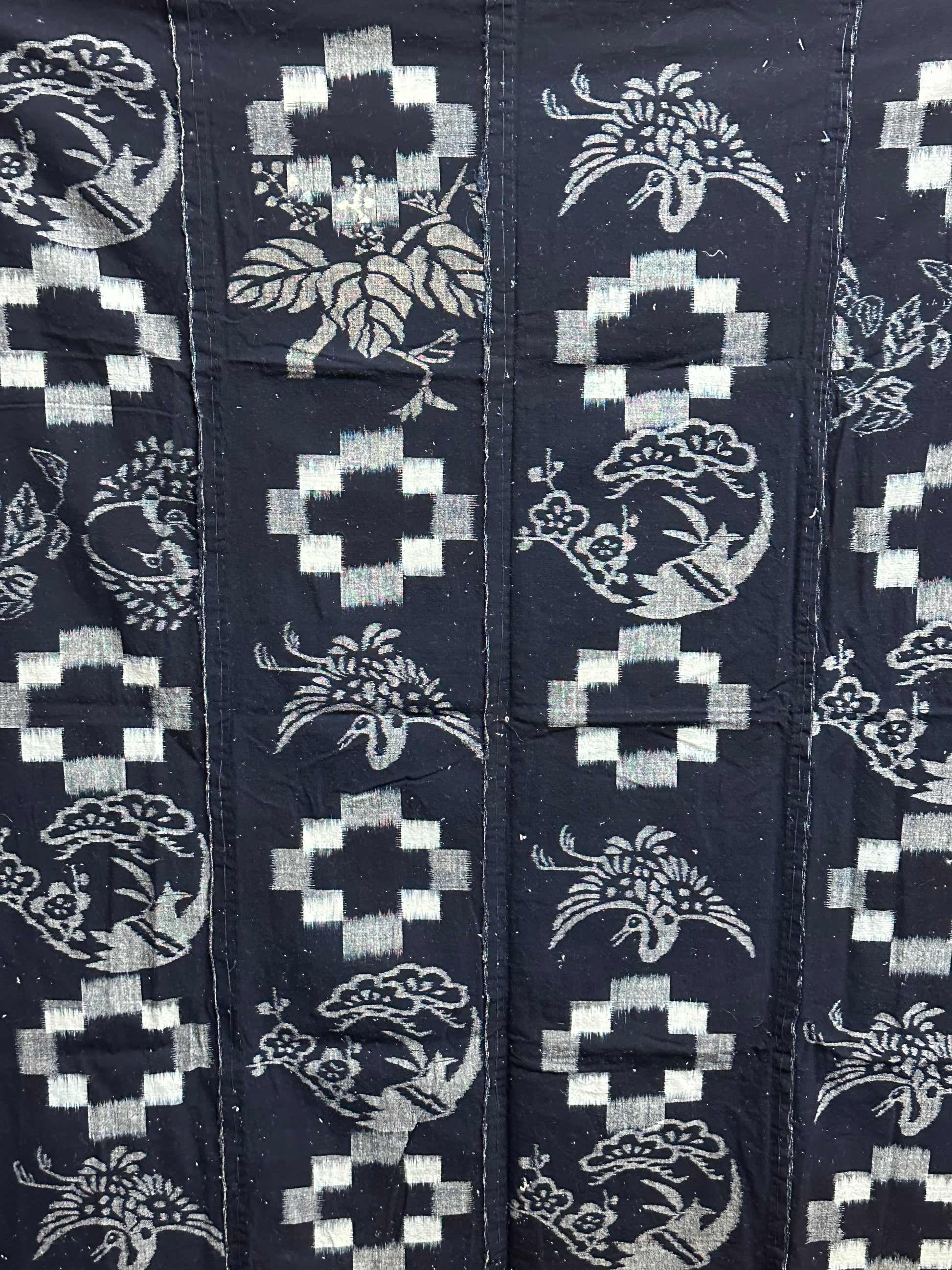 Antique Japanese 19th Century Textile - Kasuri Indigo Ikat 56"x49" Tsuru #51