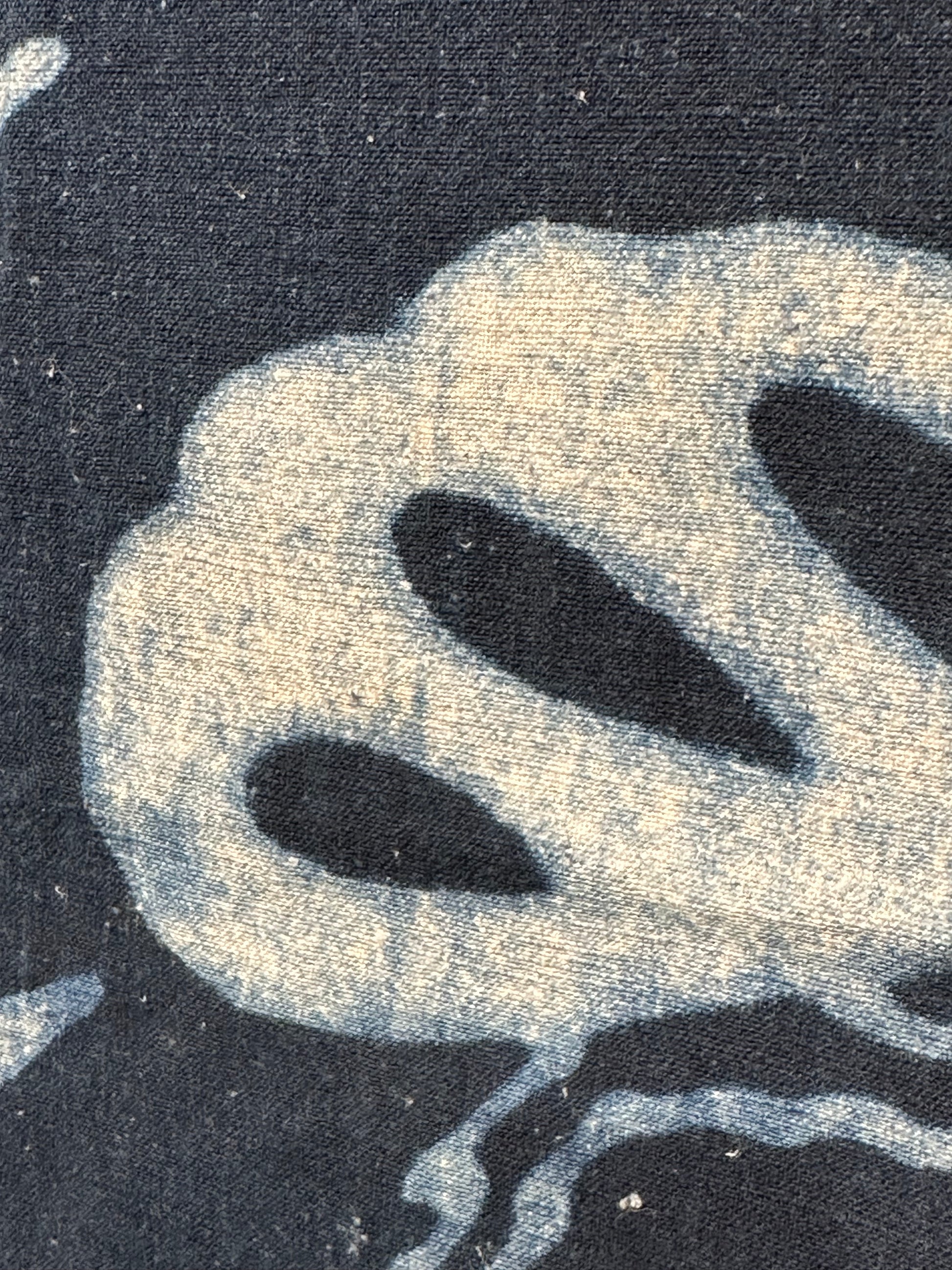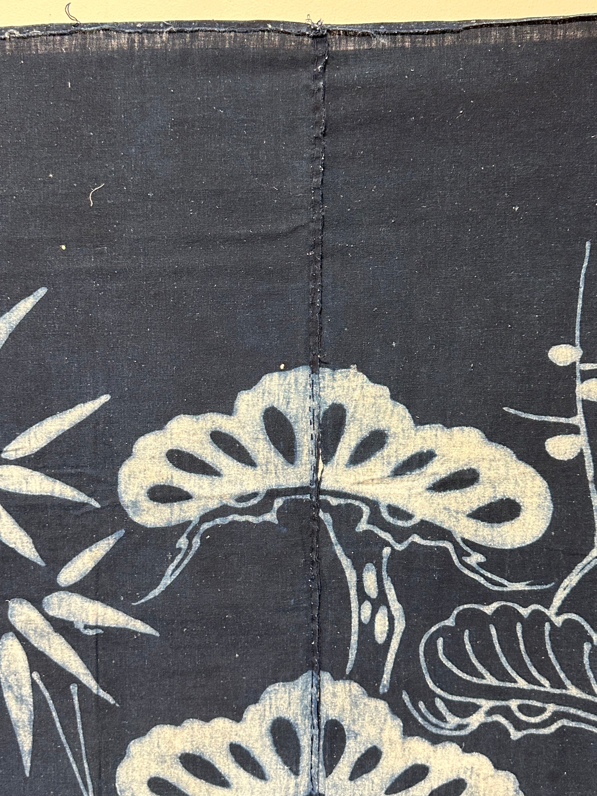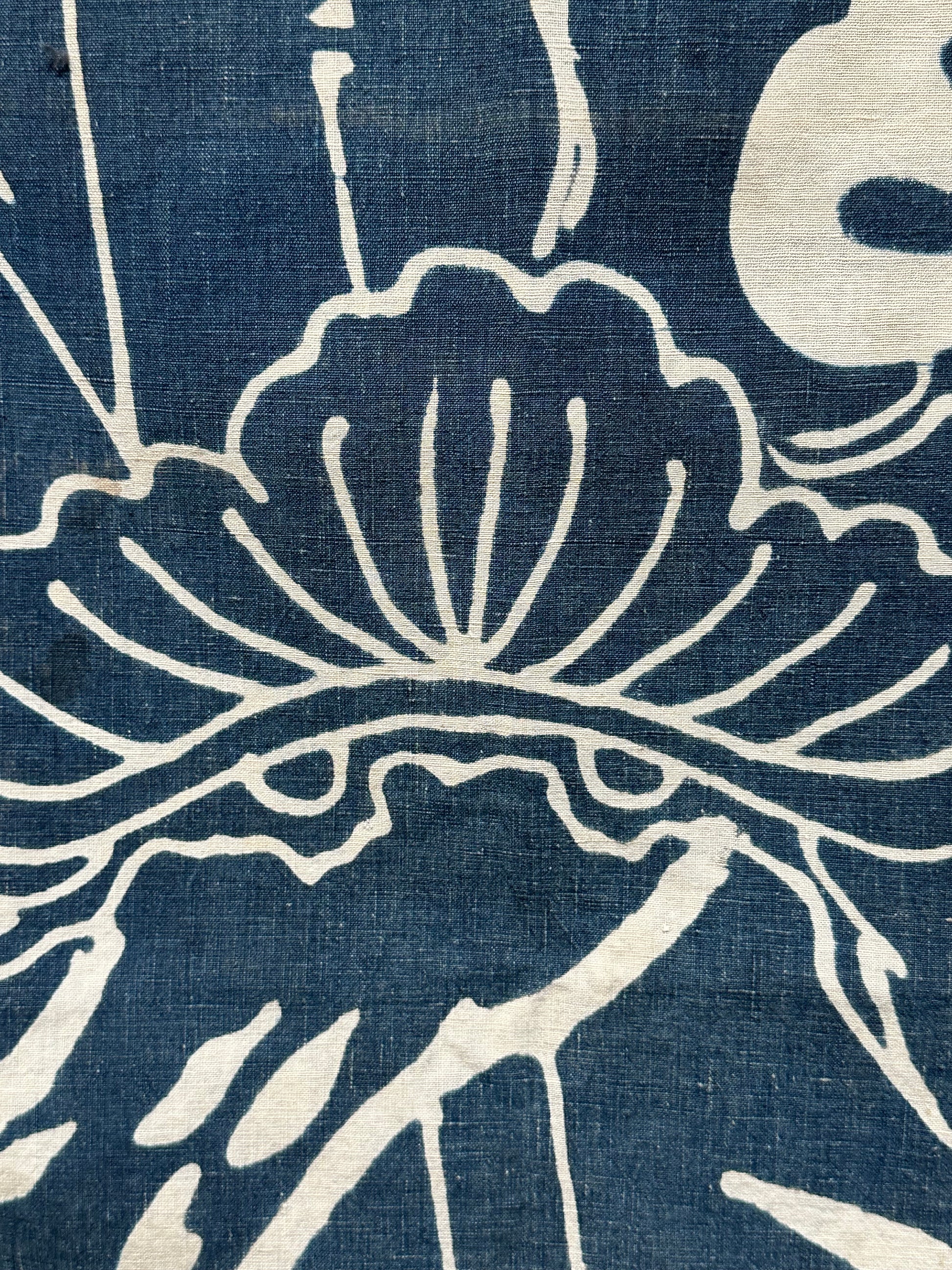 This exquisite piece of antique 100+ year old Japanese hand woven hand cotton features a designs created using the traditional tsutsugaki dyeing technique. Tsutsugaki involves hand-drawing patterns with a resist paste, resulting in intricate and vivid designs.