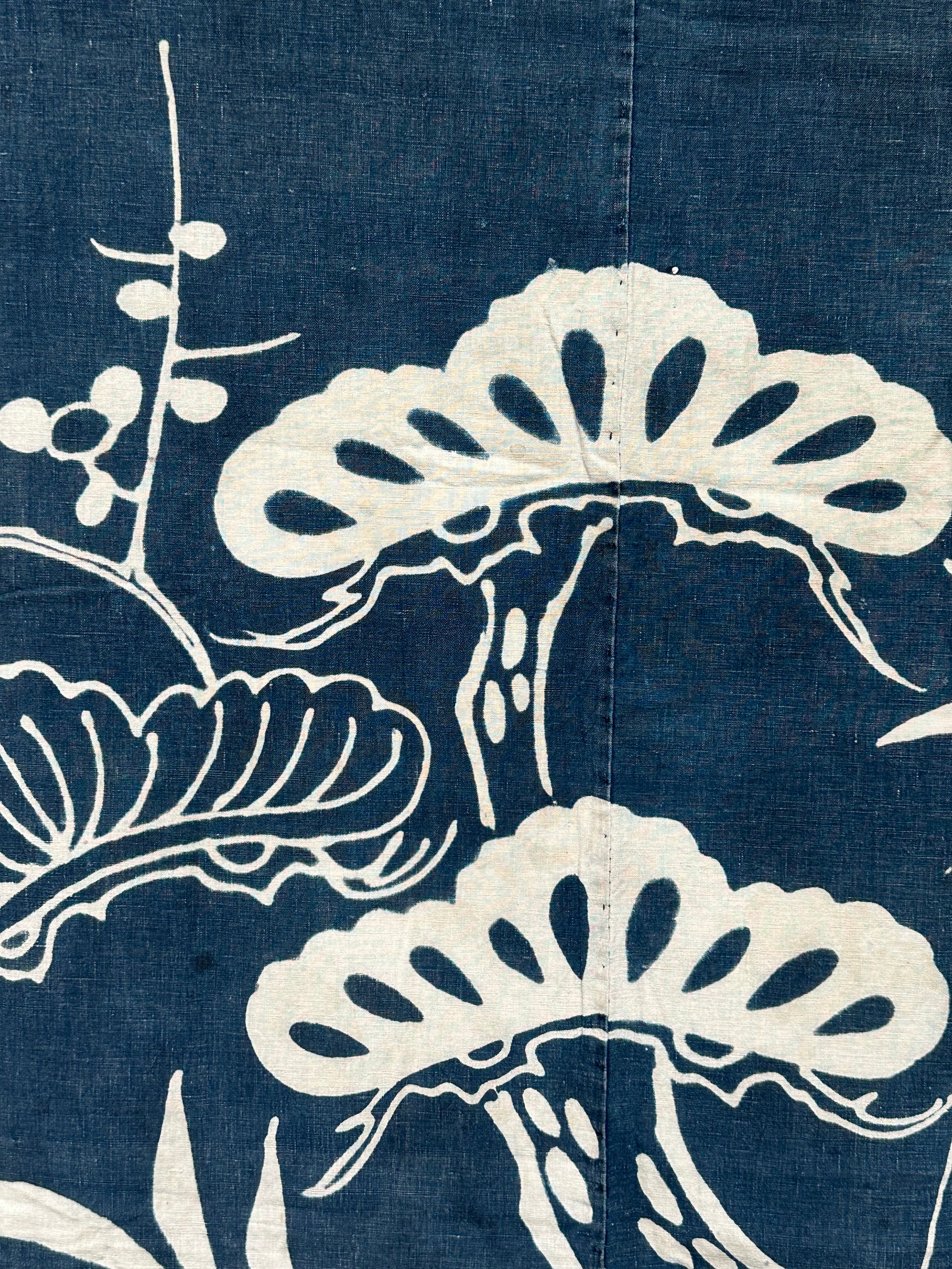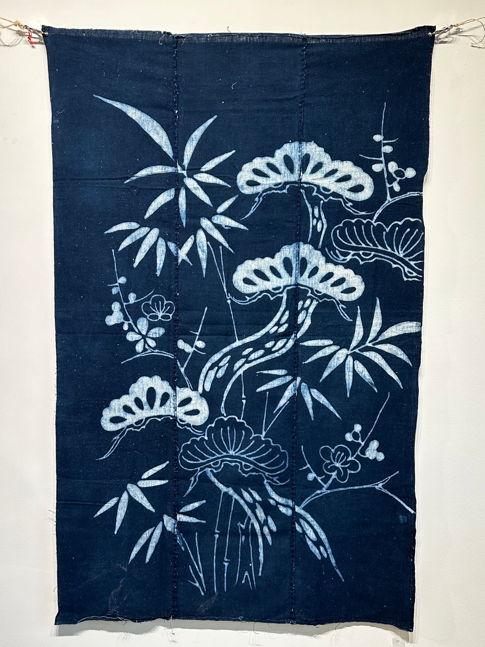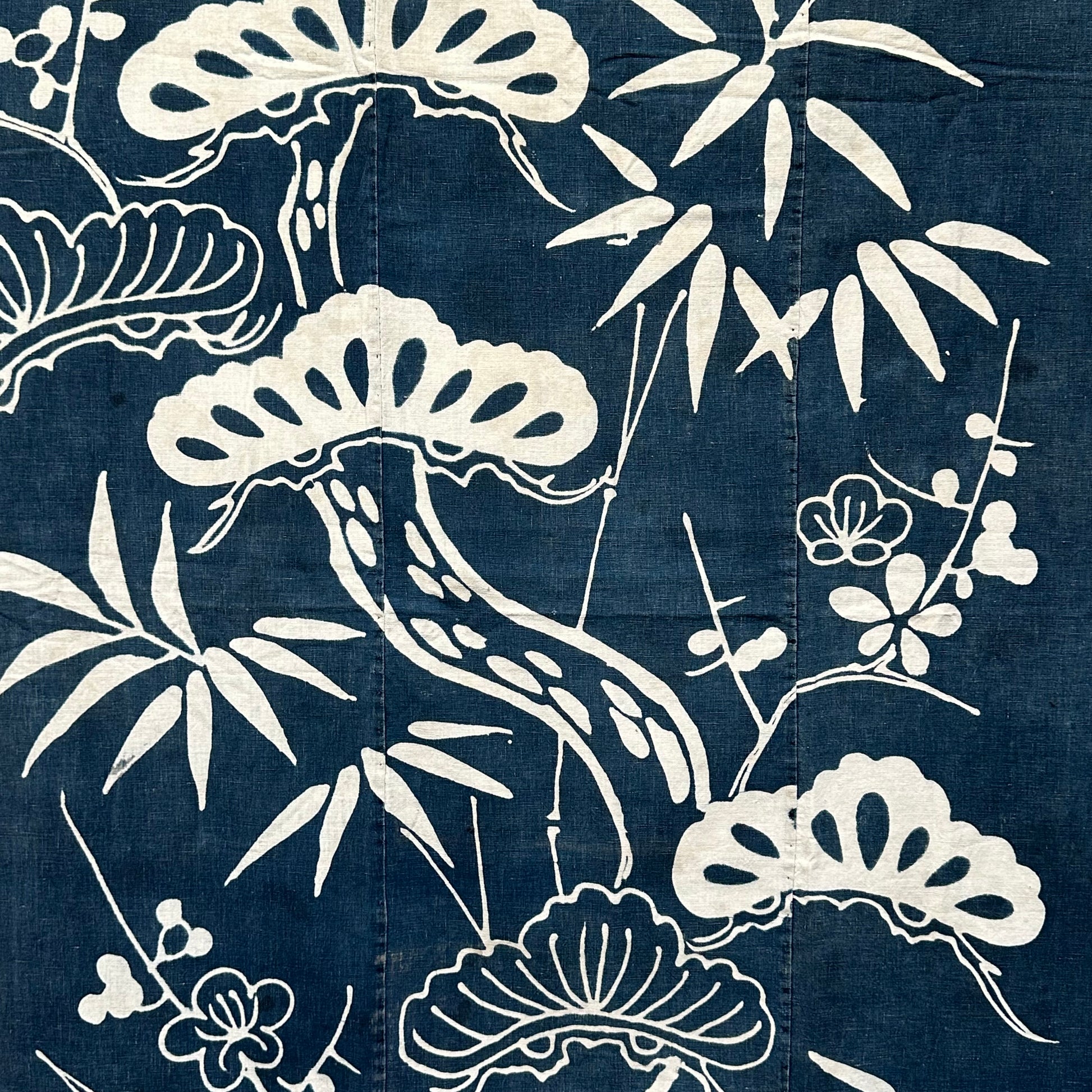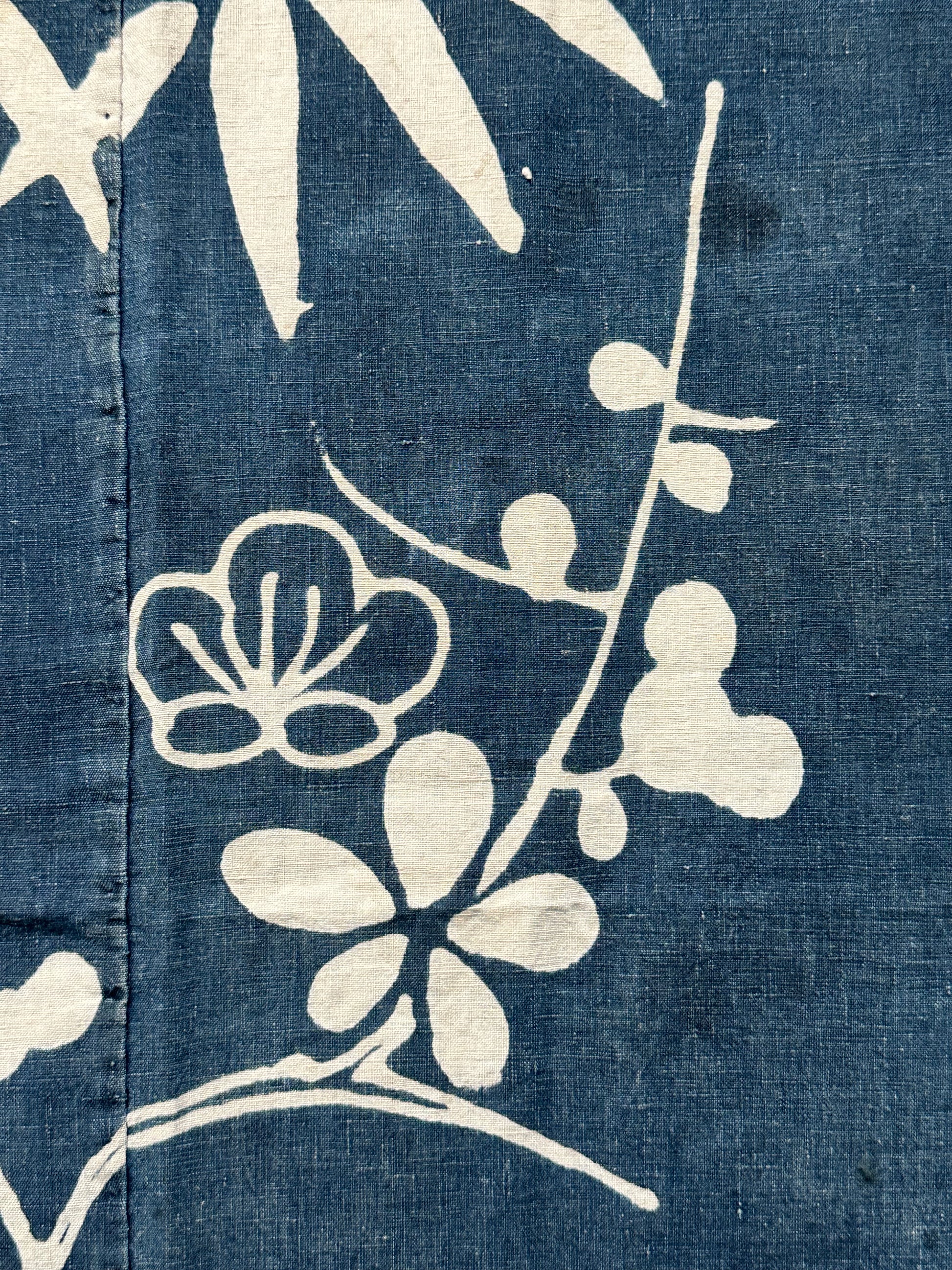 This exquisite piece of antique 100+ year old Japanese hand woven hand cotton features a designs created using the traditional tsutsugaki dyeing technique. Tsutsugaki involves hand-drawing patterns with a resist paste, resulting in intricate and vivid designs.
