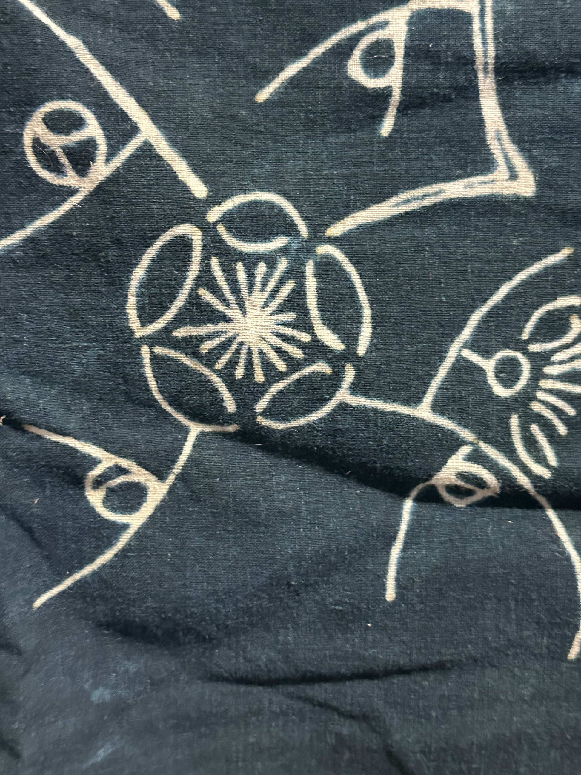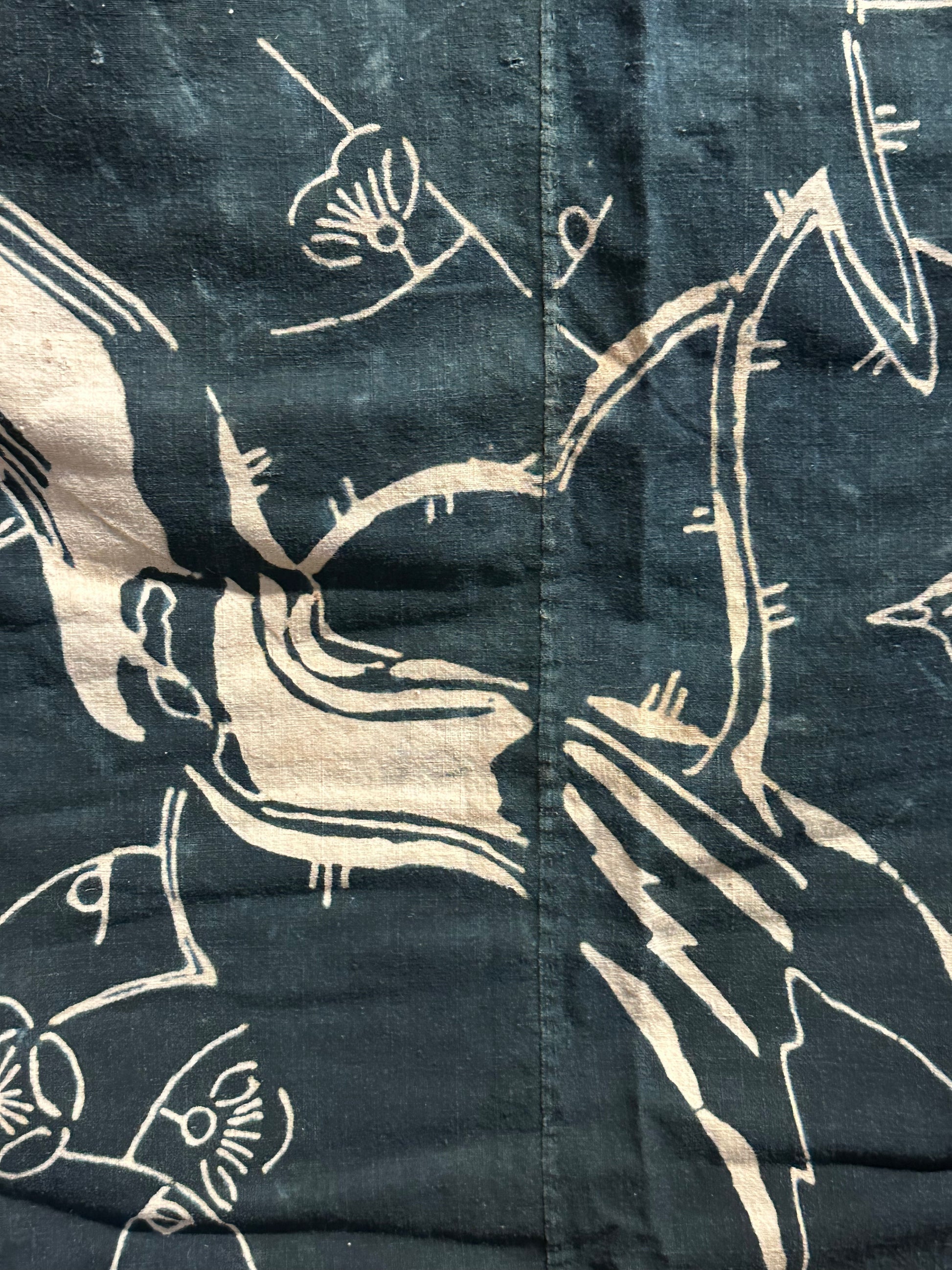 This exquisite piece of antique 100+ year old Japanese hand woven cotton features a design, created using the traditional tsutsugaki dyeing technique.