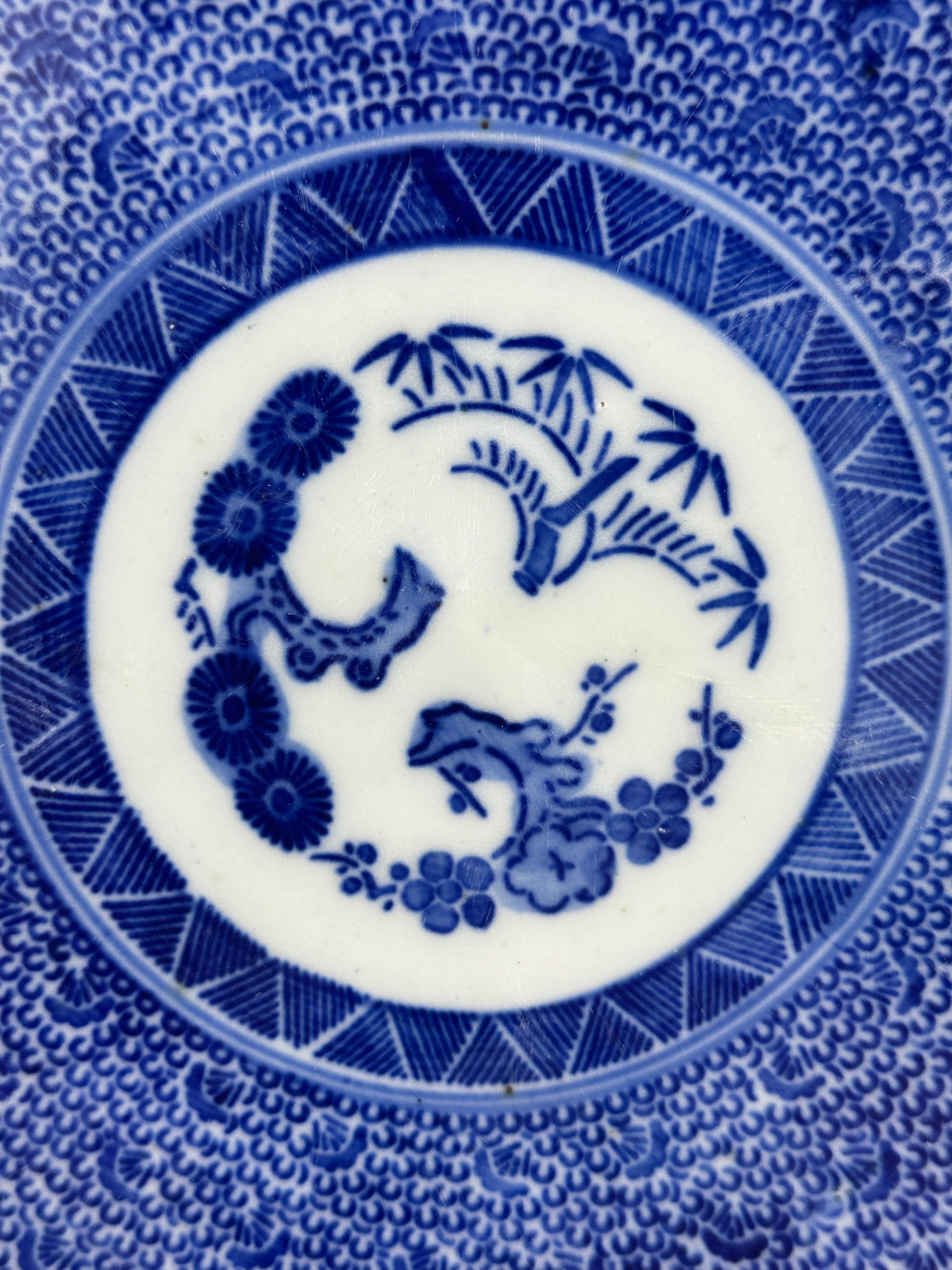 Antique Japanese Late Edo Period 19th Century Imari Ceramic Plate Blue & White 11.5"