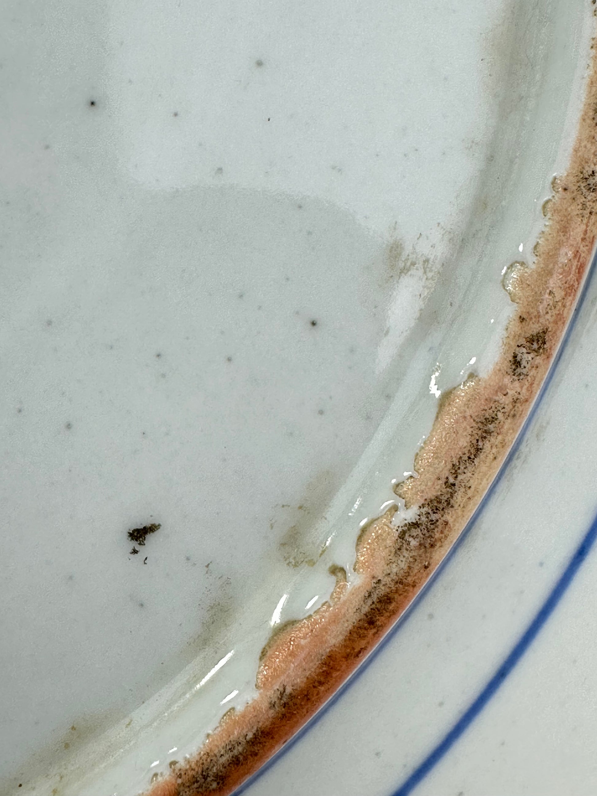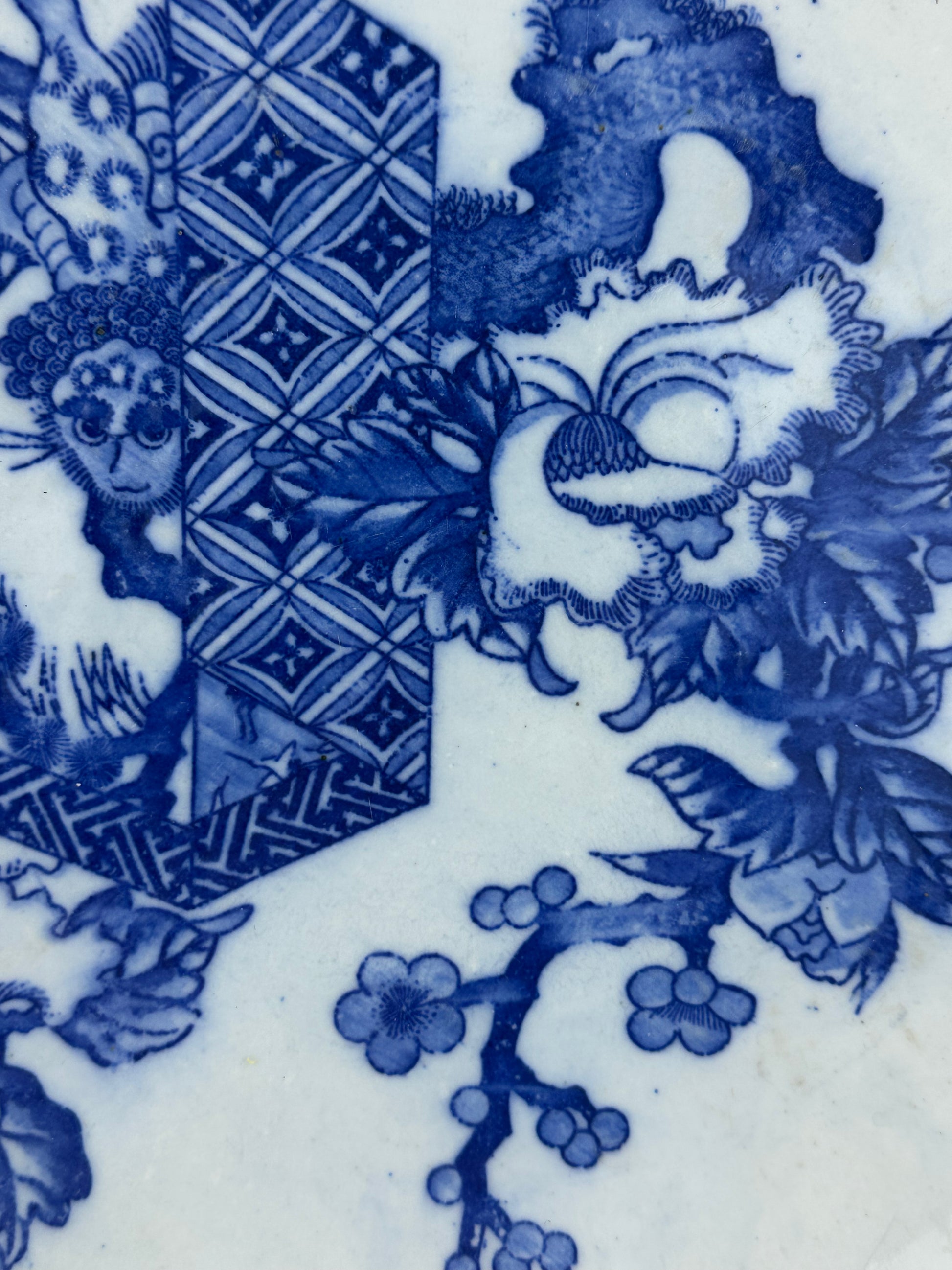 Antique Japanese Late Edo Period 19th Century Imari Ceramic Plate Blue & White 12.5"