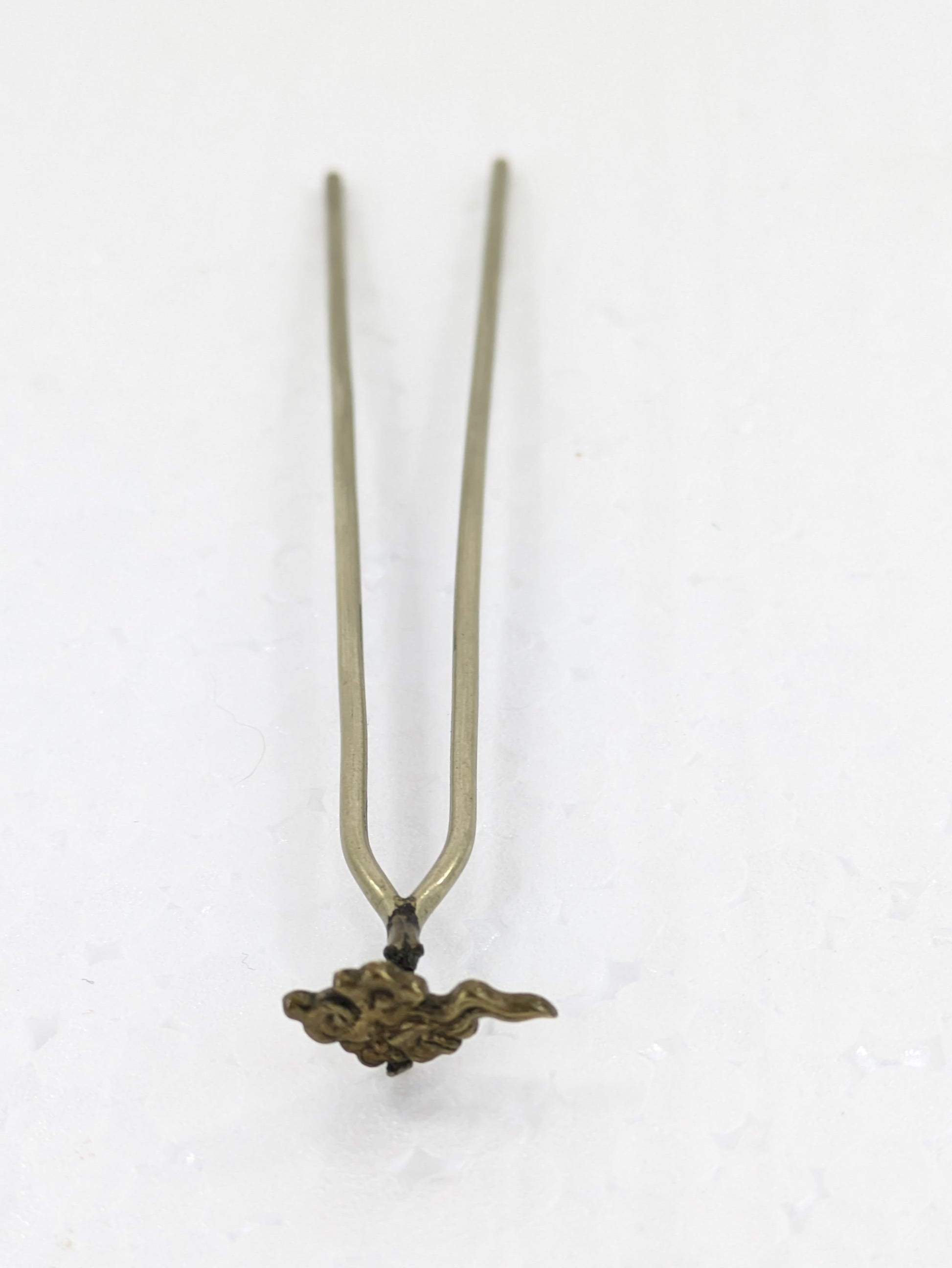 Antique Japanese Bronze Cloud Kanzashi (Two-Prong U-Pin) 4.5"
