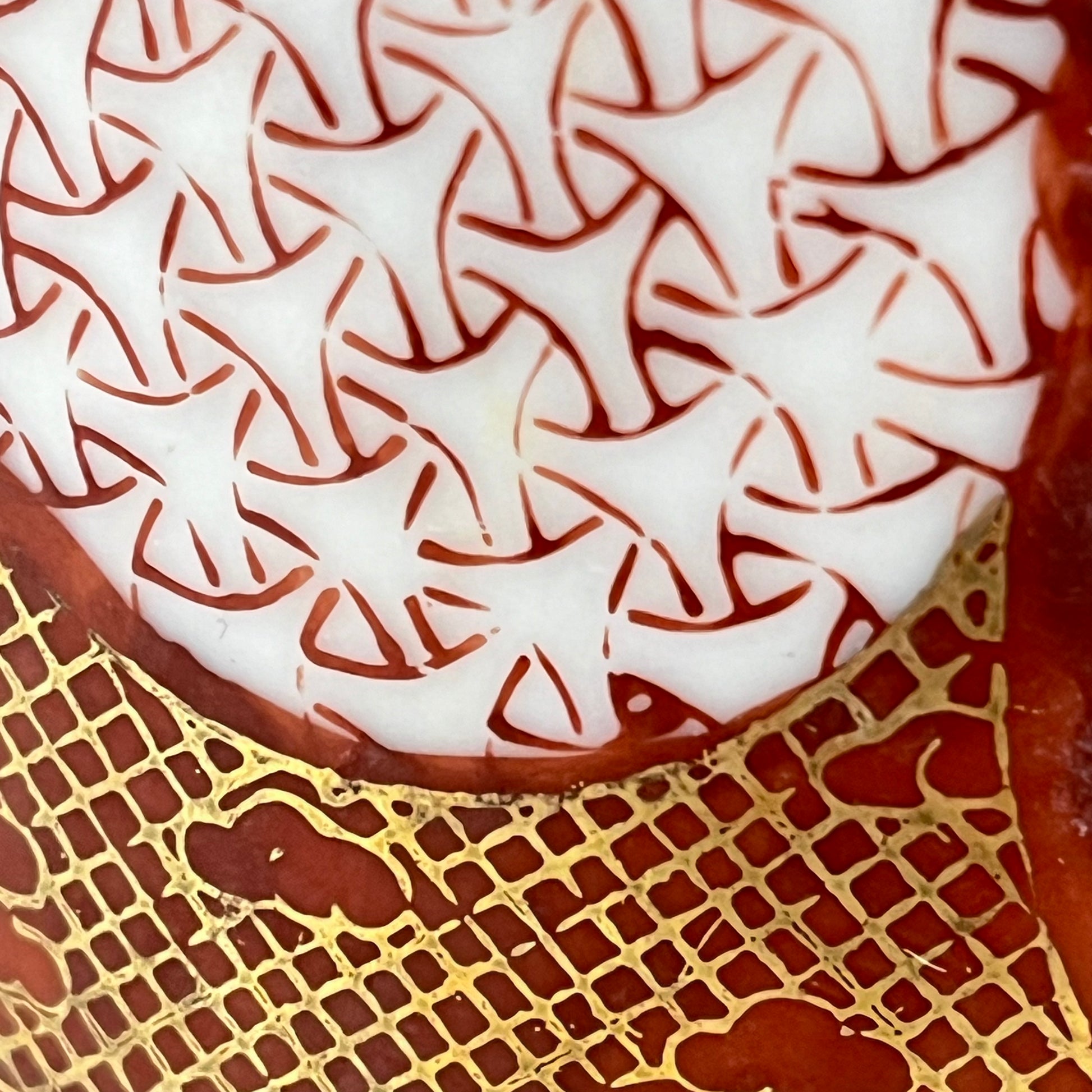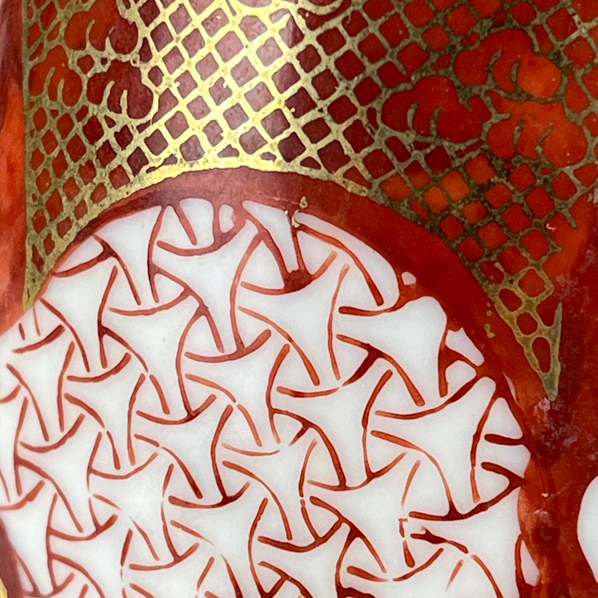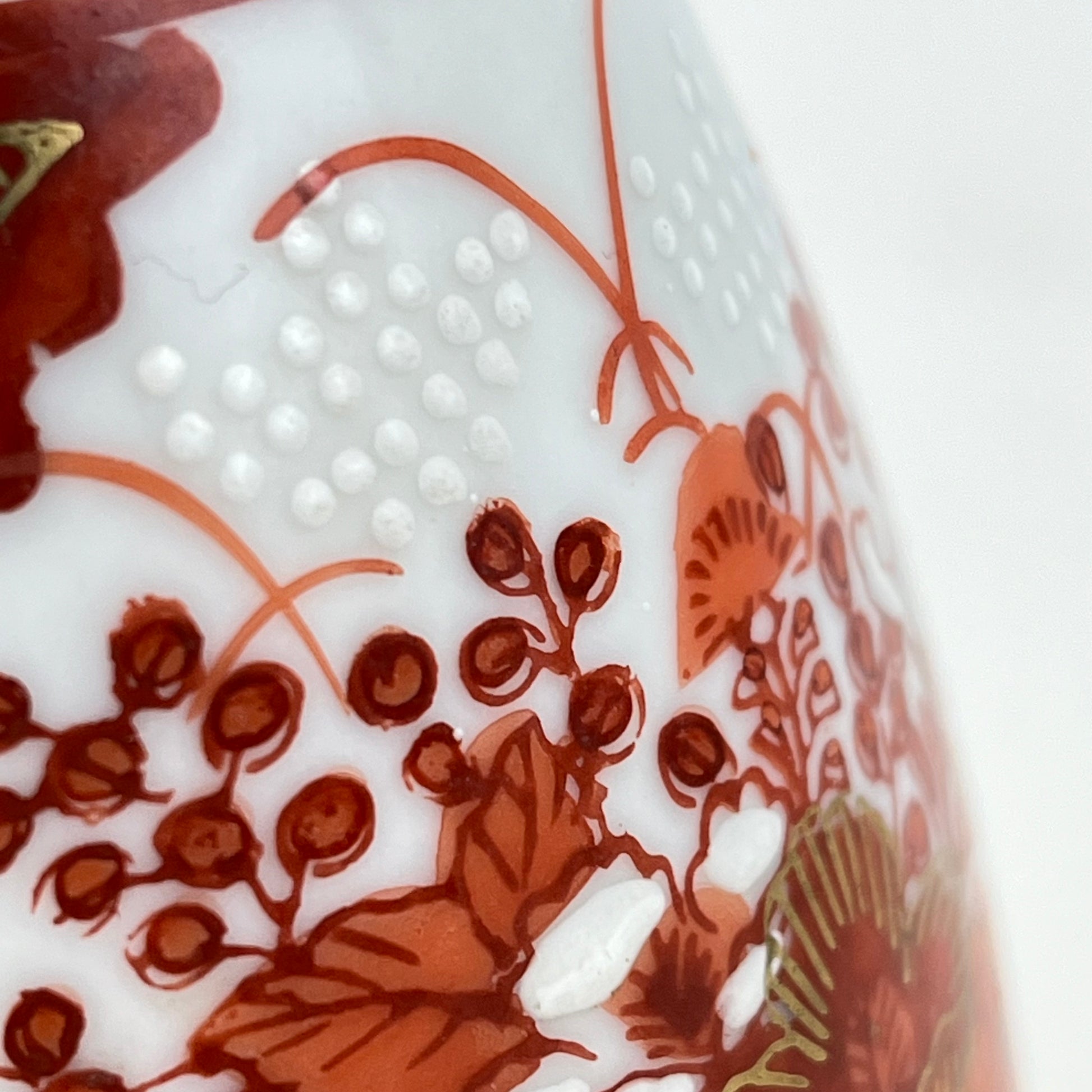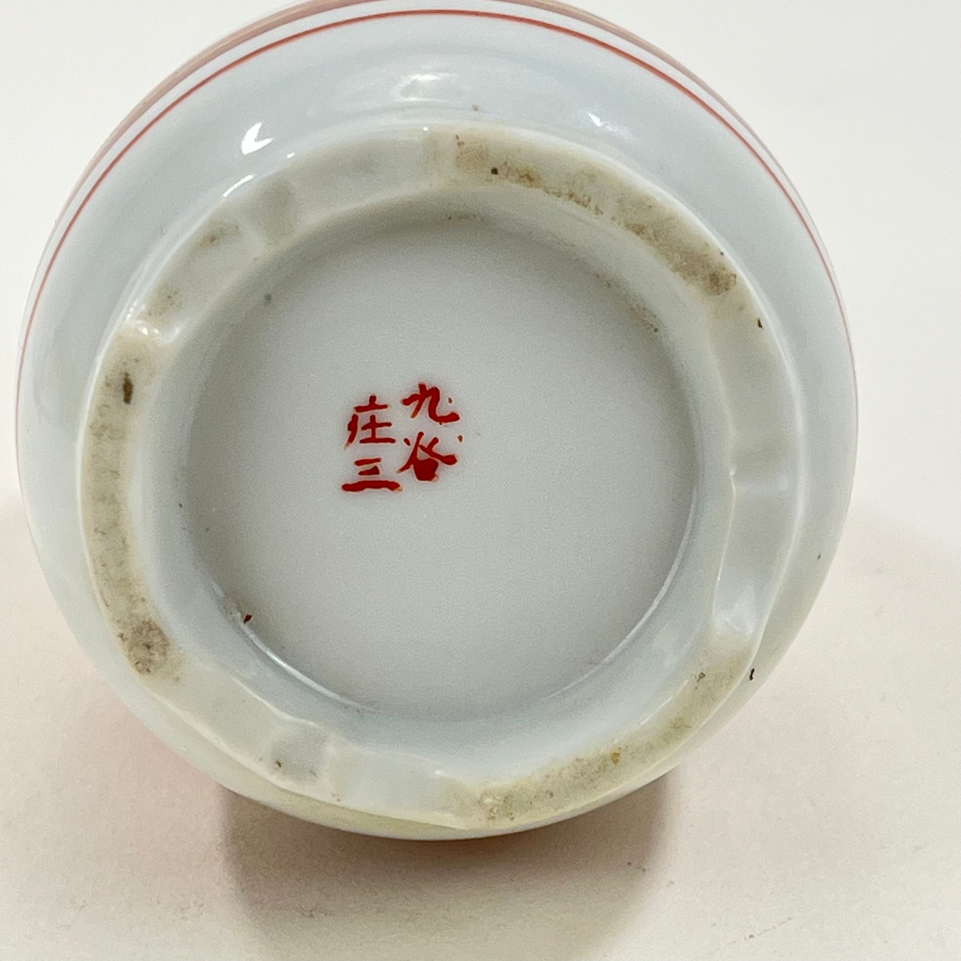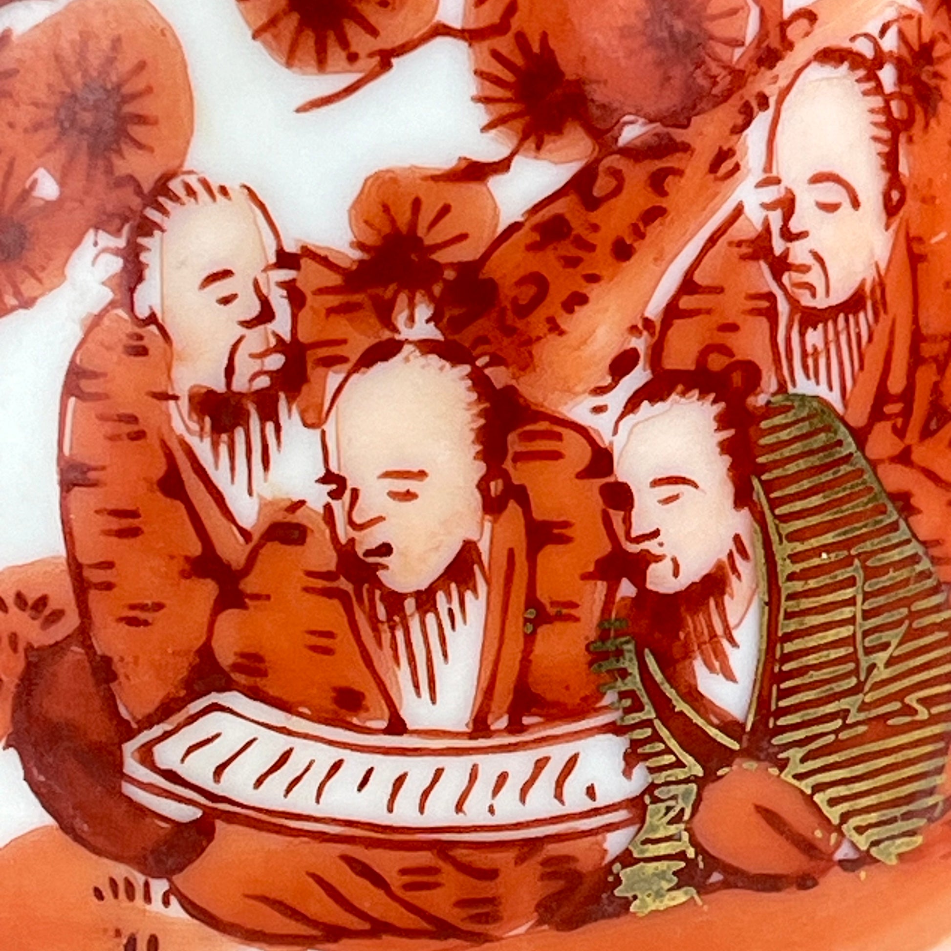 Antique Japanese c1920 Red Kutani Tokkuri Sake Bottle Philosophers Reading Scroll 6.5"