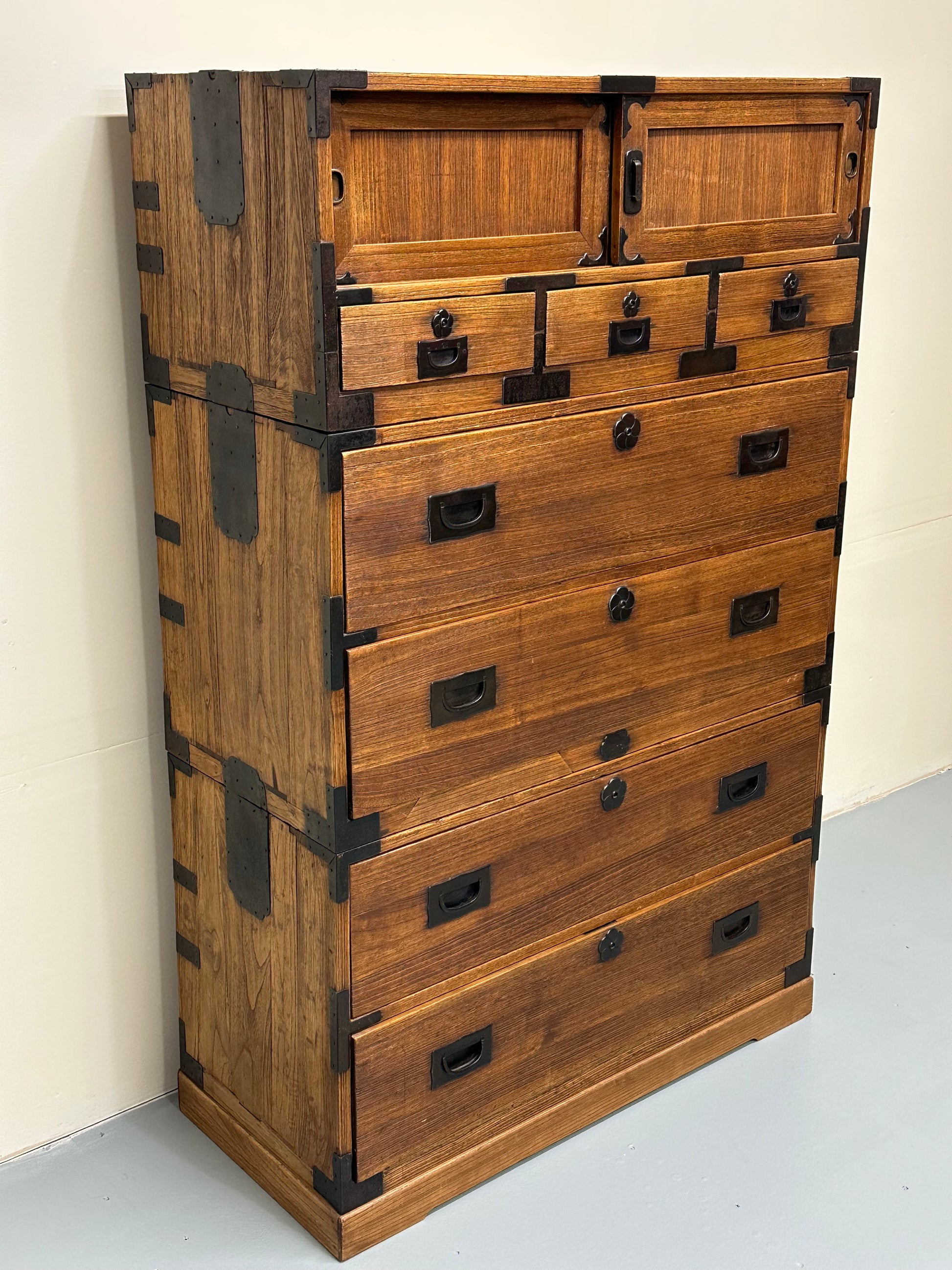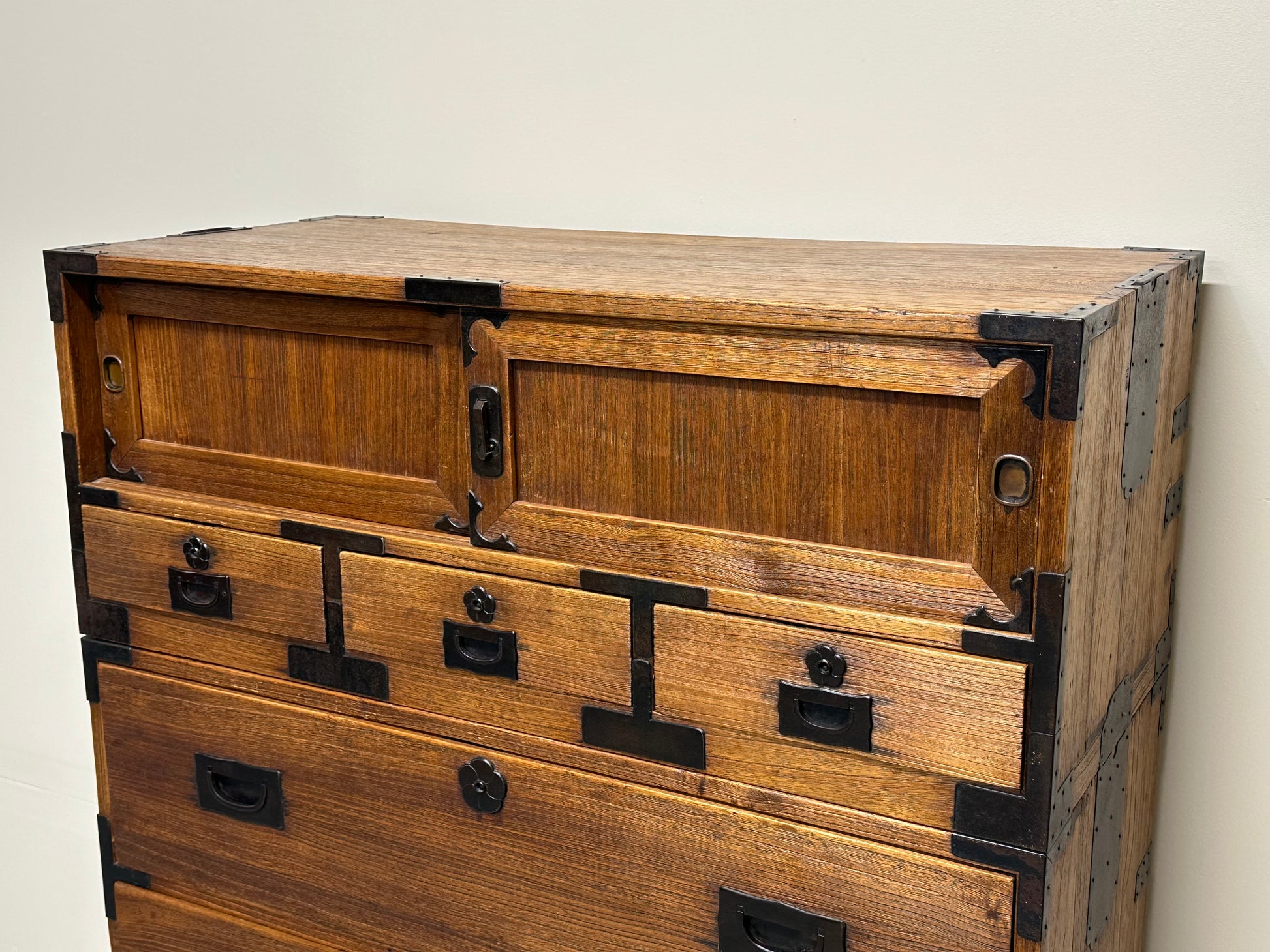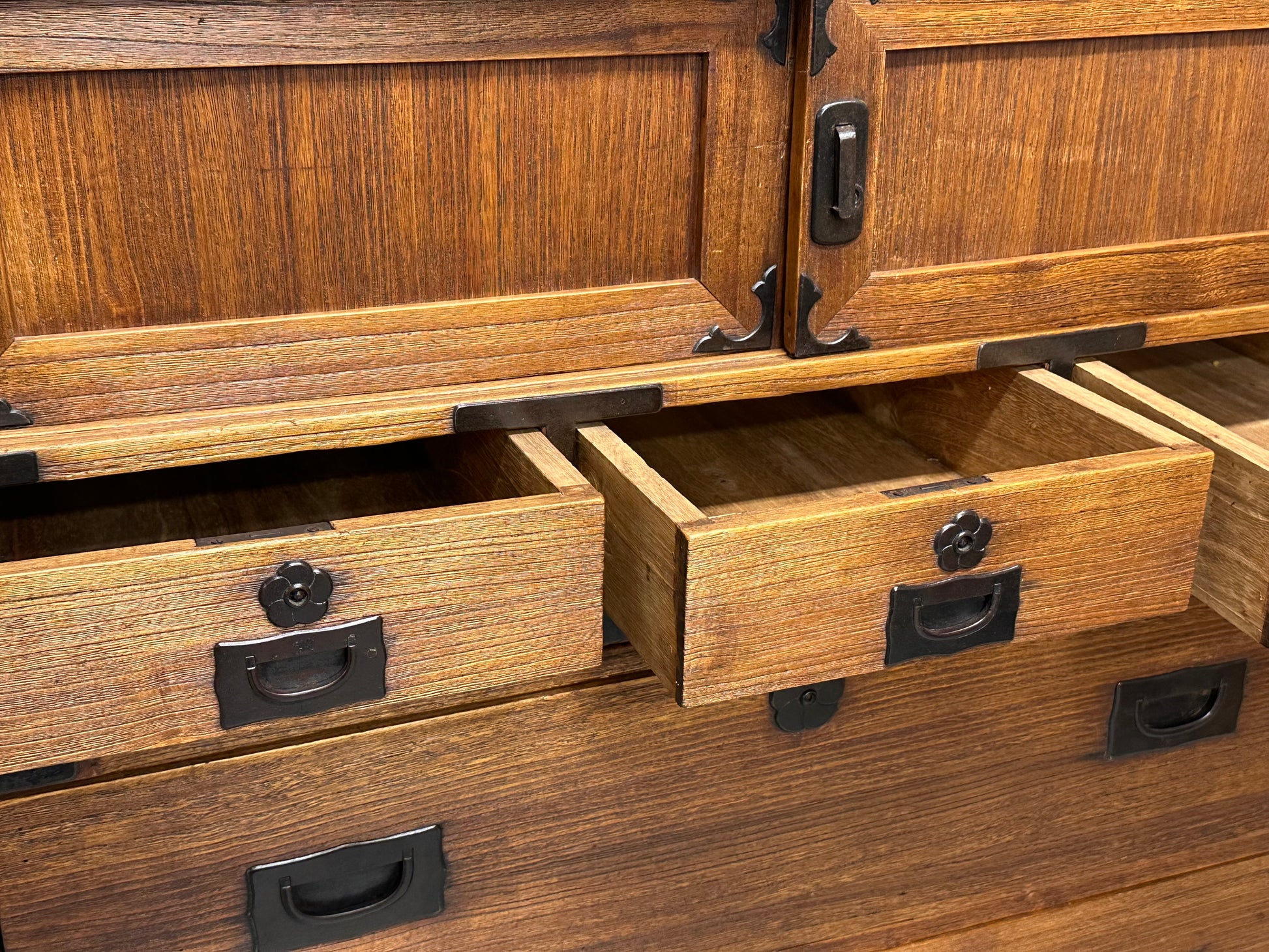 Antique Japanese Isho-Tansu Clothing Chest Taisho c1920’s 57”H Kiri Wood