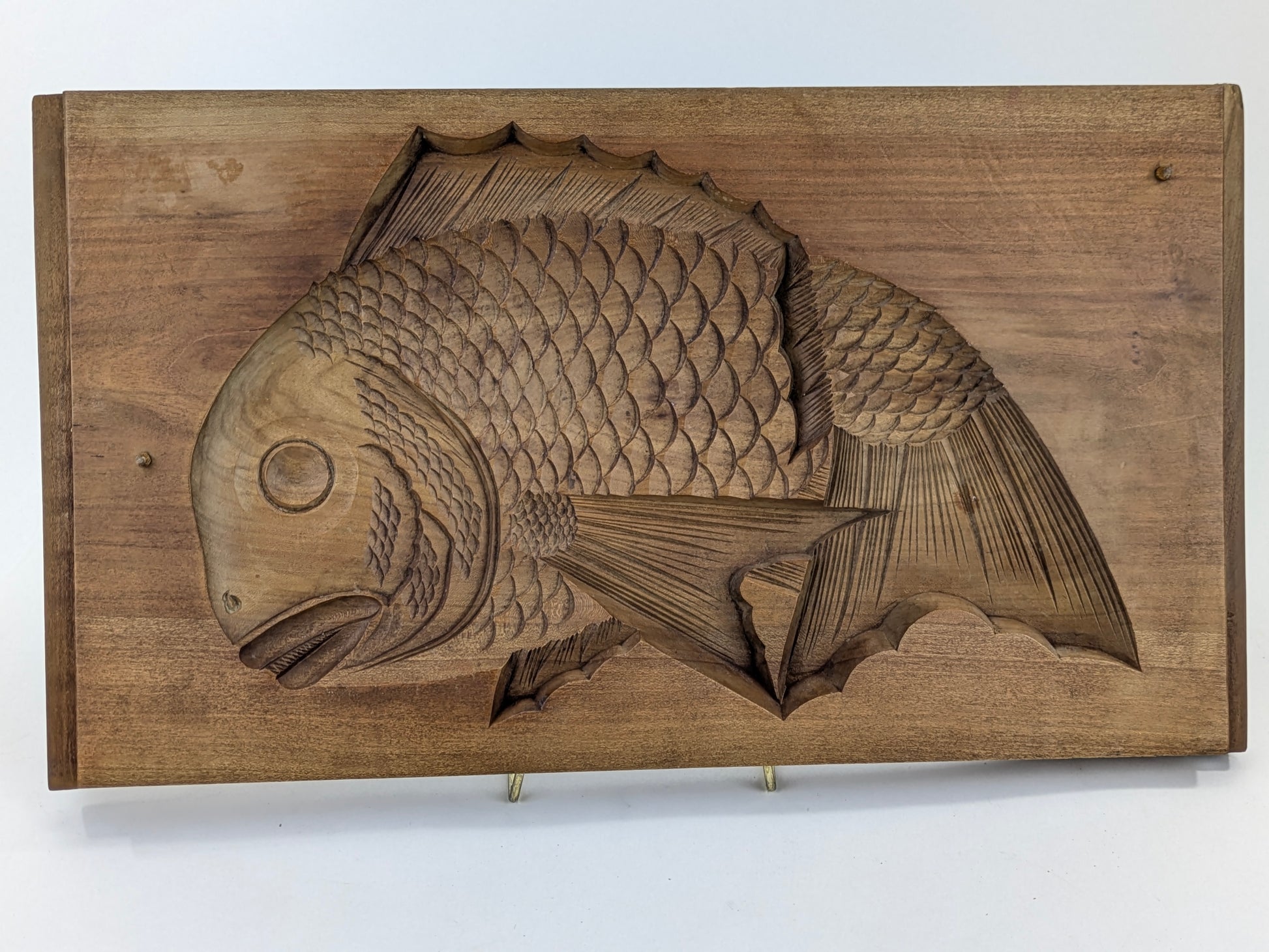 Antique Japanese Kashigata Confectionery Mold – Tai Sea Bream (鯛) – Hand-Carved Wood – 16"