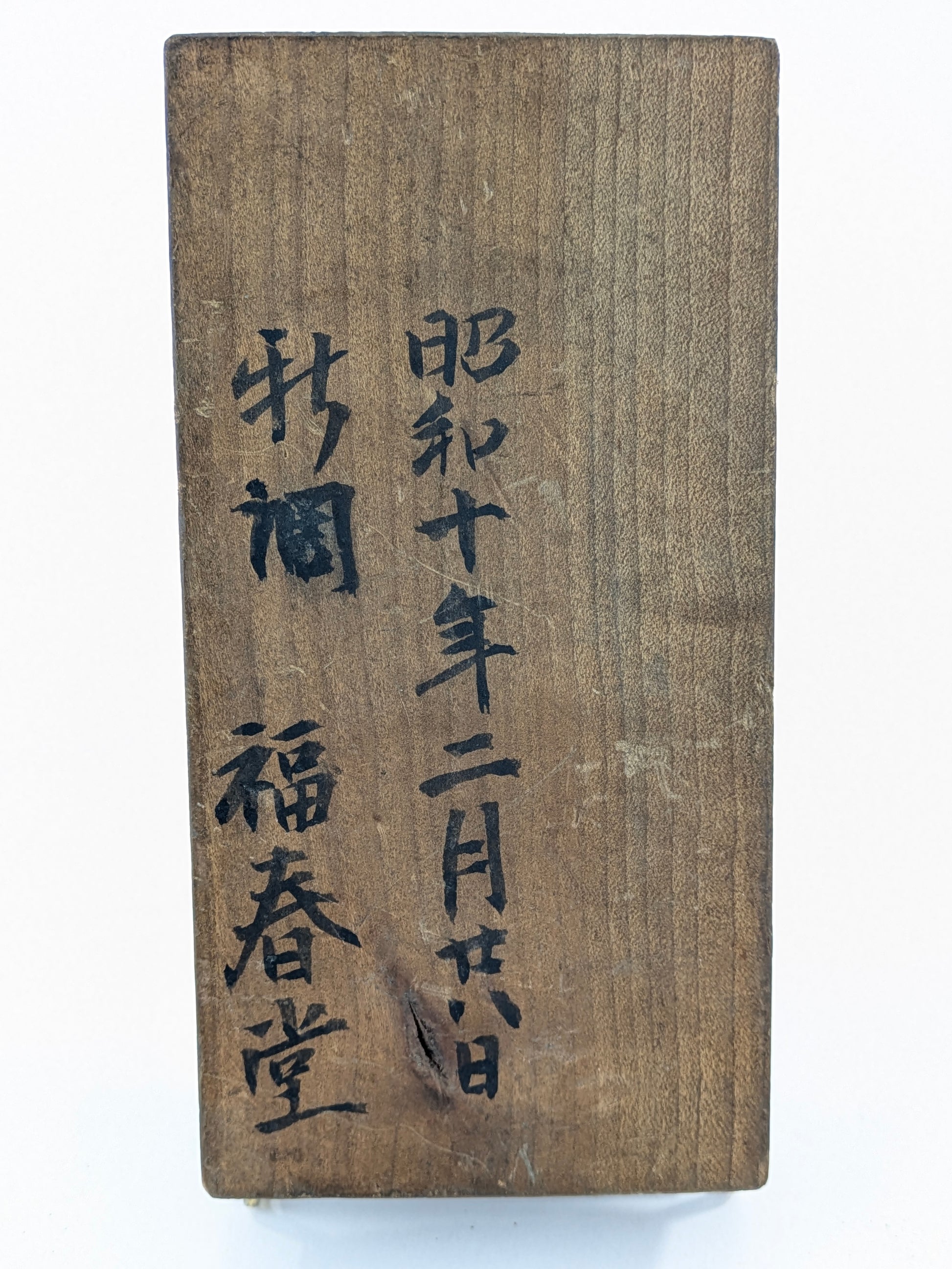 On the side is an inscription: Shōwa 10, February (1935) and 福春堂 (Fukushundō), likely the shop or workshop that commissioned the mold.