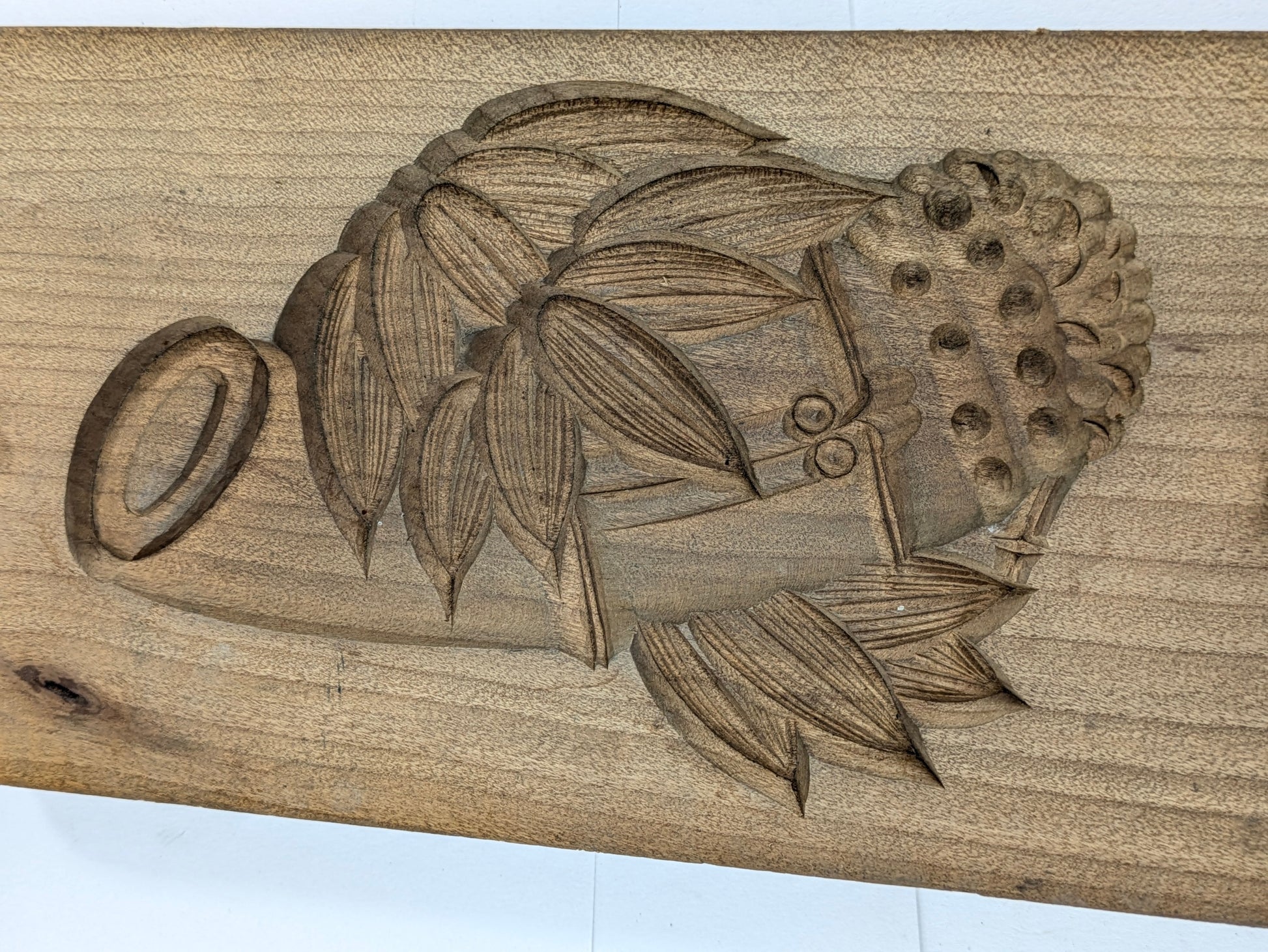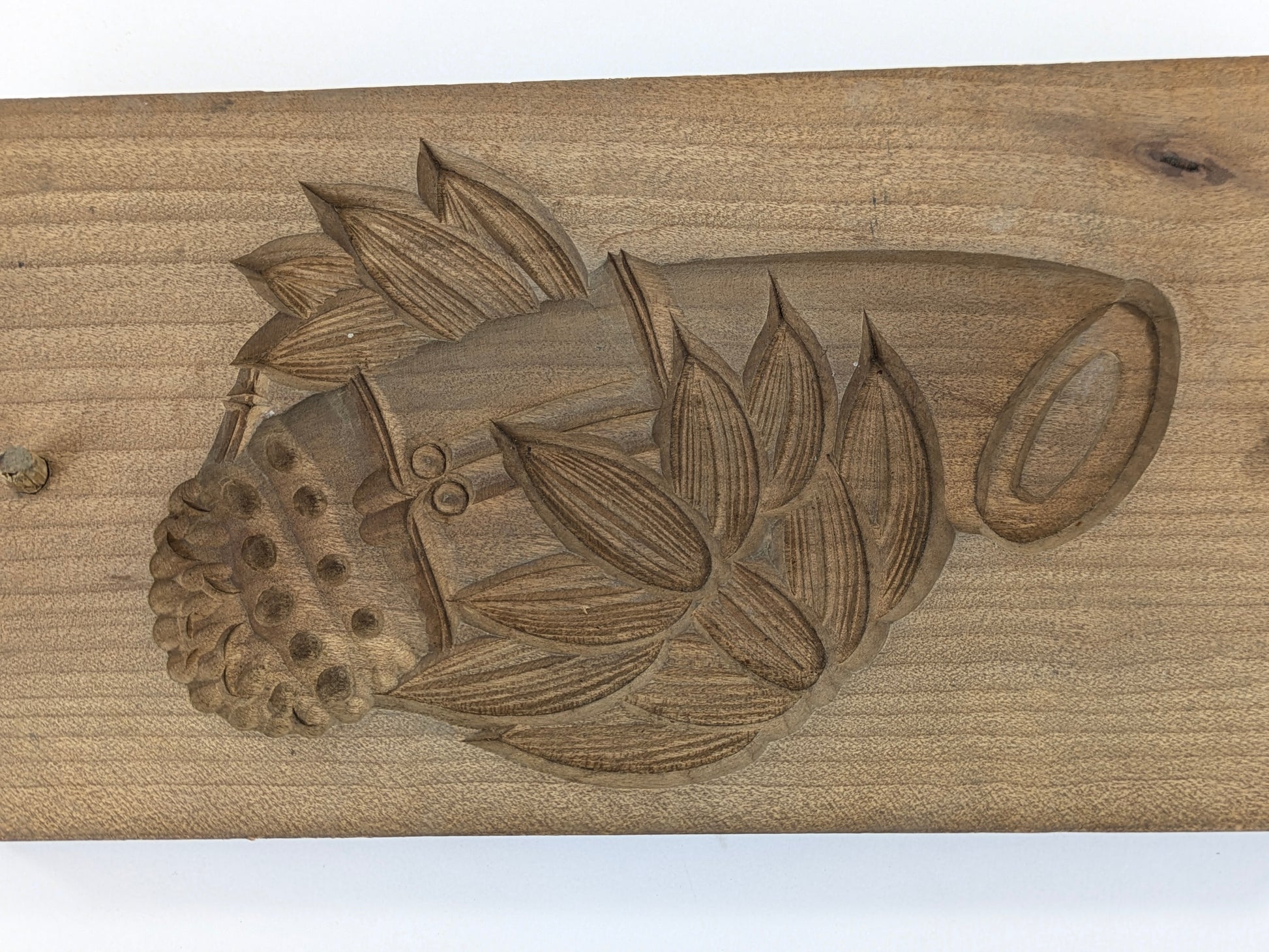 Deep, crisp carving with tool marks and a warm, even patina—evidence of authentic use.