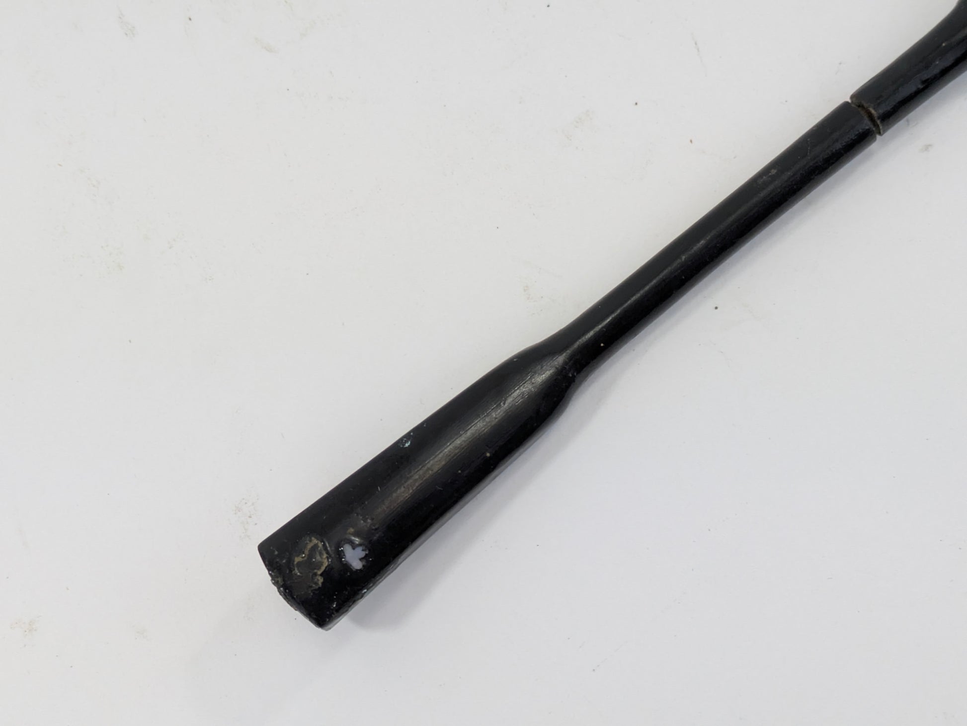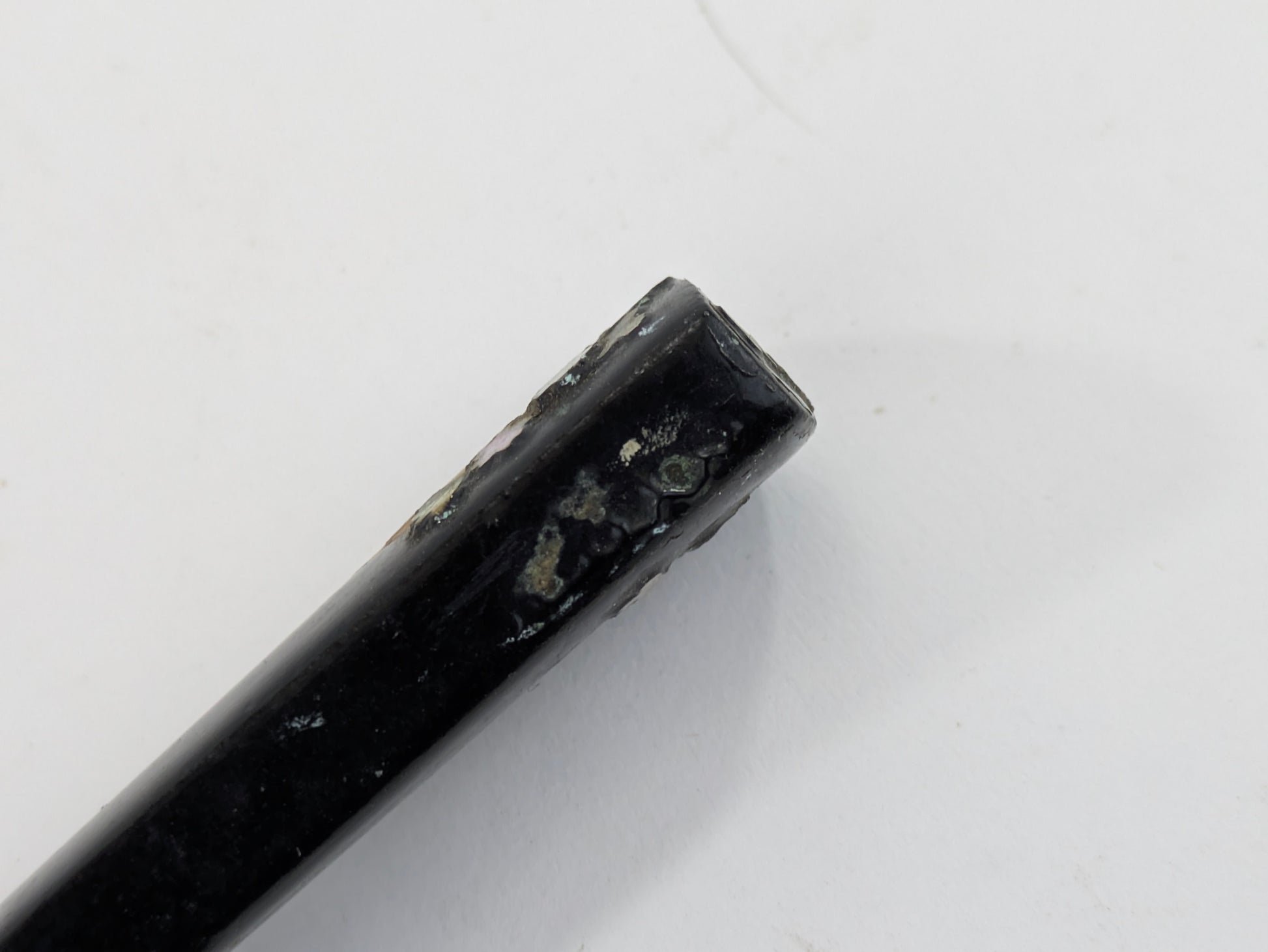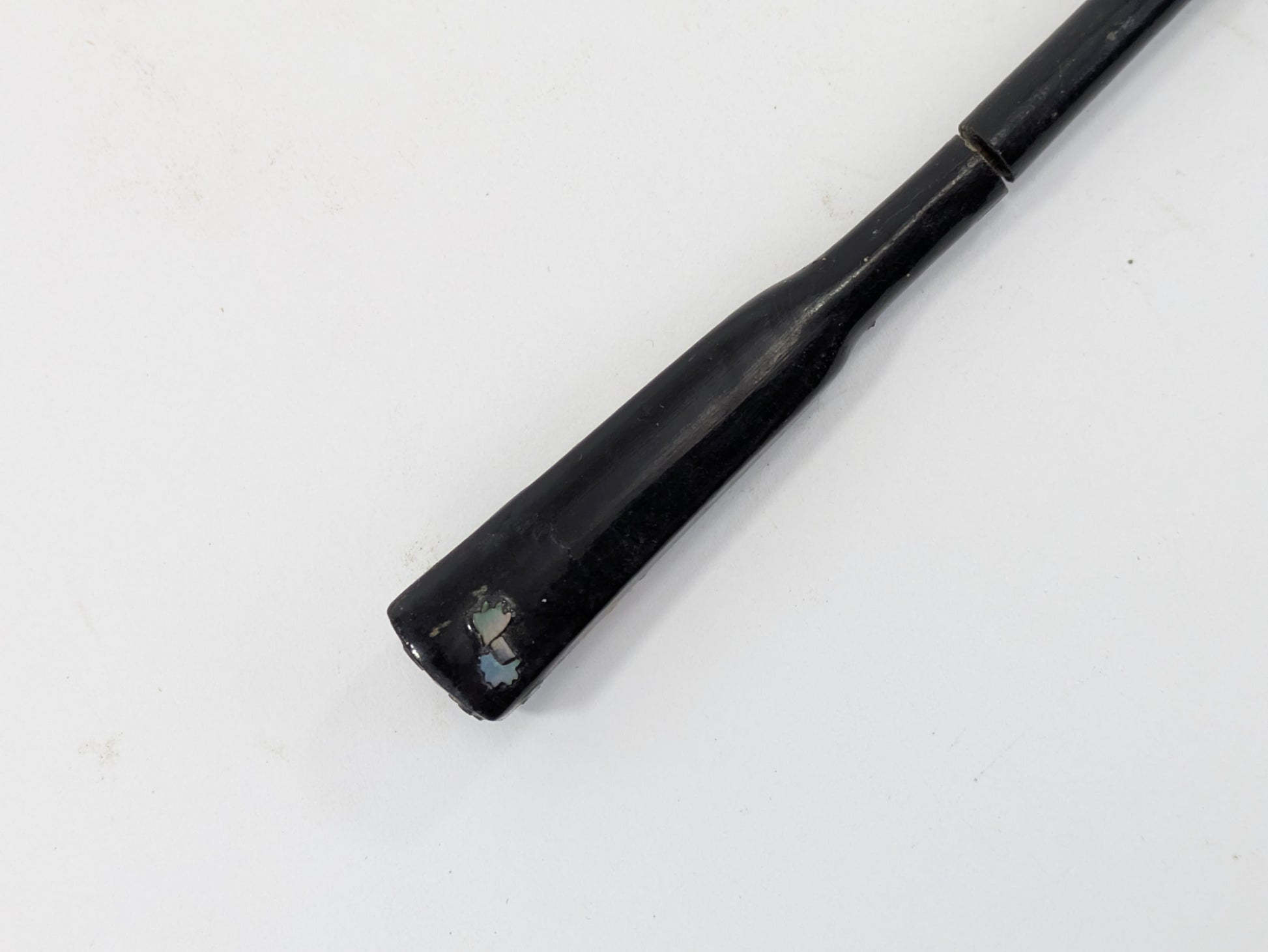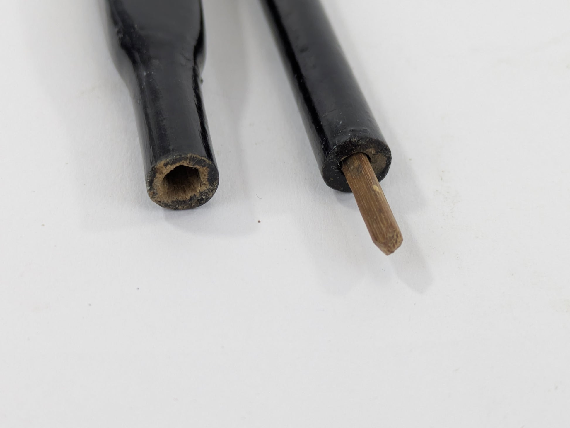 This form, tapered and balanced, follows the Edo-style tradition of symmetrical paired kogai, meant to slide through elaborate nihongami hairstyles. The interior join conceals a slender bamboo tang, characteristic of high-quality examples that combine lightness, flexibility, and natural finish.