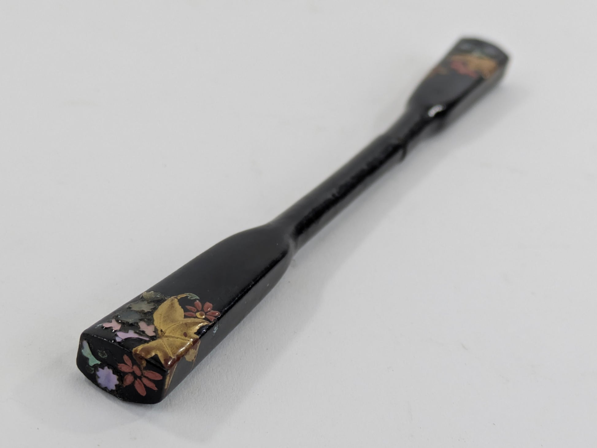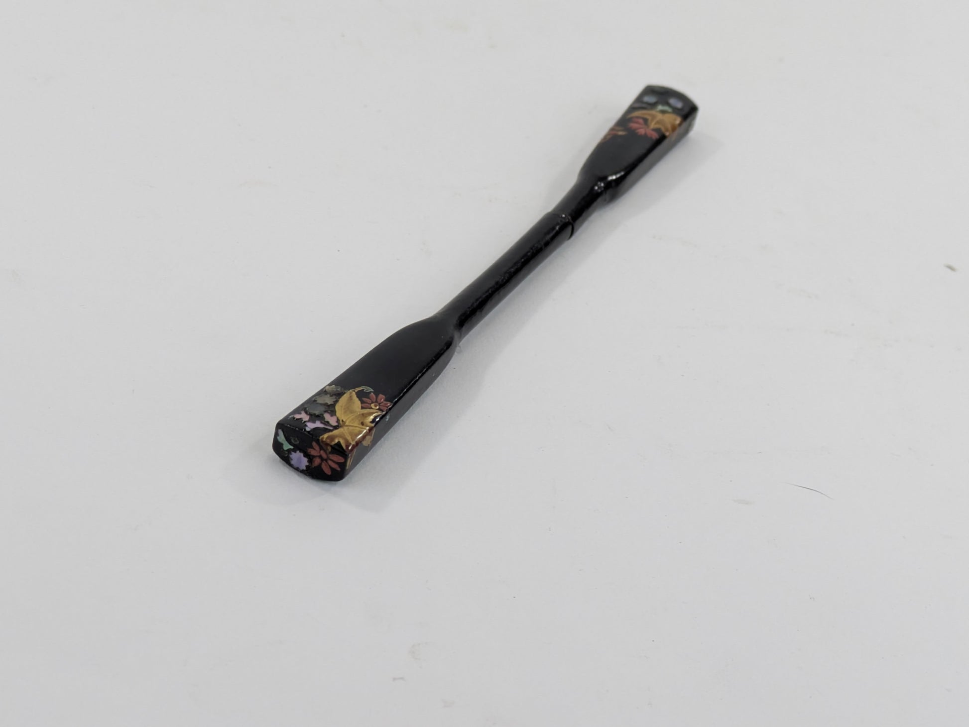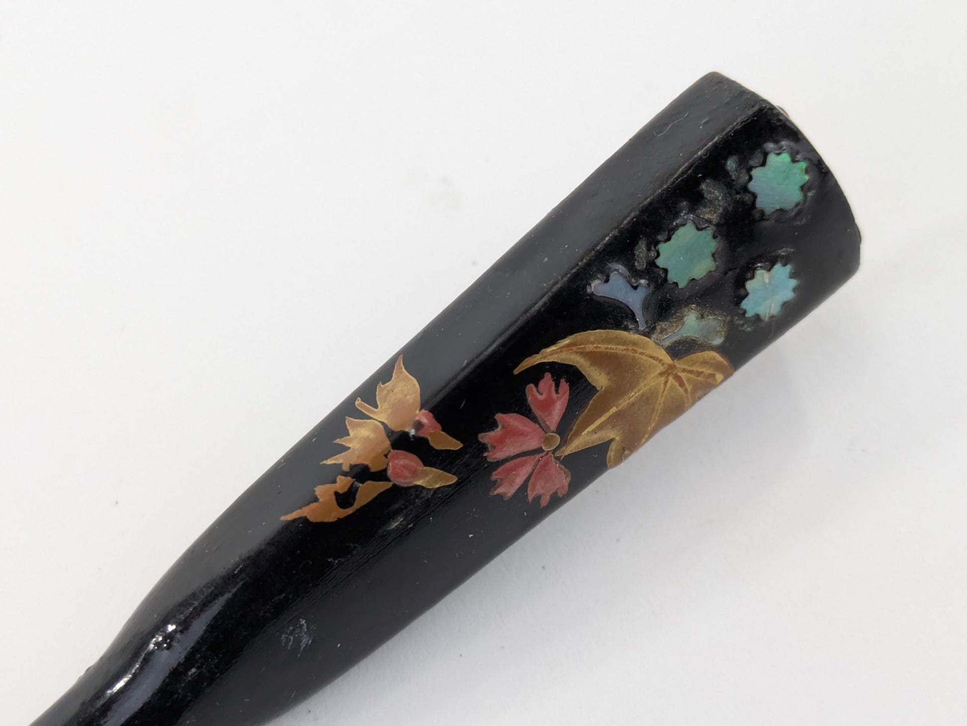 kogai, Japanese hair ornament, kanzashi, makie, raden, momiji, maple, autumn motif, Meiji, lacquer, nihongami, bijin, Japanese antique accessory