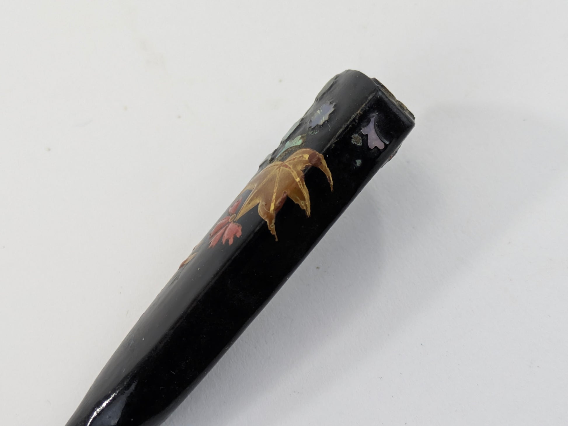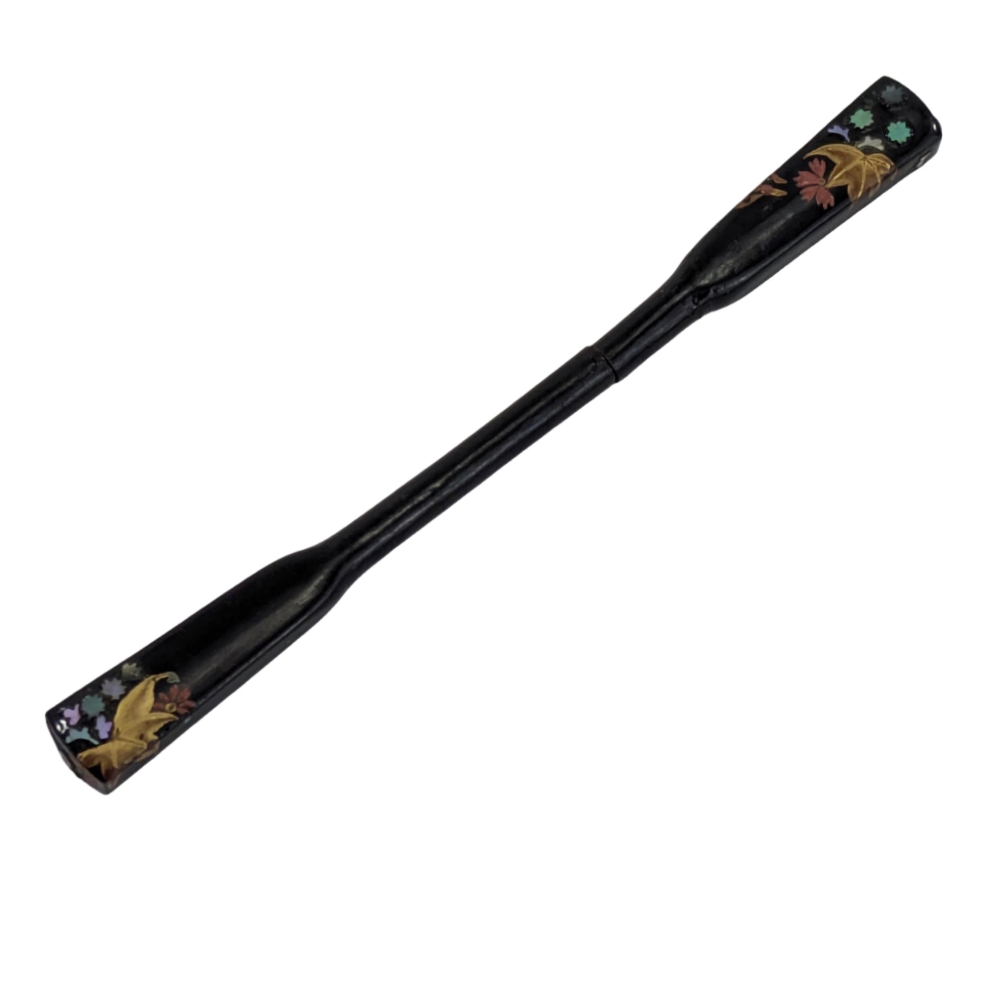 Antique Japanese Kogai Hair Ornament – Autumn Maple and Floral Makie with Raden Inlay – 8¼"