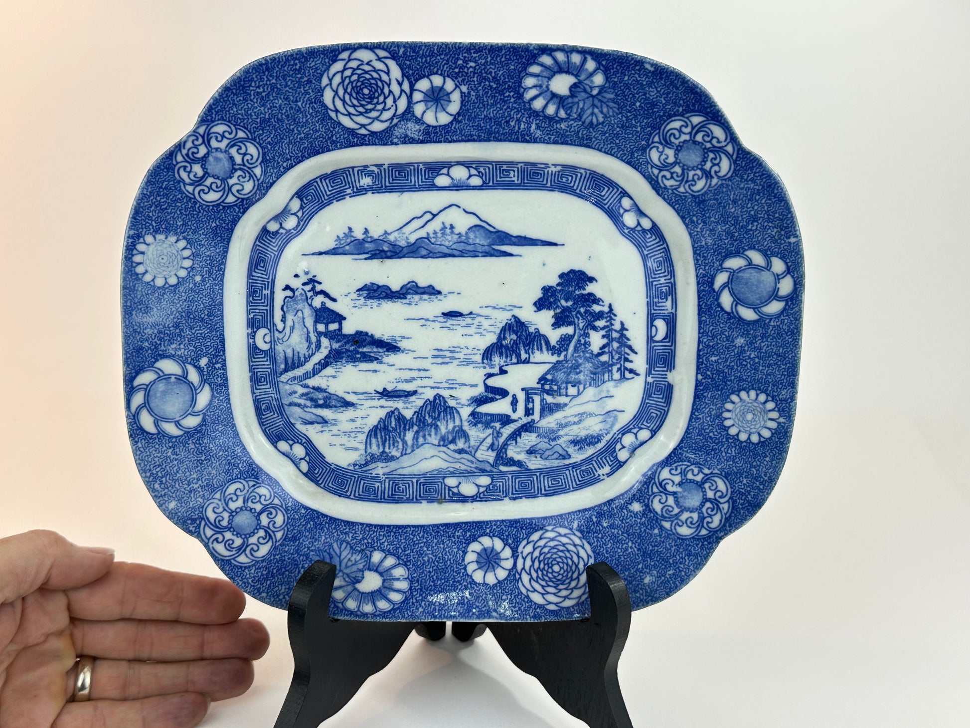 Antique Japanese Blue and White Porcelain Landscape Platter 10"W