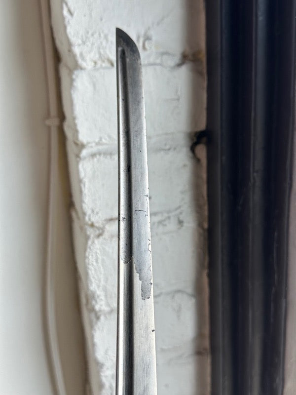• Markings: blade serial no. 16240; guard struck with Tokyo Arsenal four-cannonballs stamp (stamp used 1896–1899 only)