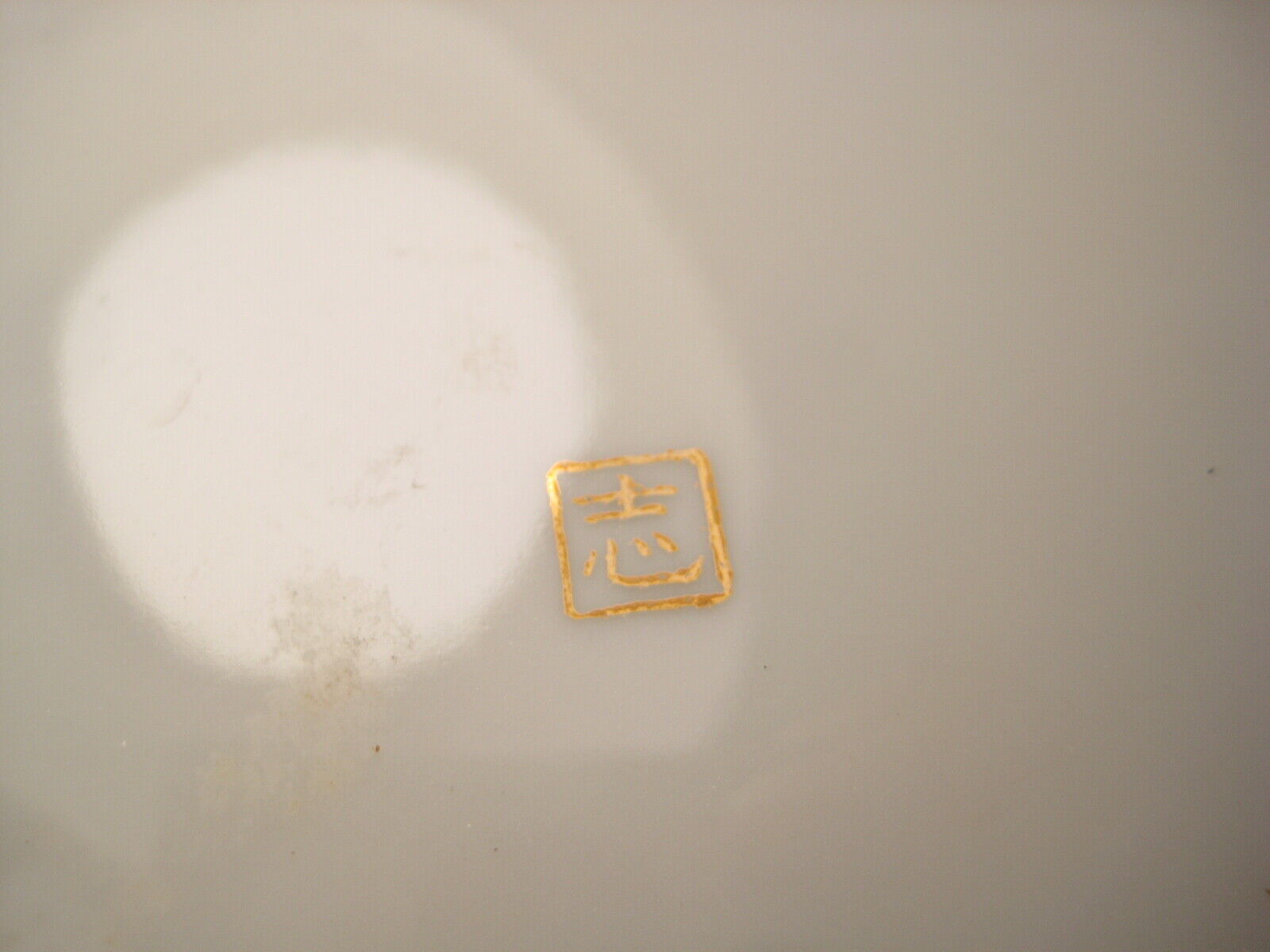 This is an antique Japanese mid Meiji Era (c. 1930) small ceramic dish. It is all hand thrown and hand painted with a scenic design featuring three geisha sitting along a river bank with a house and blossoming plum trees in the background. There is also a gold painted rim and a geometric patterns reminiscent of a parasol and kimono fabric at the top of the plate. The back of the plate has the artist's signature, Kutani written in gold paint. It was high fired for lasting durability. This dish measures 7 1/4" across by 7/8" high (18.5 x 2.2 cm) and remains in excellent condition. An excellent serving plate and also great for serving a variety of appetizers. It is truly a work of stand alone art.