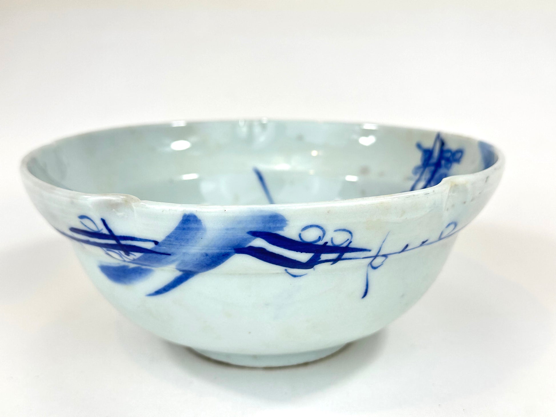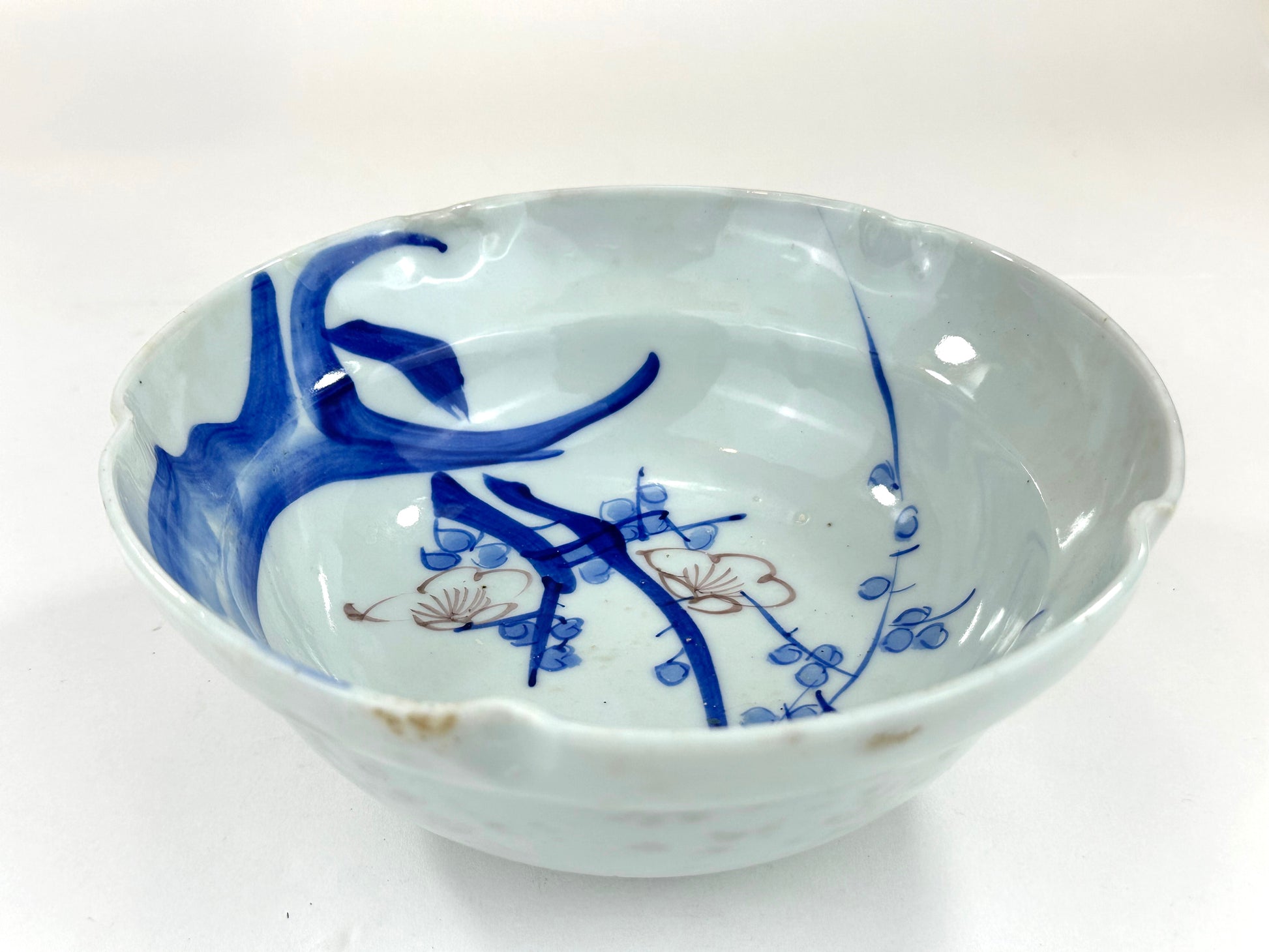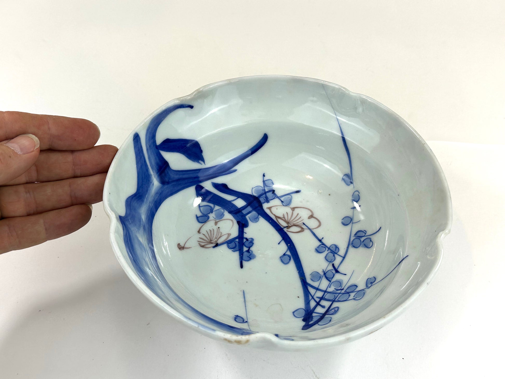 This is an antique Japanese Meiji era c1870’s ceramic bowl. It’s all hand painted in a cherry blossom motif inside and outside. The bowl is formed with slight scalloping suggesting the five petals of the sakura cherry flowers.