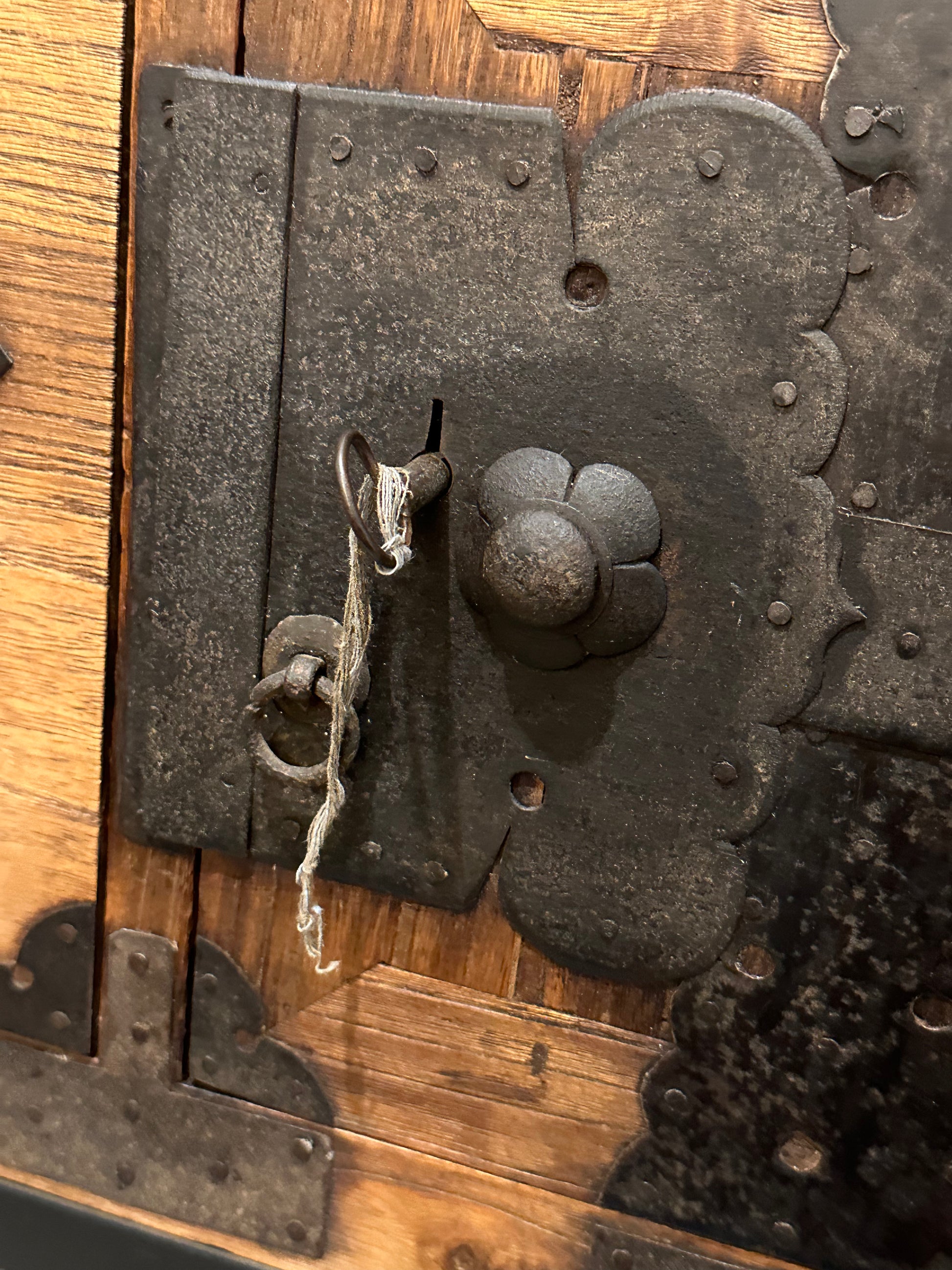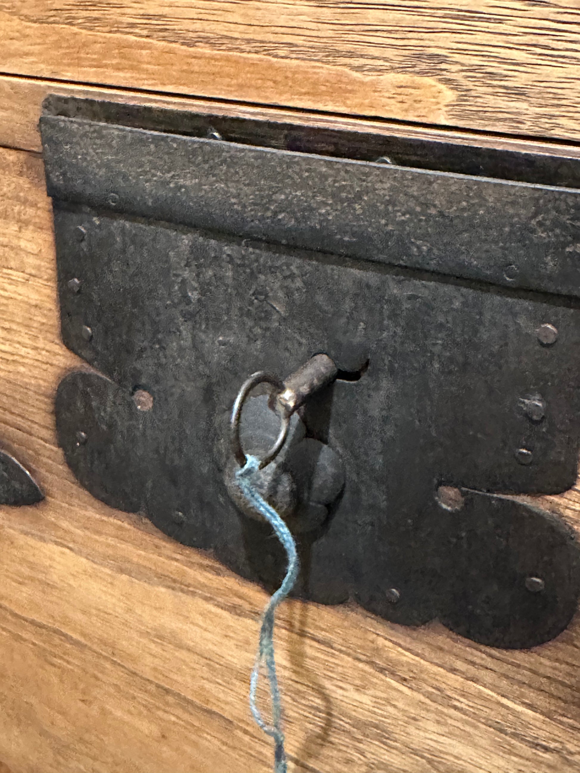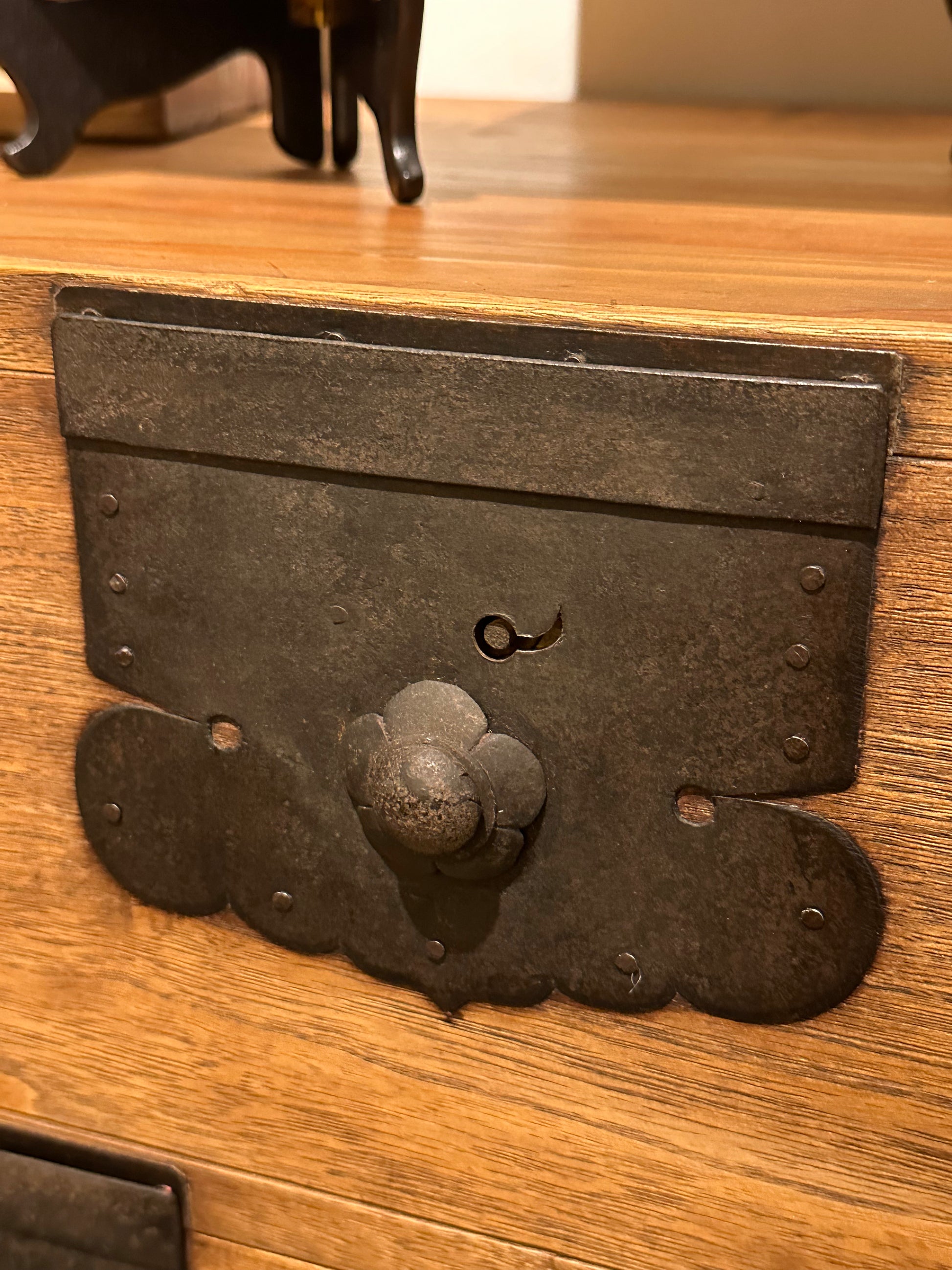 This chest has a century and a half old original warm aged patina and, having been used lovingly for over a century, it remains in fine original antique condition and should serve for another century of use. There are some areas of past stains and distress marks as expected from a genuine antique. A great piece of Japanese history and an interesting and very solid and functional piece of furniture.