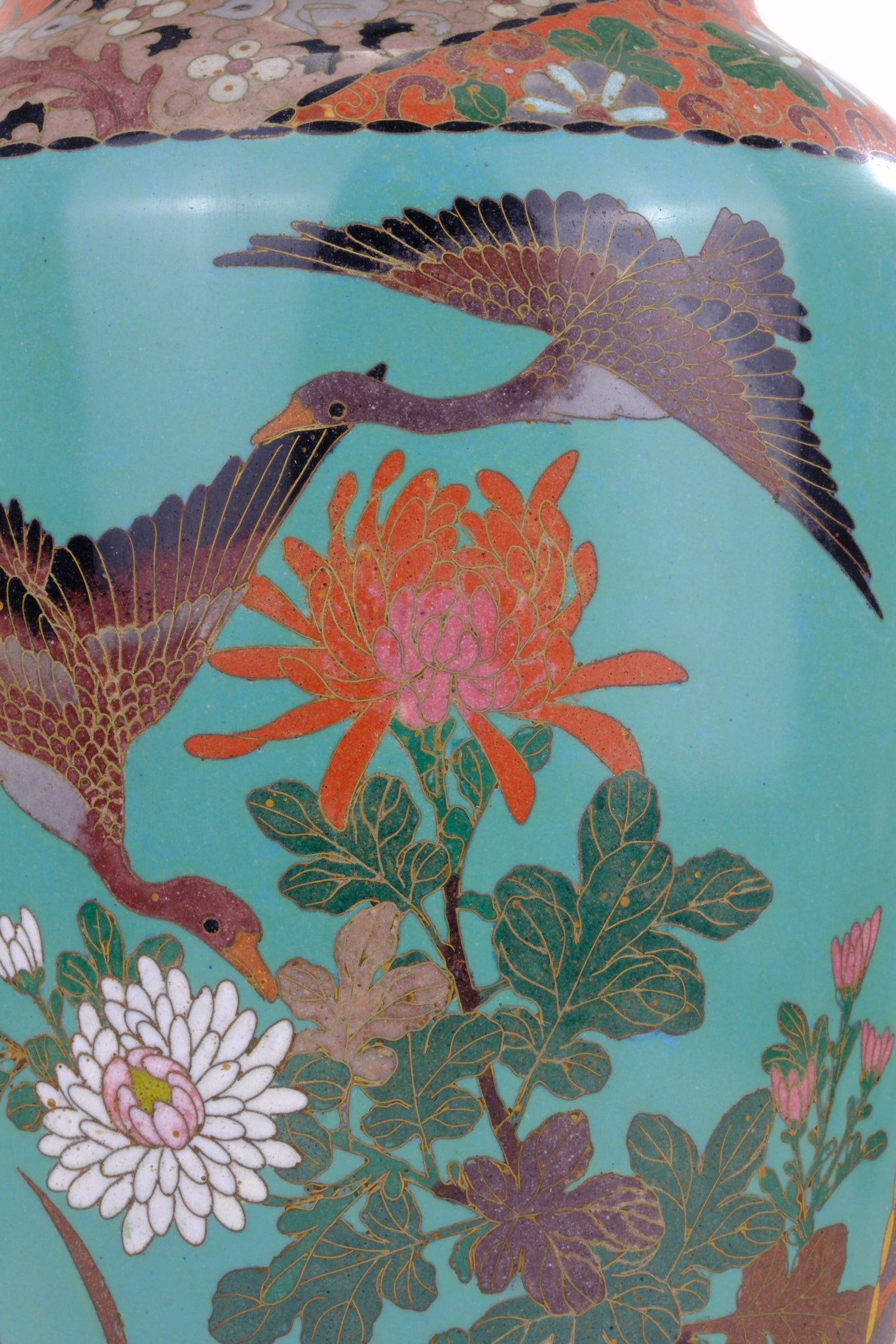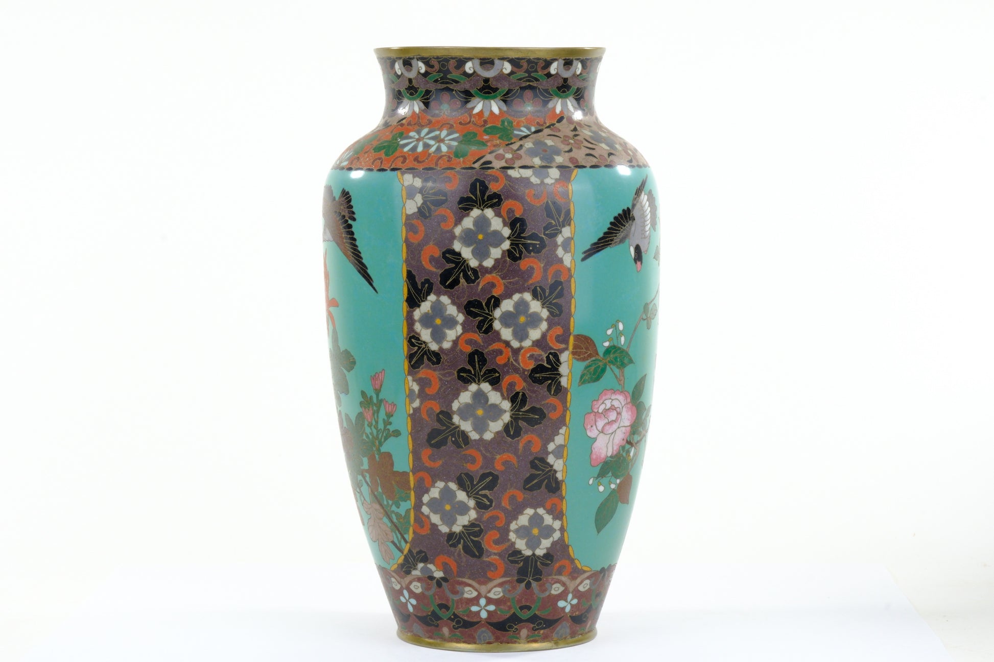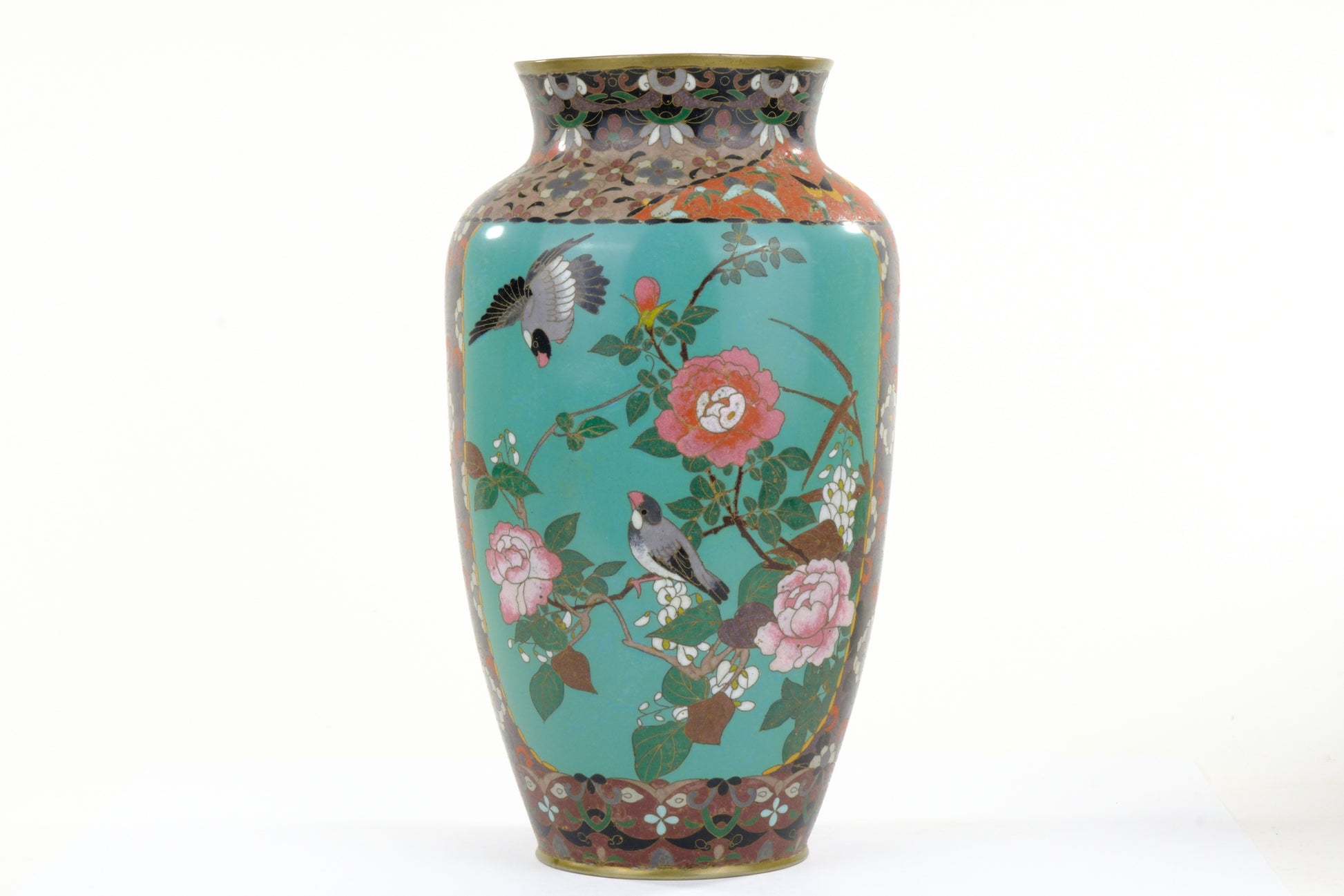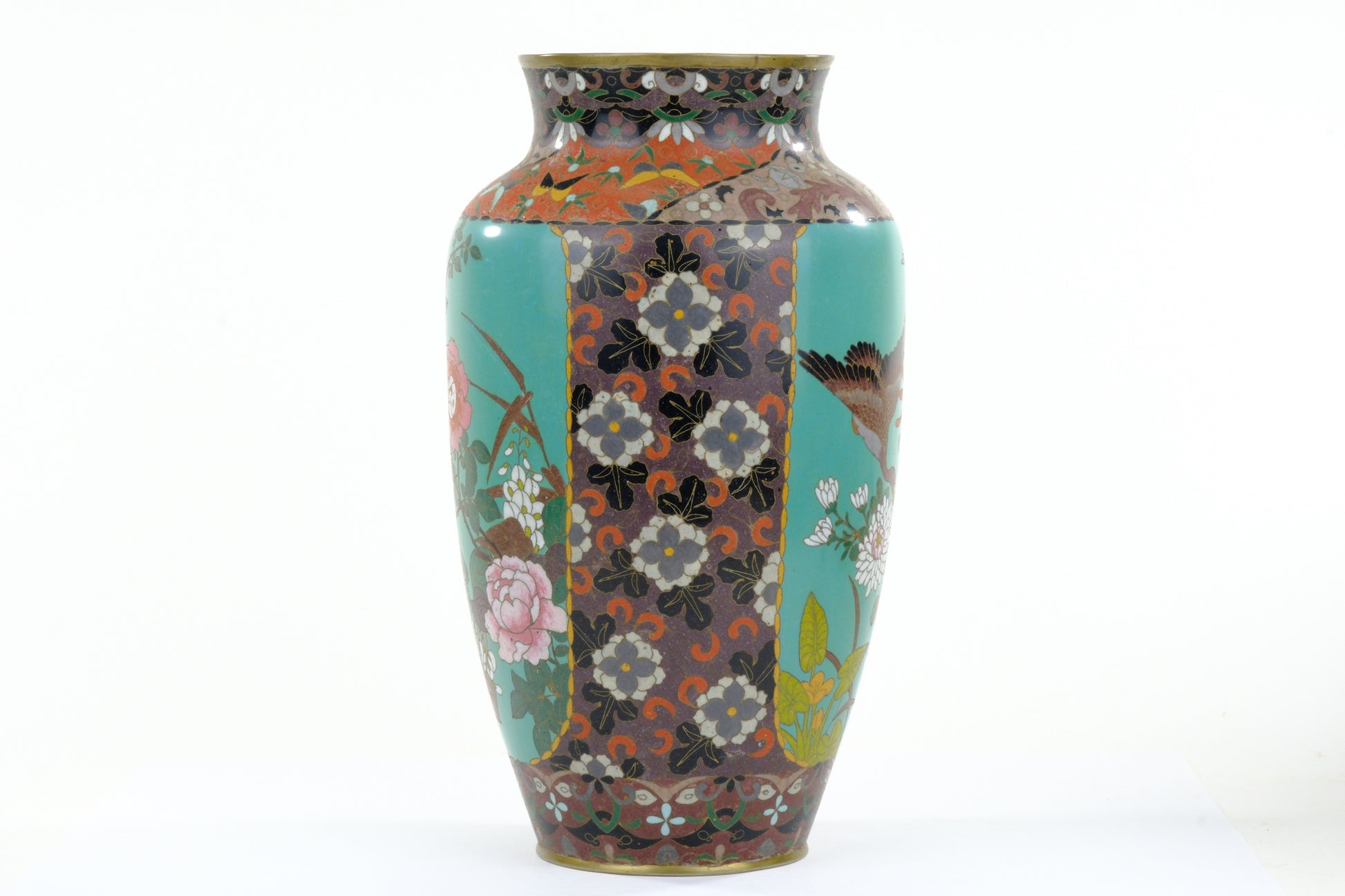 Antique Japanese Meiji Era (c1880) Cloisonné Vase Geese in Flight & Flowers 12”