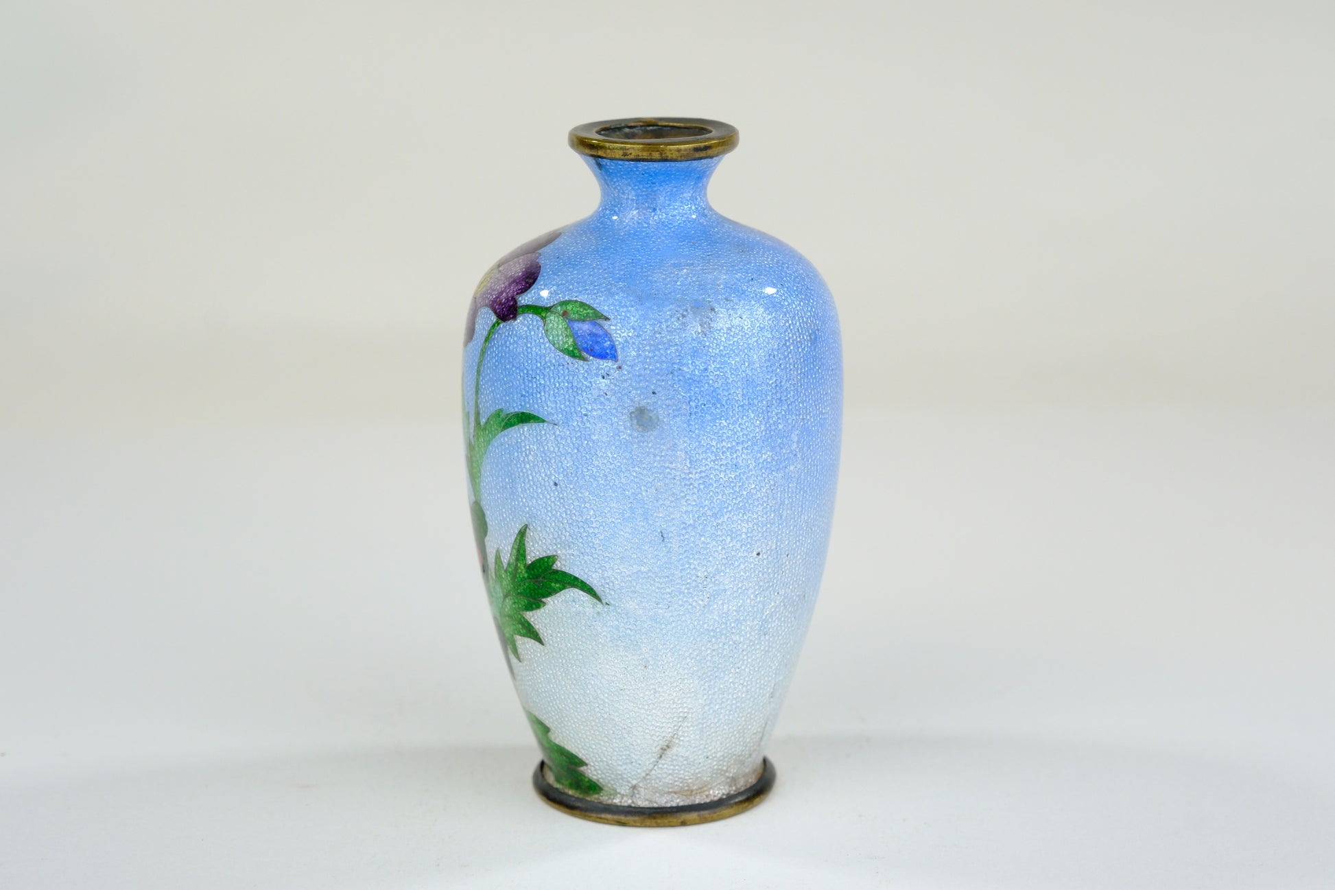 Antique Japanese Meiji Era (c1910) Signed Ota Toshiro Cloisonné Vase Sky Blue 3.5”