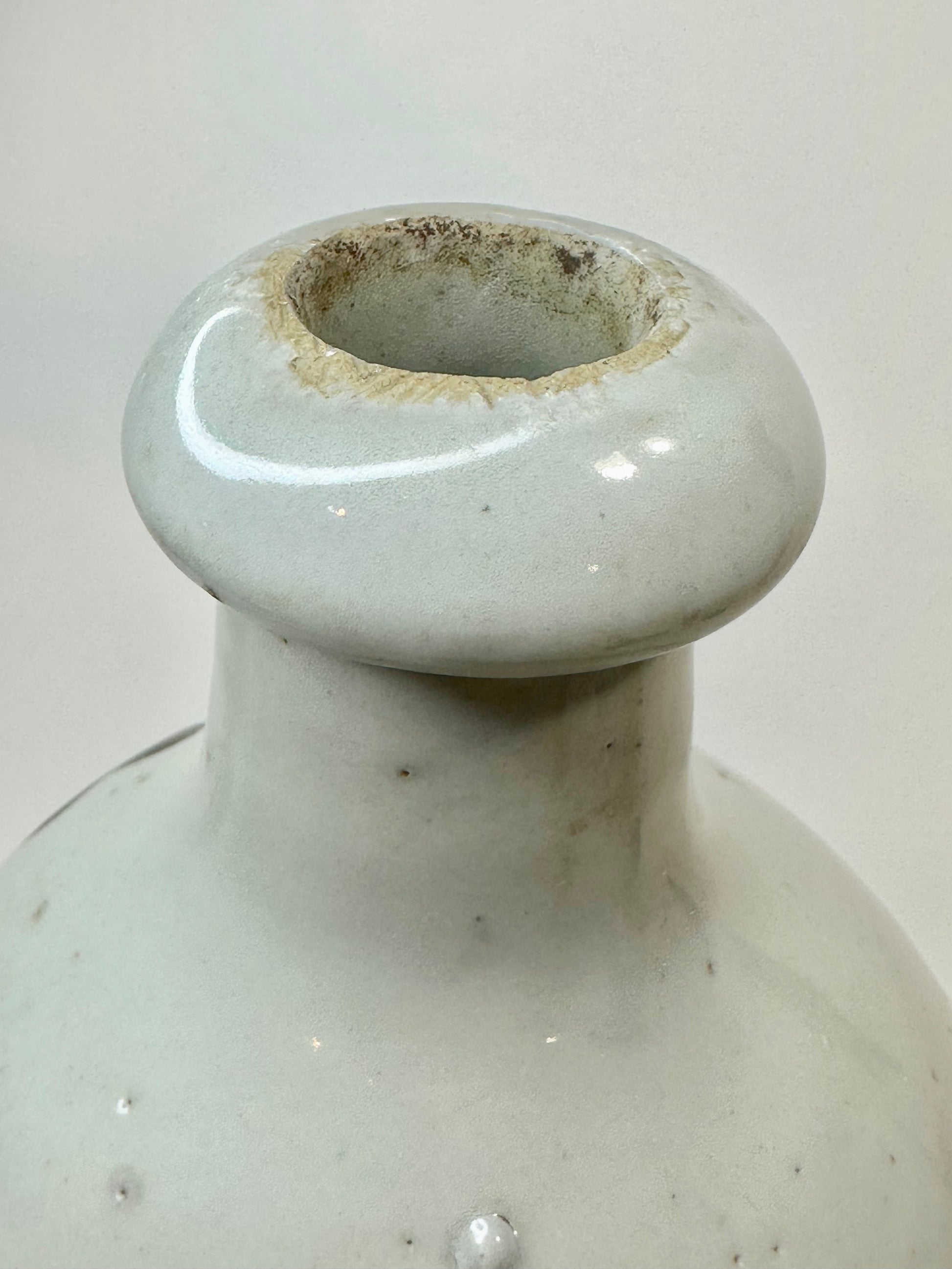 This Japanese tokkuri (徳利) was traditionally used for storing and serving sake, Japan’s fermented rice wine. Larger examples such as this one were typically employed by brewers, inns, or taverns for transport and bulk storage, often sealed with paper or cloth and secured with twine.