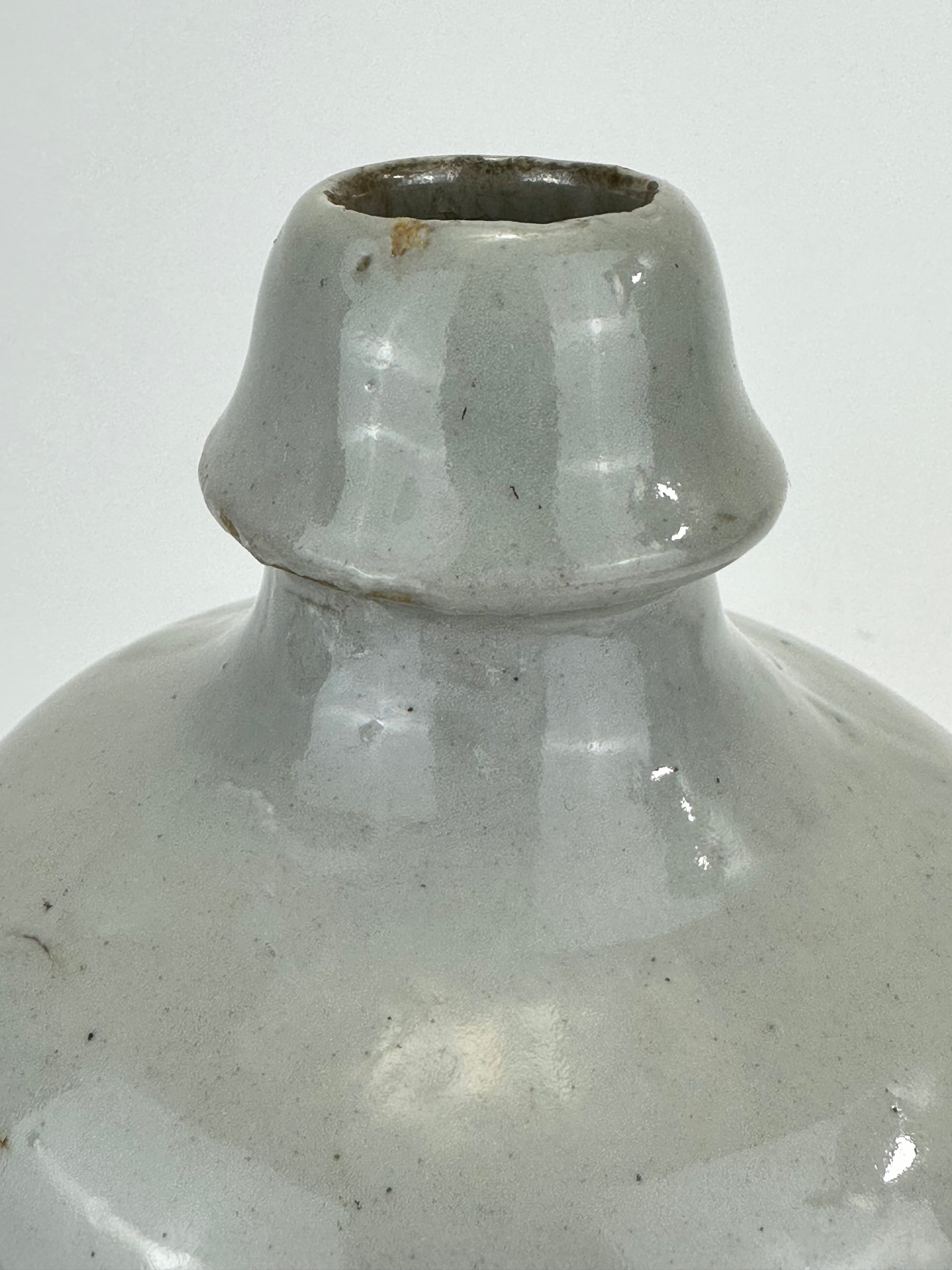This Japanese tokkuri (徳利) was traditionally used for storing and serving sake, Japan’s fermented rice wine. Larger examples such as this one were typically employed by brewers, inns, or taverns for transport and bulk storage, often sealed with paper or cloth and secured with twine.