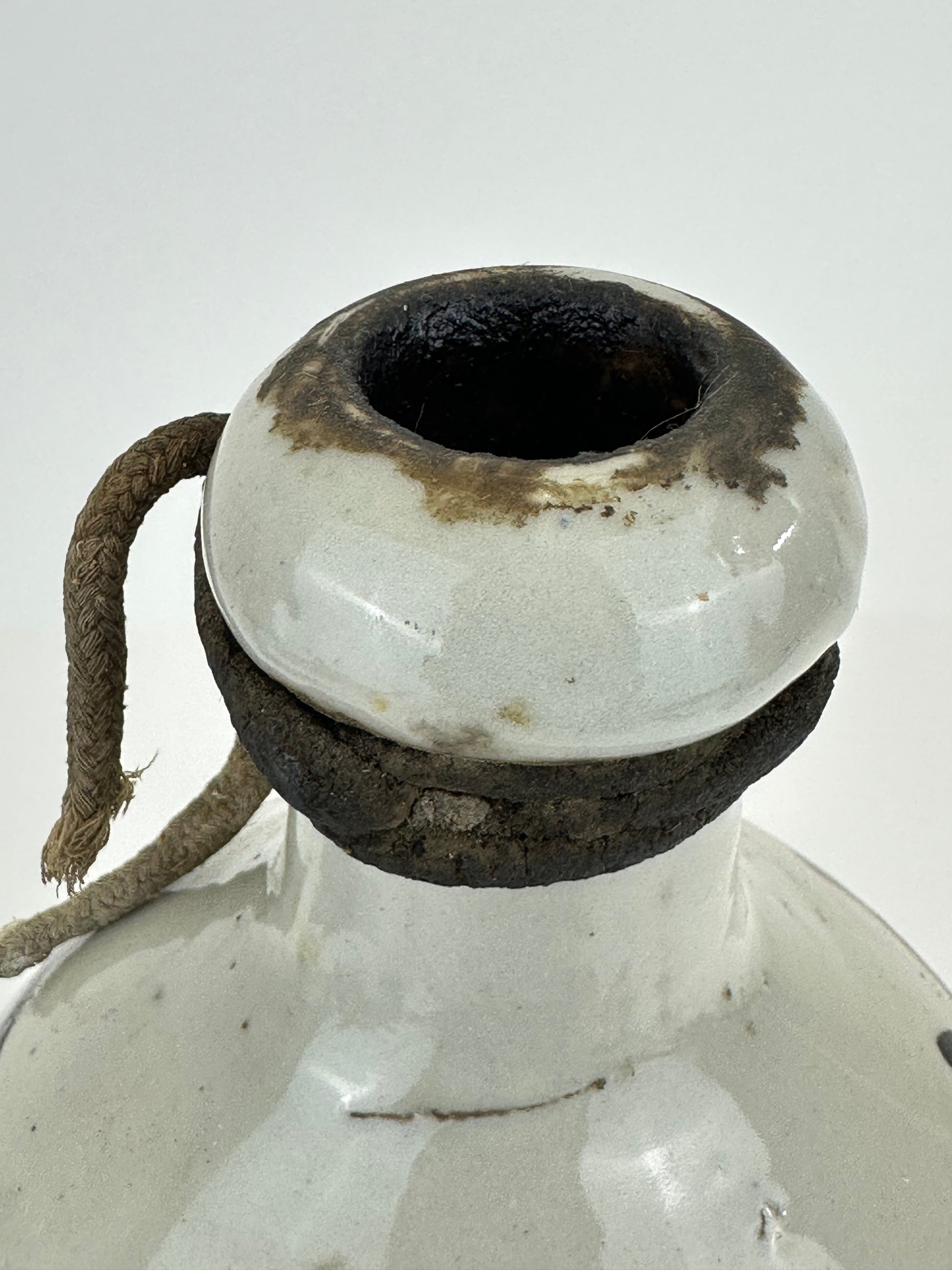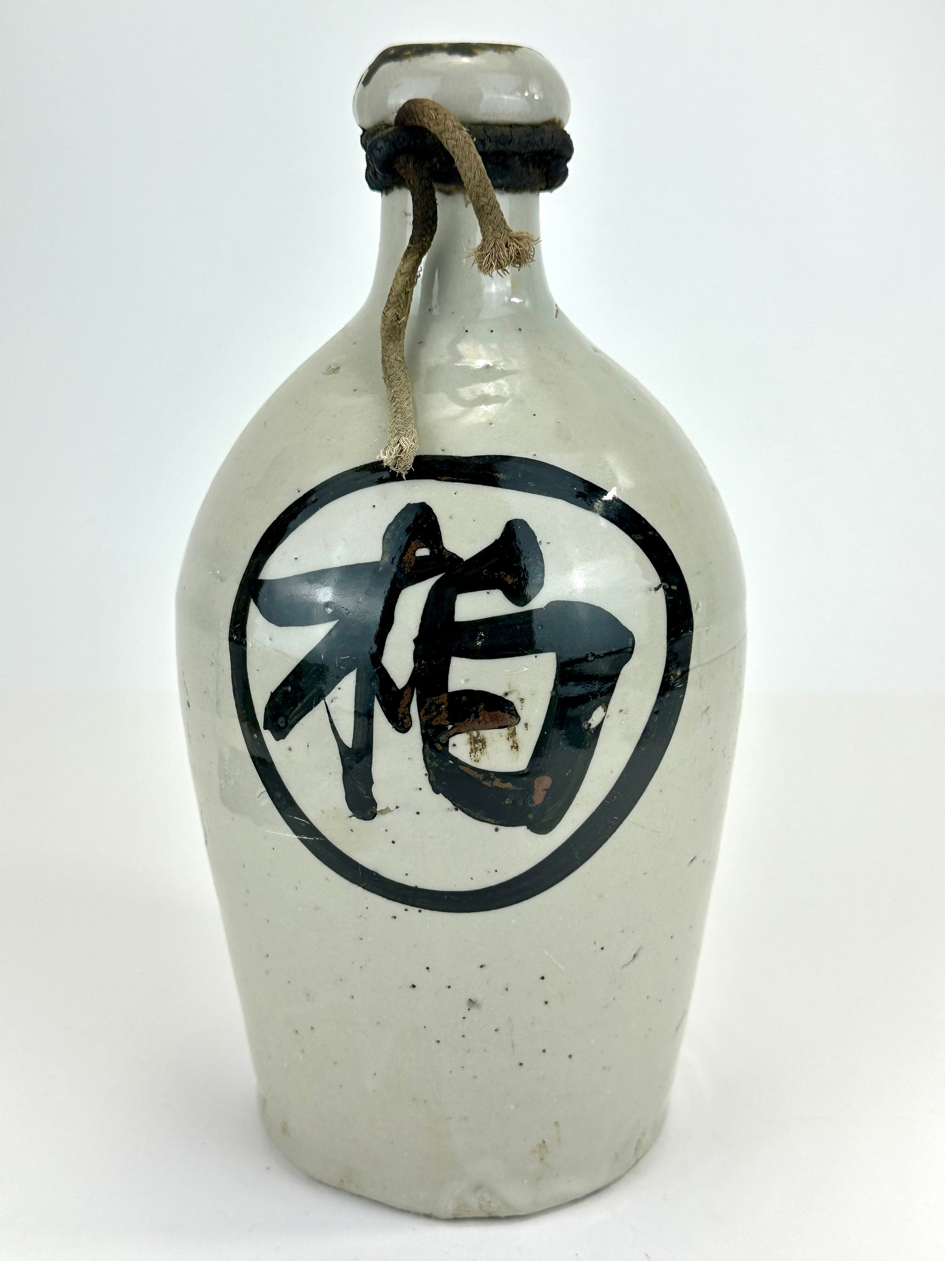 This Japanese tokkuri (徳利) was traditionally used for storing and serving sake, Japan’s fermented rice wine. Larger examples such as this one were typically employed by brewers, inns, or taverns for transport and bulk storage, often sealed with paper or cloth and secured with twine.