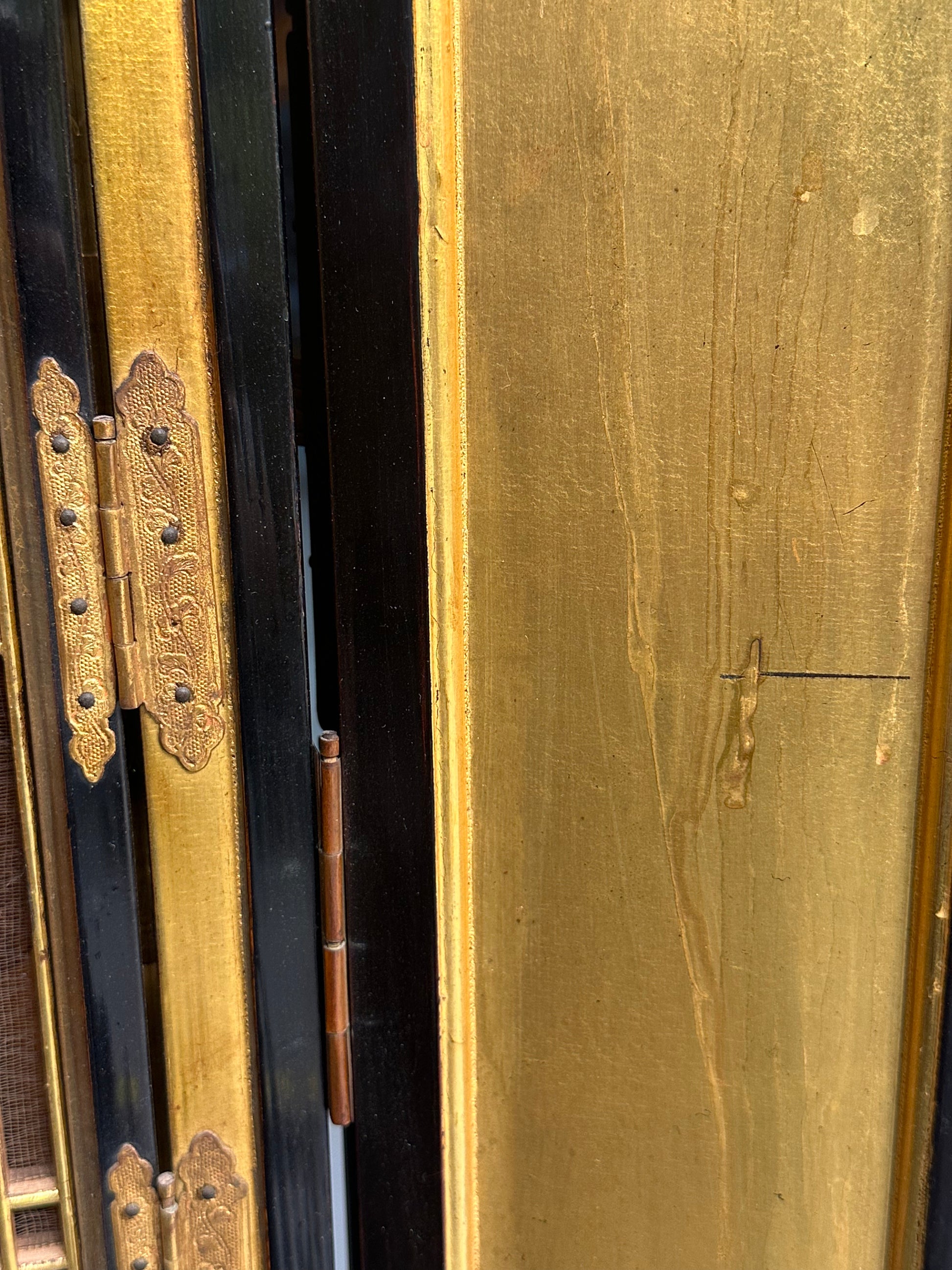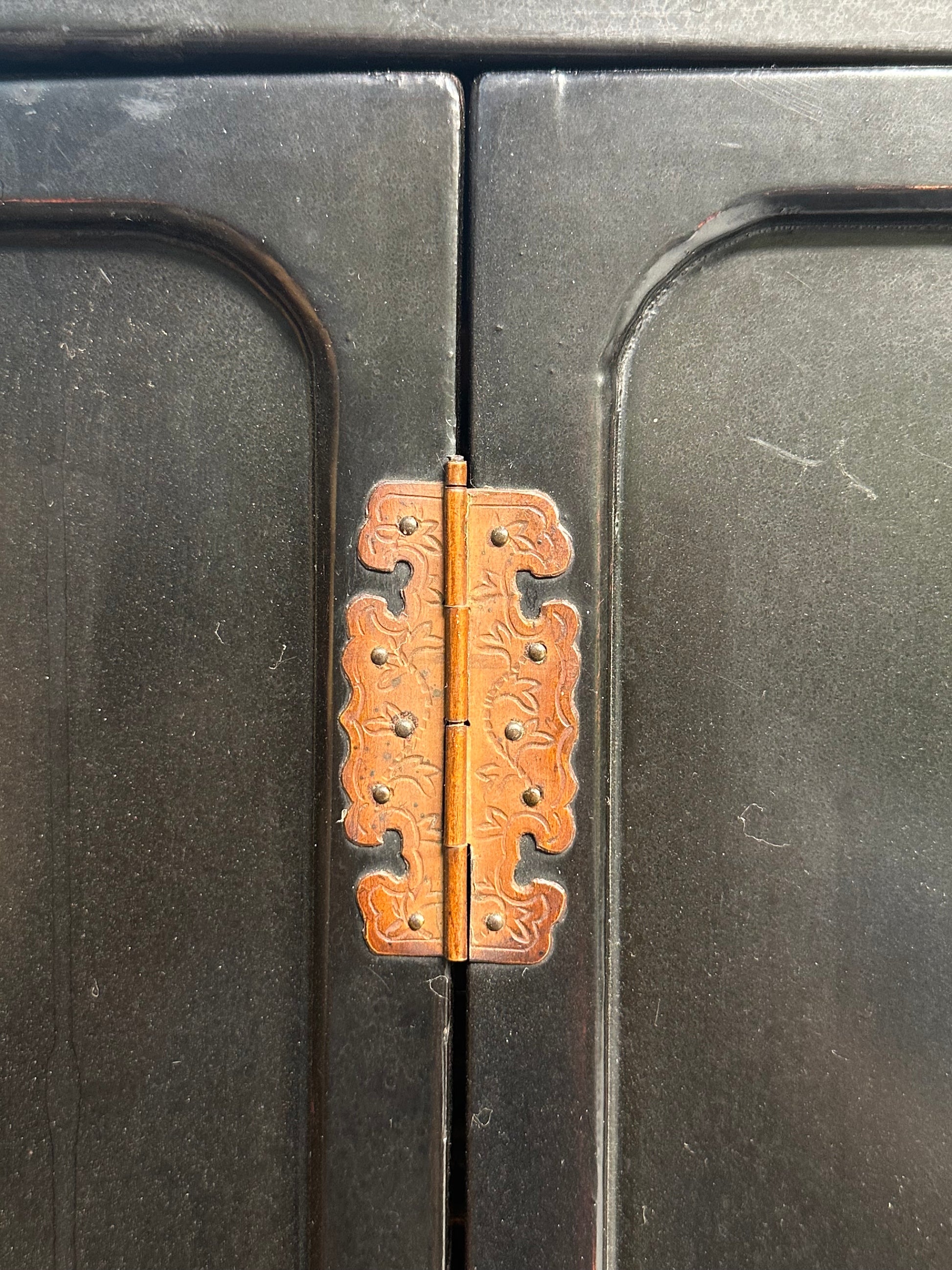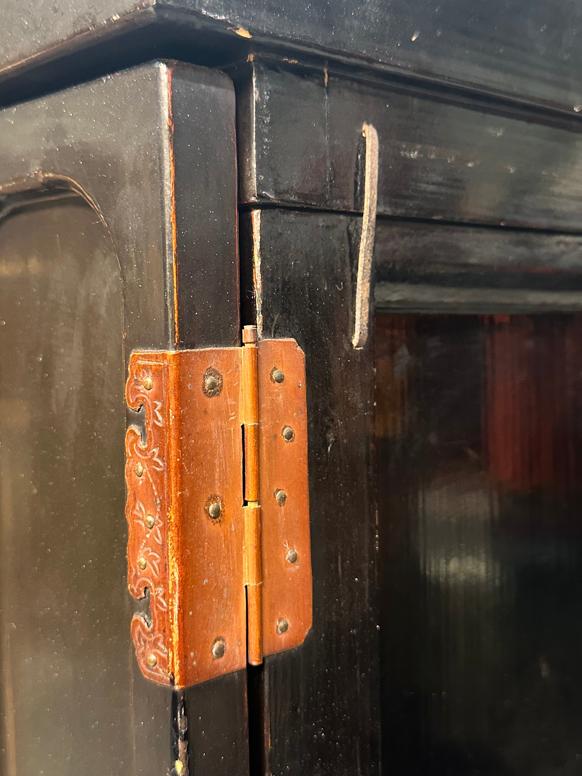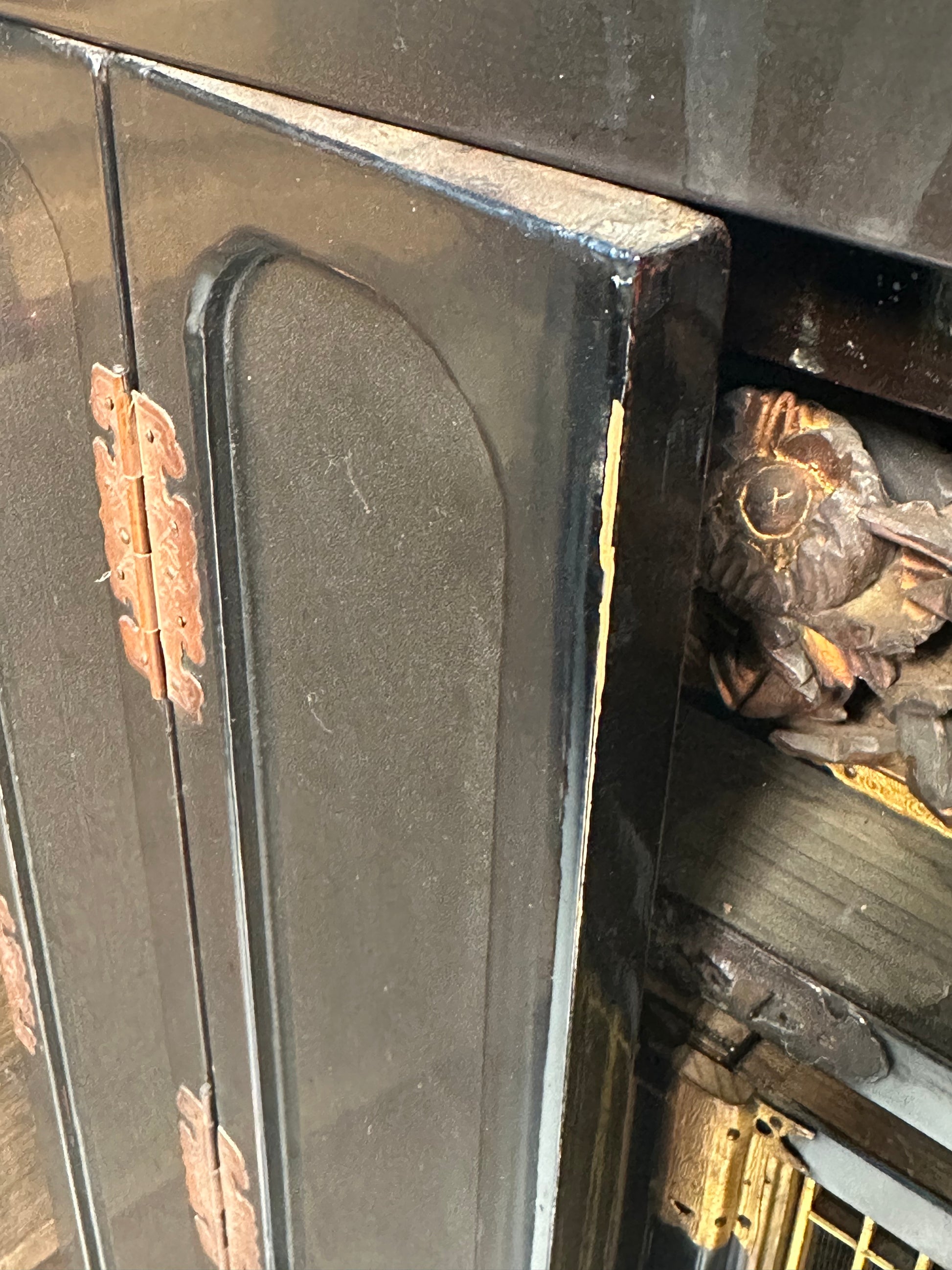 This is an antique Japanese Butusdan which is a scared and intricately crafted household alter, typically adorned with delicate carvings and lacquerwork. It serves as a focal point for Buddhist rituals, creating a serene space for pryer and meditation within the home.