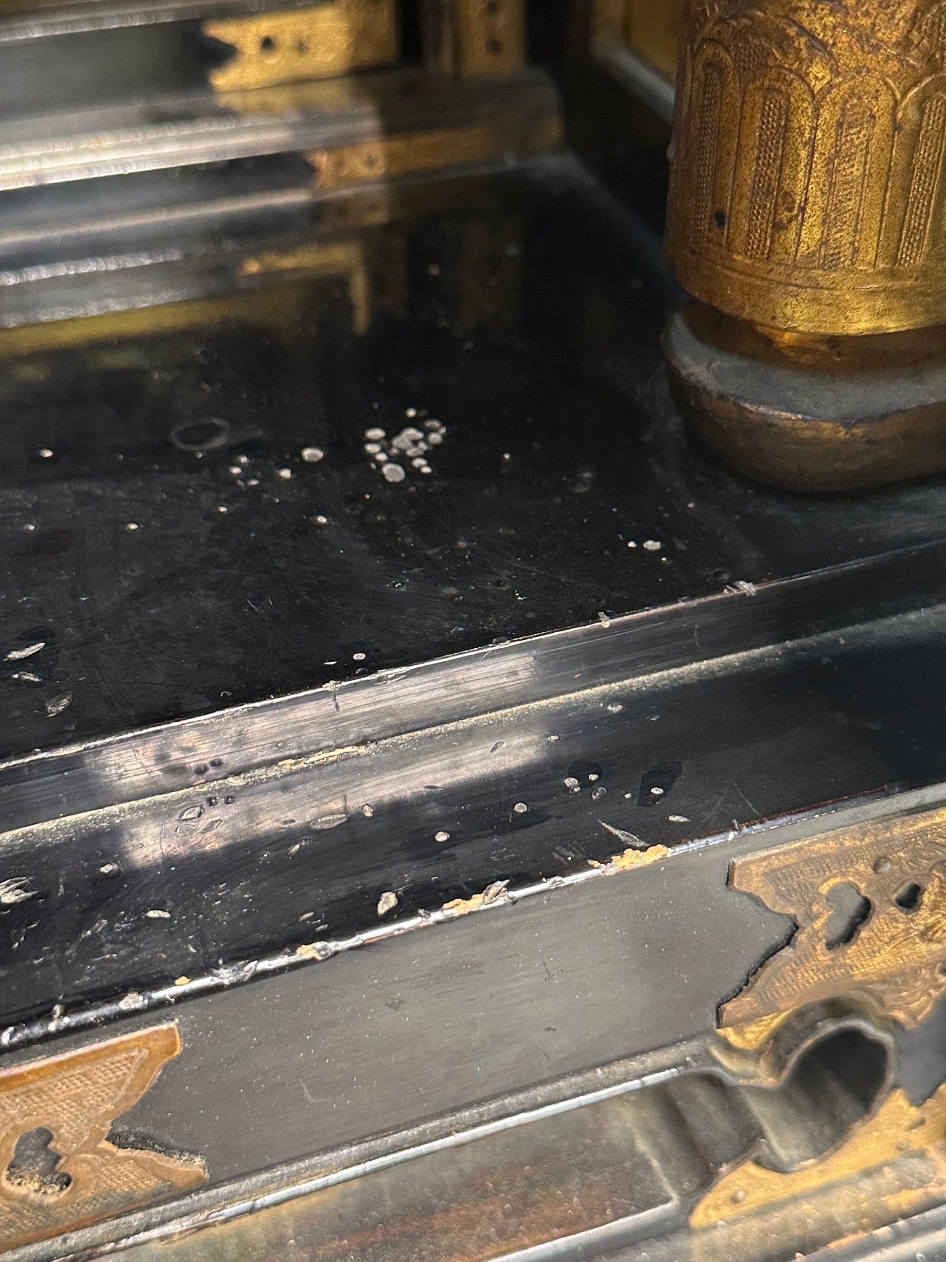 The highest level of craftsmanship was required to hand make the carving, detailed decor of the metal work and assembly of the whole piece. The lacquerwork allow is a work of art with 10-20 layers of natural urushi lacquer applied and cured over many week.
