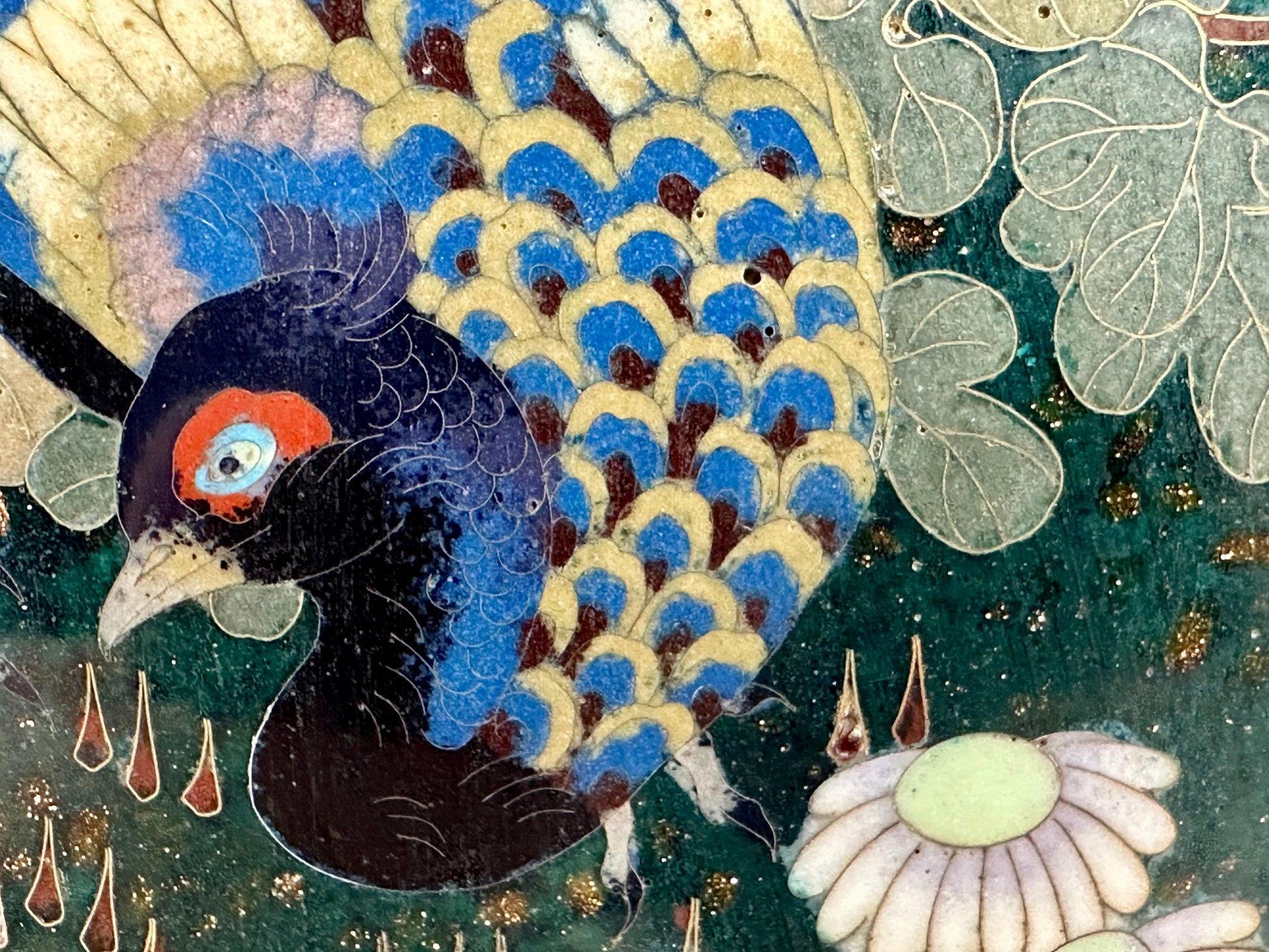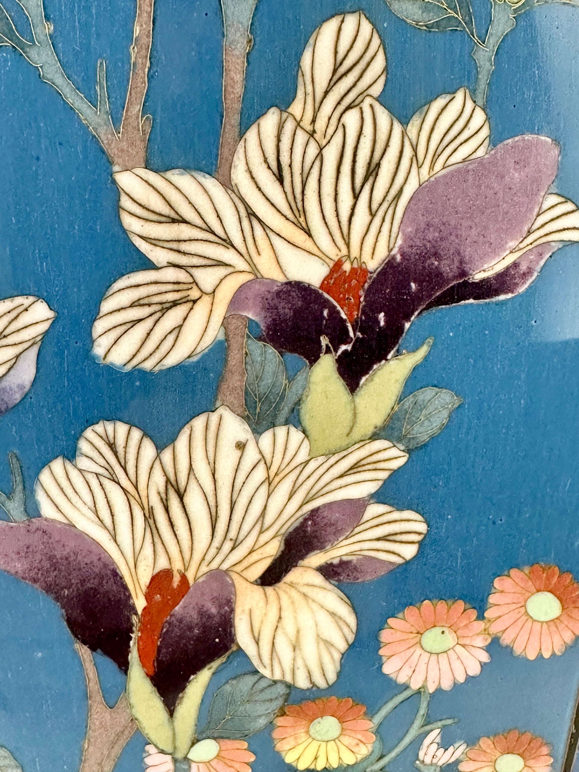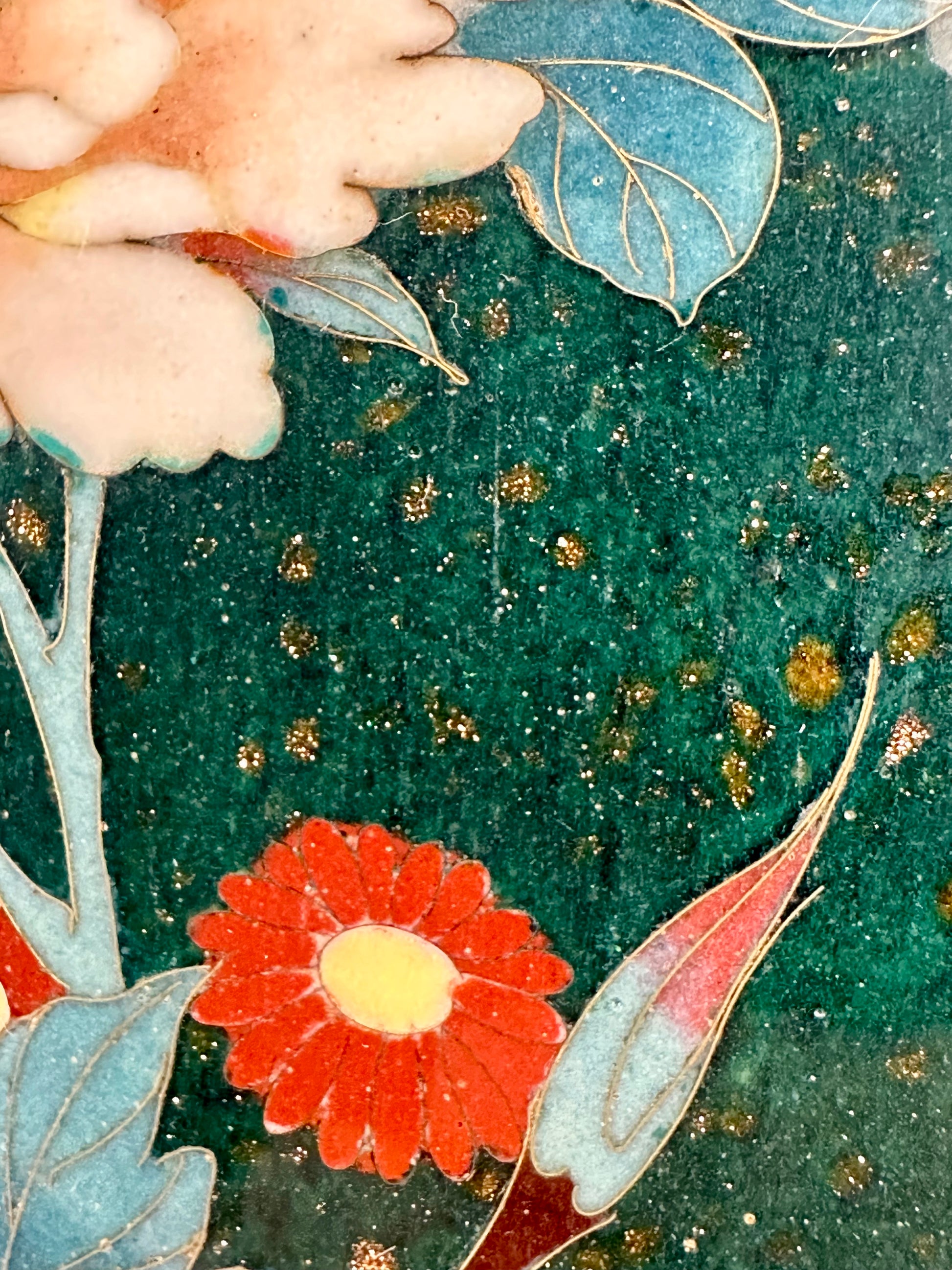 Japanese cloisonné is an exquisite art form that marries meticulous craftsmanship with vibrant aesthetics. This traditional technique reached a level of extreme mastery in the Meiji era and involves adorning a metal base, often copper or silver, with delicate wire partitions, creating intricate compartments known as "cloisons." These compartments are then meticulously filled with vivid enamel, resulting in a rich tapestry of colors that, after multiple firings and polishing, achieve a glossy, flawless finish. The process demands precision, skill and hundreds of hours, making each piece a testament to the artisan's expertise and dedication. With its captivating patterns, luminous colors, and often intricate inlays, Japanese cloisonné serves as a luxurious and culturally rich addition to any space, seamlessly blending tradition with timeless elegance.