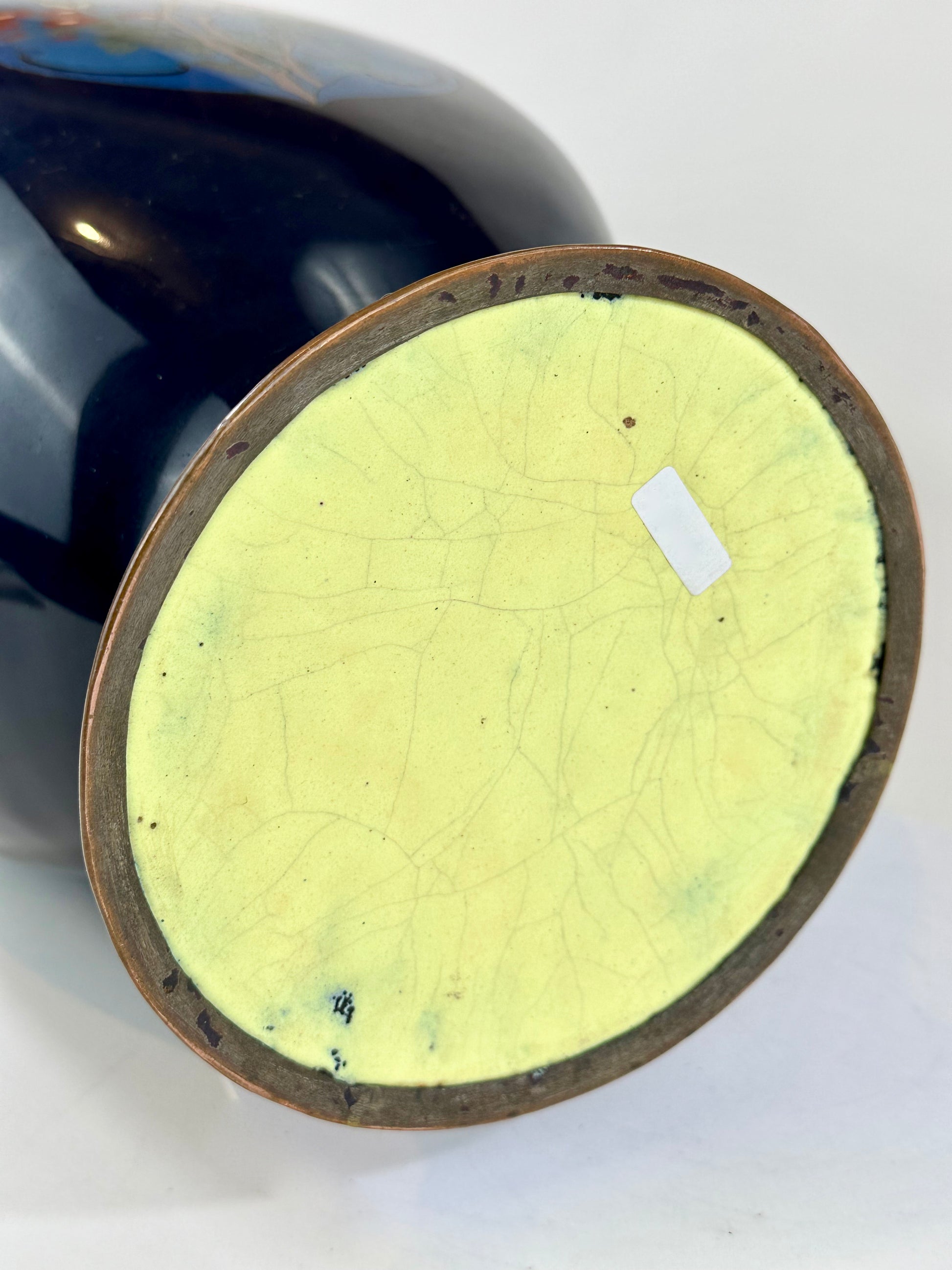 This vase is 24" tall by 8" in diameter (61 x 20 cm). It weighs about 8lbs. Having been carefully displayed for nearly five decades since acquired by a dedicated local collector, with the exception of a small area of missing enamel at the base (see photos) it remains in fine condition.