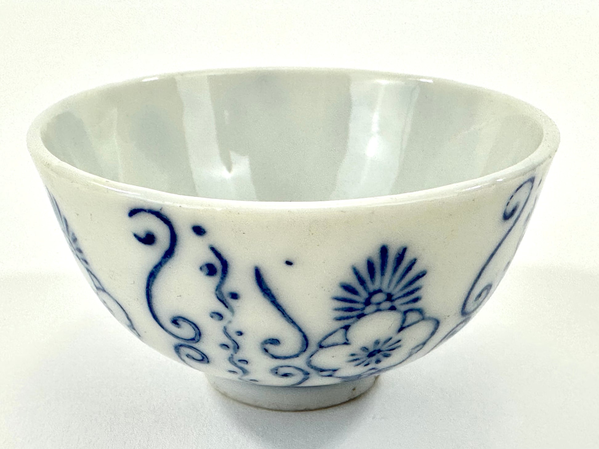 Floral elements in sometsuke 染付 porcelain often evoke renewal, auspicious beauty, and domestic refinement. The overall effect is both subtle and expressive, suitable for tea, sake, or contemplative display. The traditional freehand brushwork reflects the confident studio craftsmanship of the period.