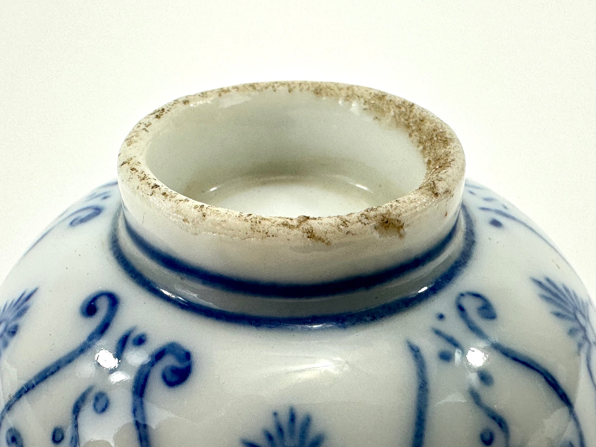 Condition: Light age-related wear, expected glaze irregularities, and natural firing marks. Some rim wear at the foot from use and handling, no structural cracks.