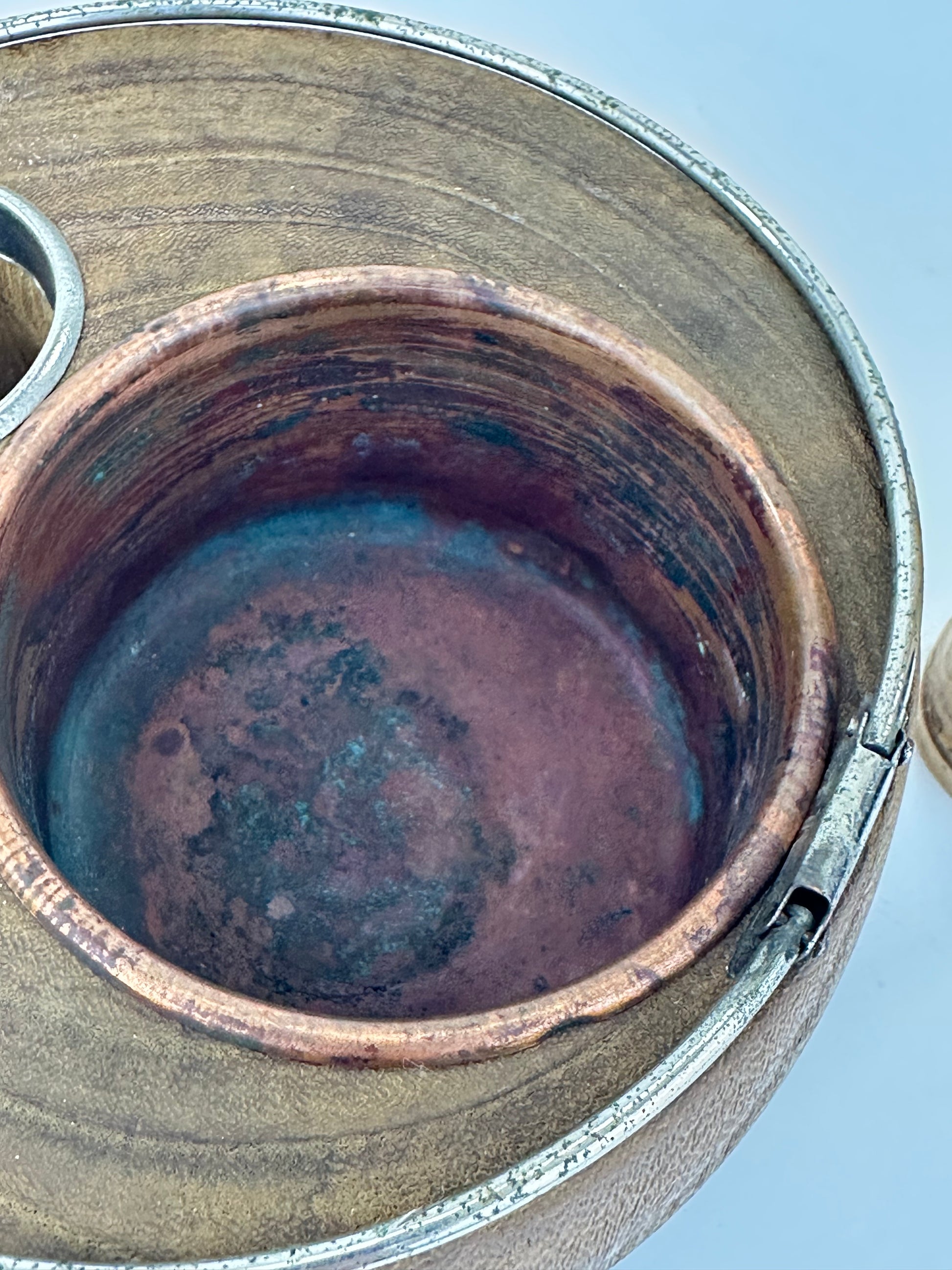 Expected wear to metal surfaces and interior copper bowl from historical use