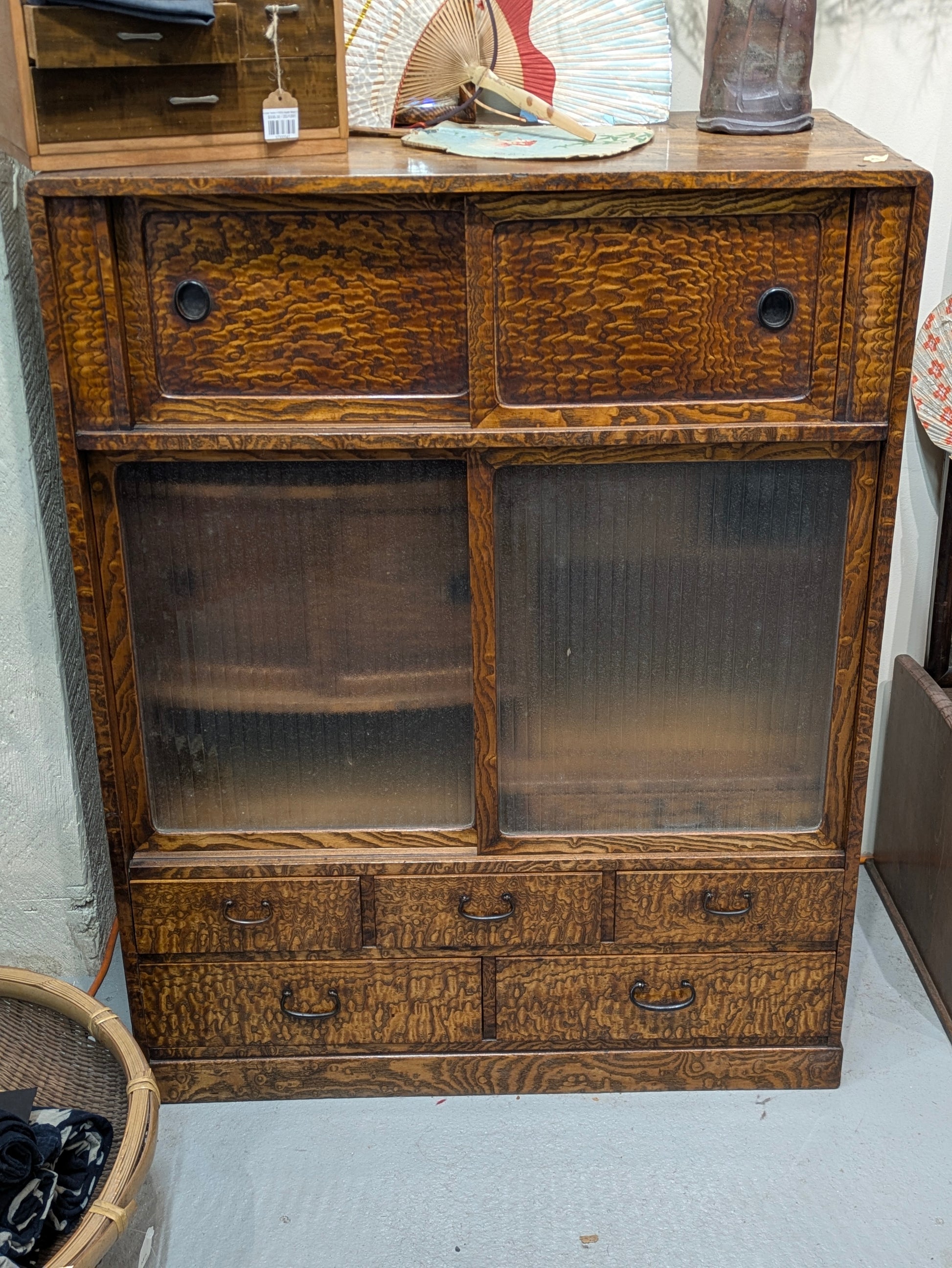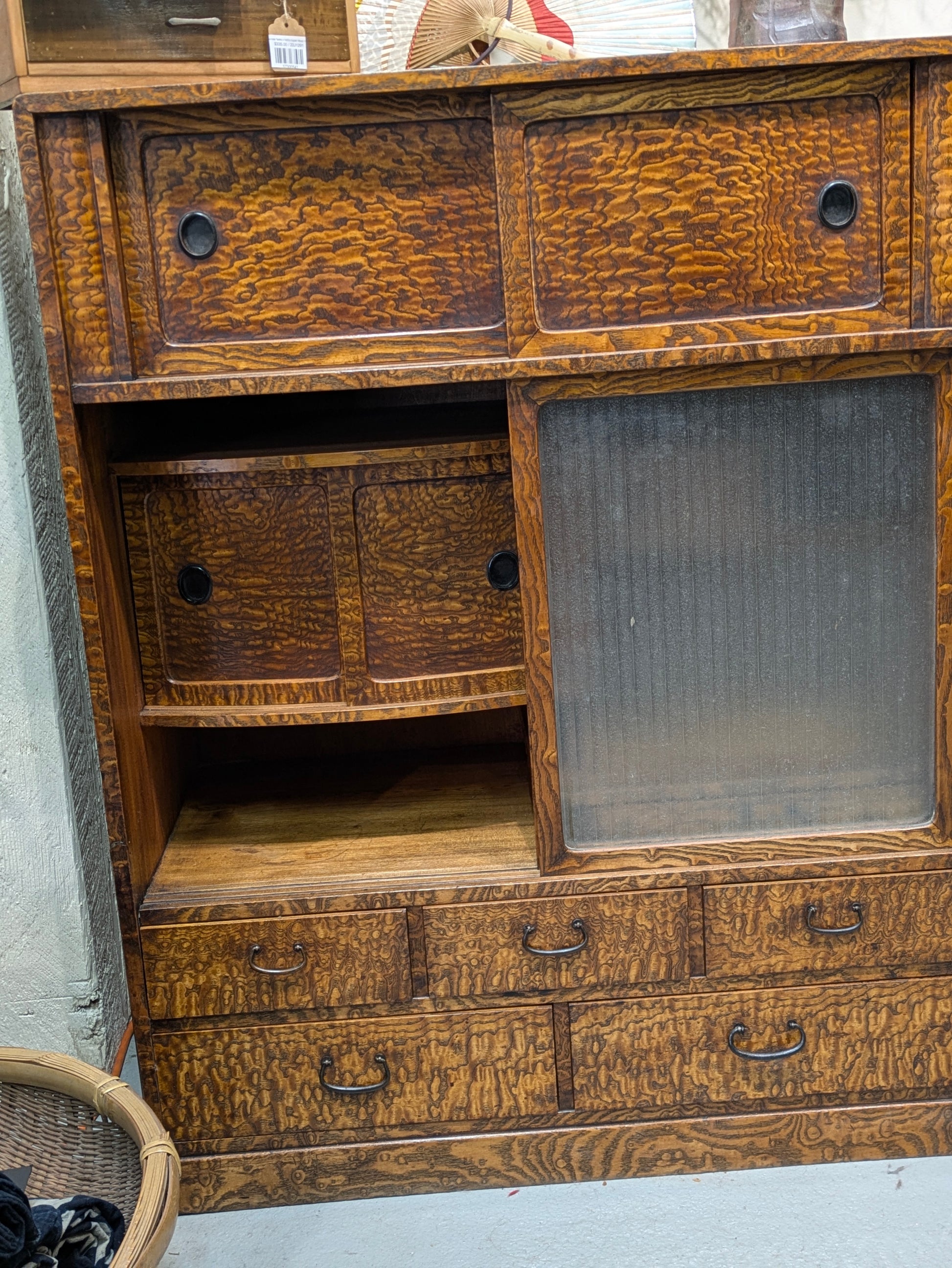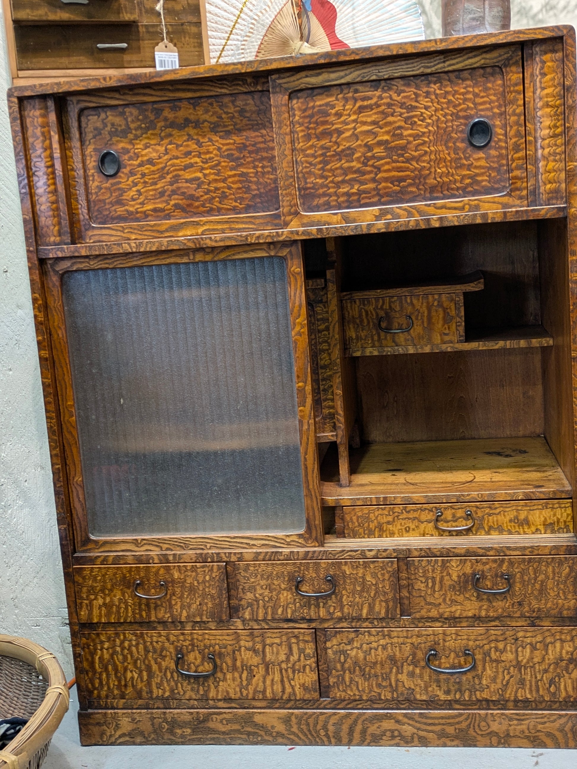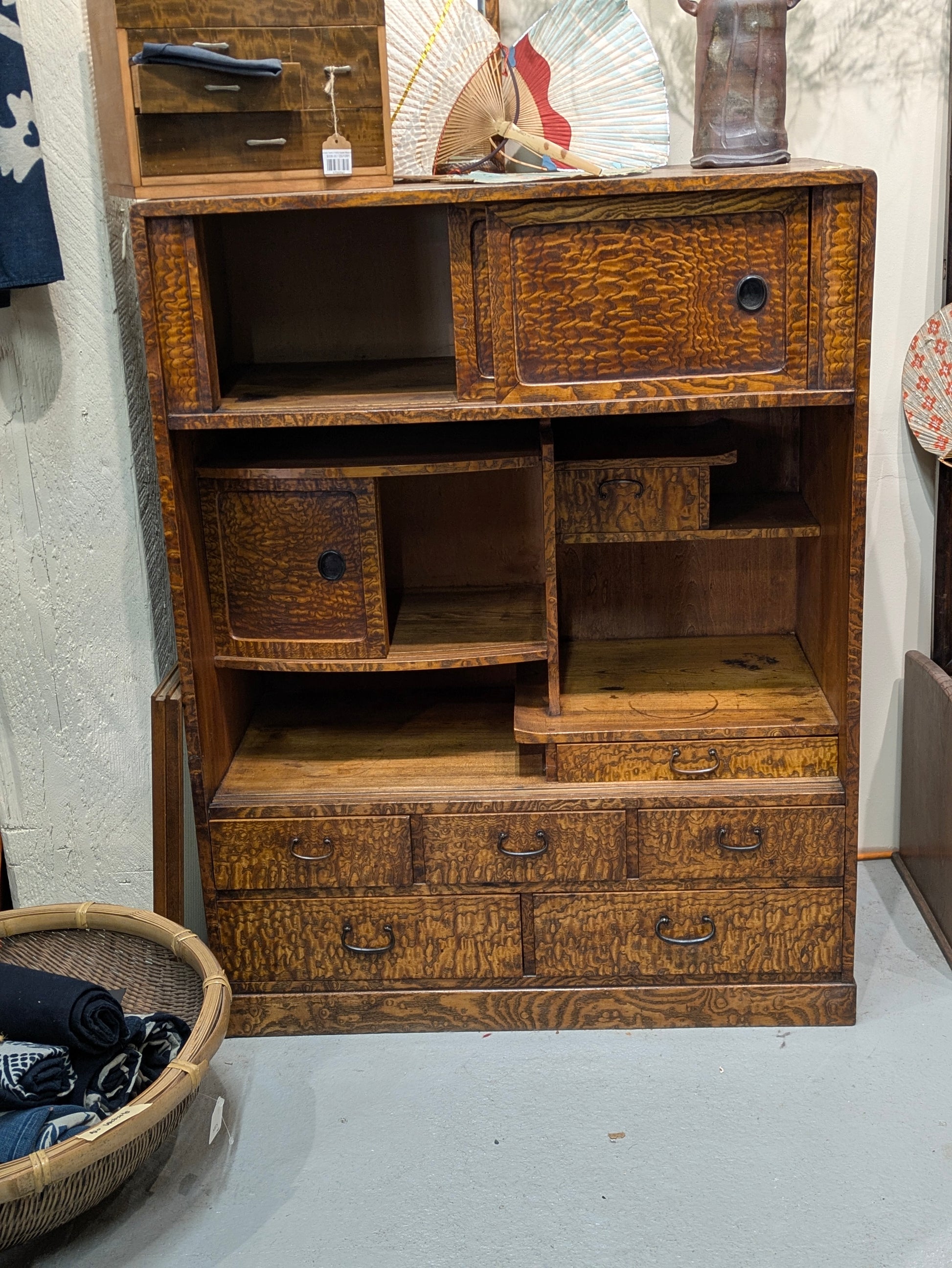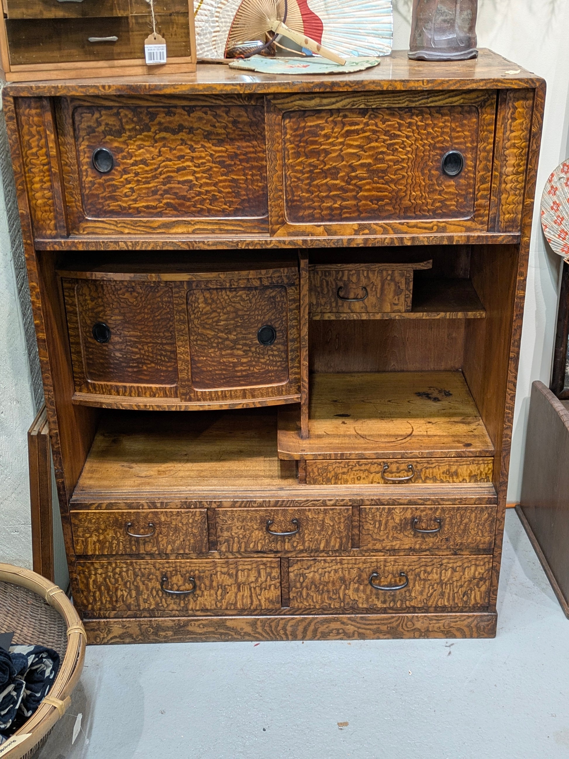Rare Antique Japanese Taisho Era c1920's Chadansu Tea Tansu Burl Wood 39"H