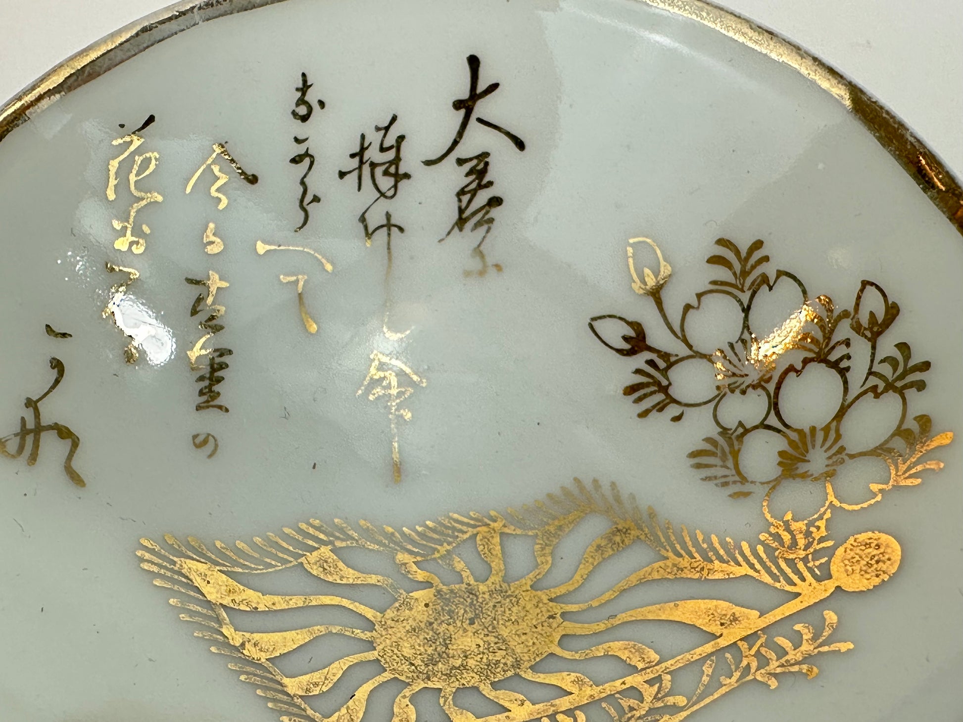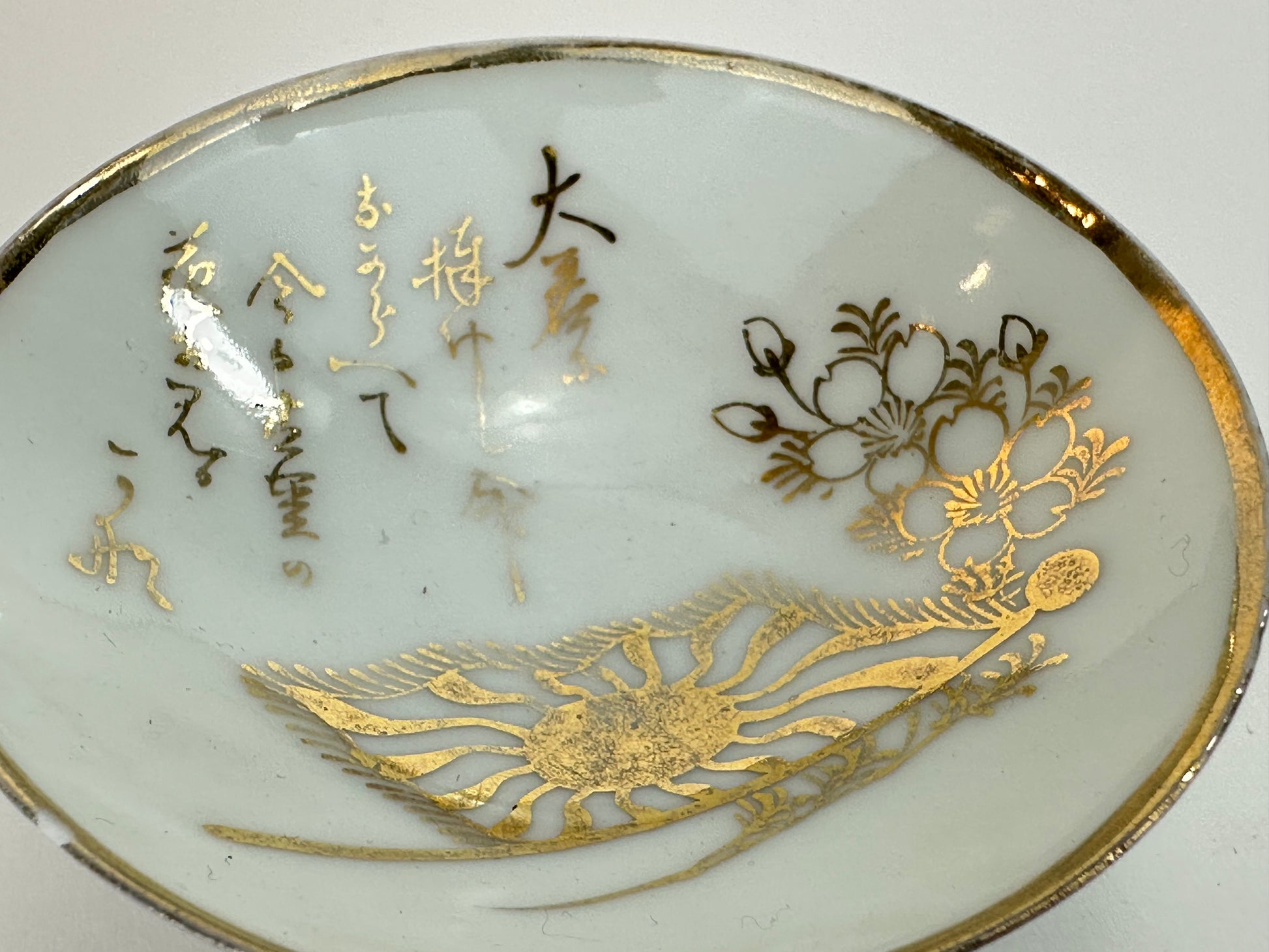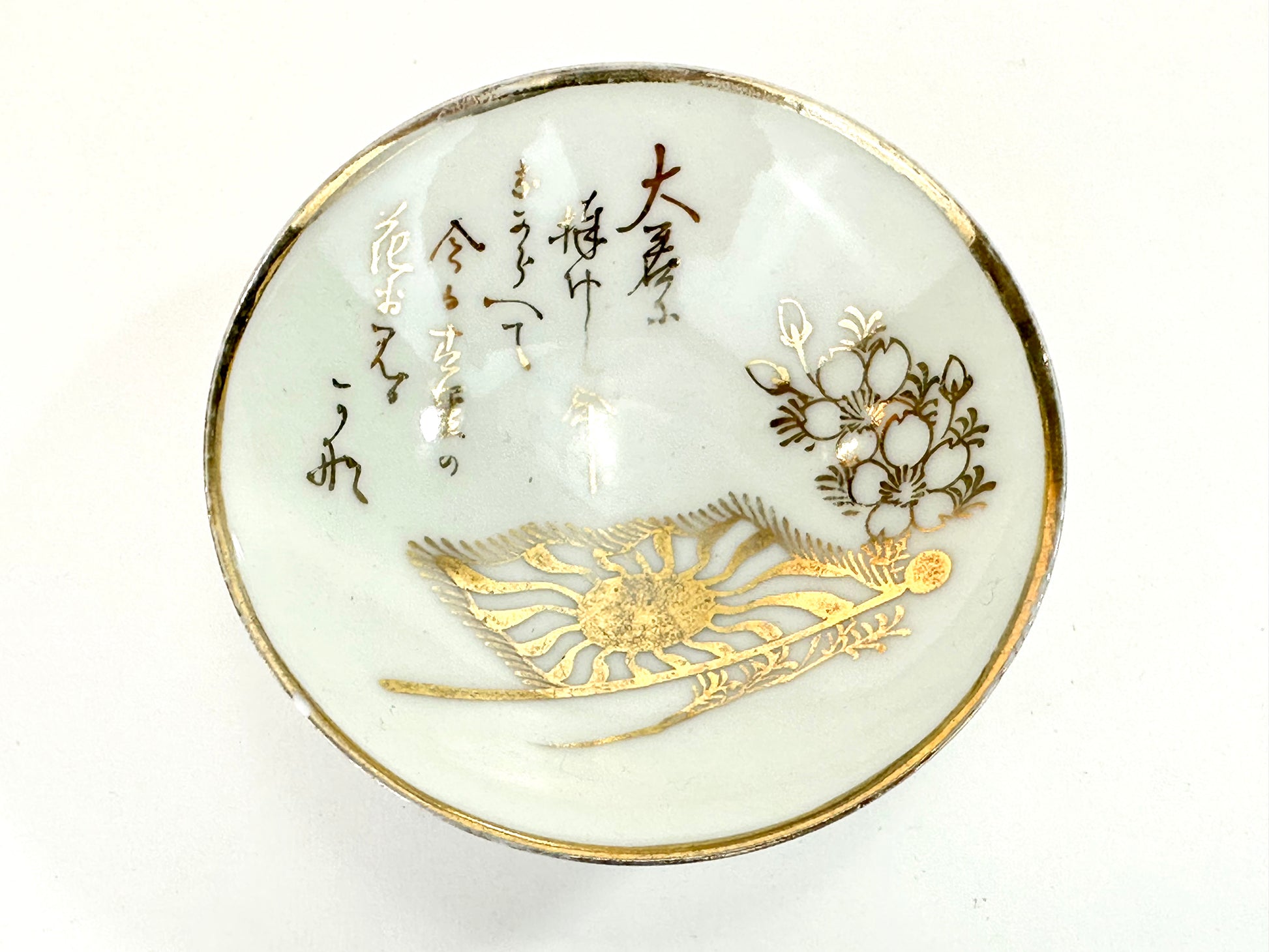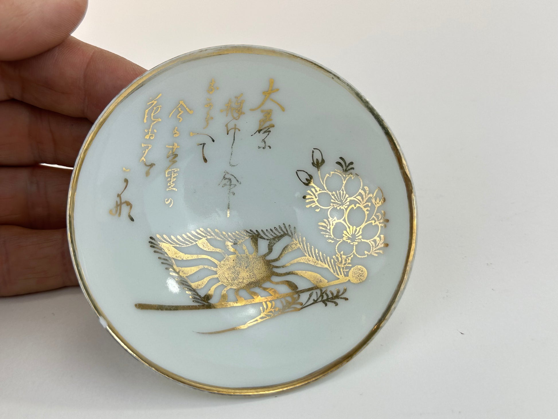 Antique Japanese Porcelain Imperial Military Sake Cup or Sakazuki Gold Trim