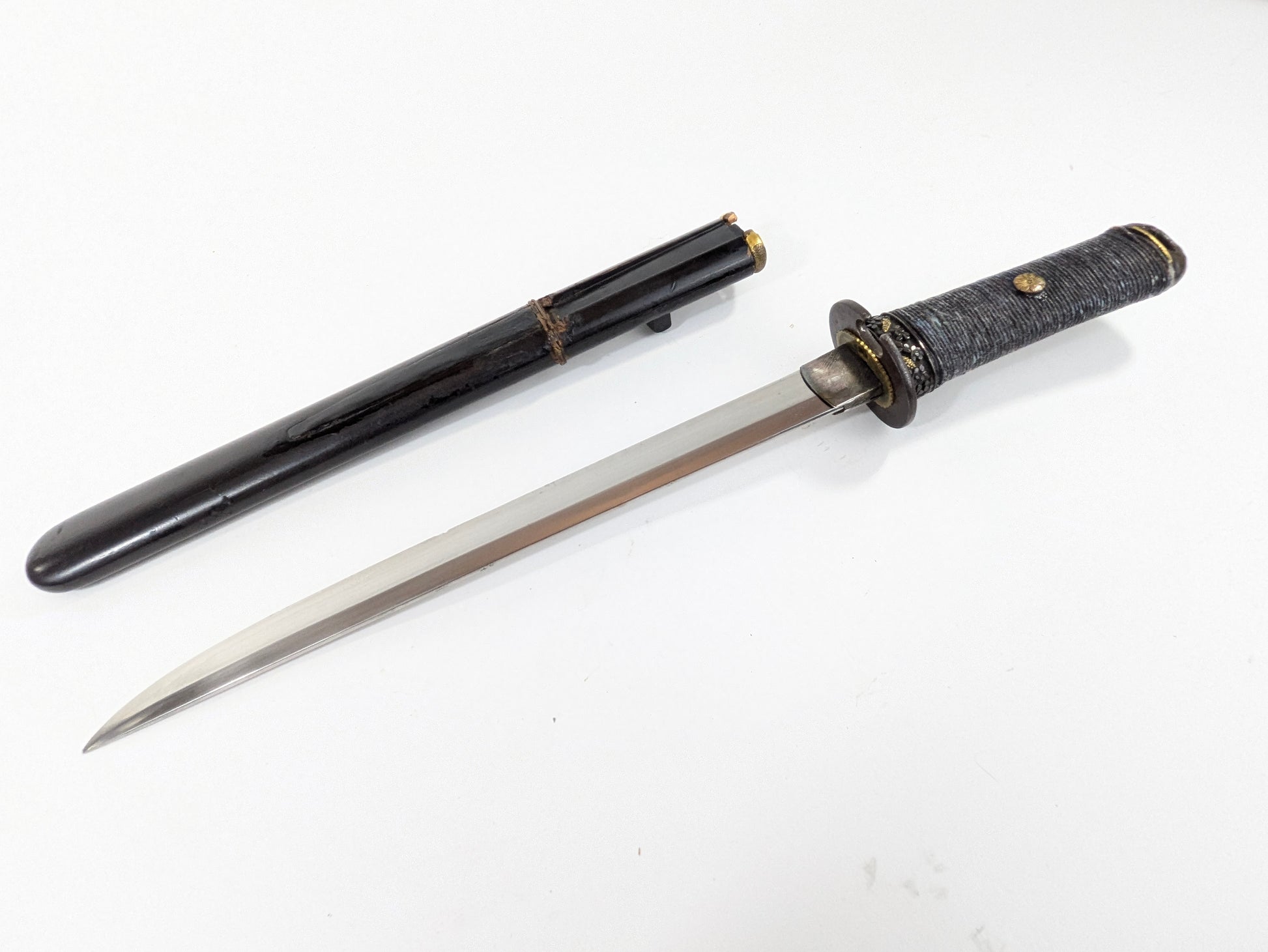 Antique Japanese Tanto – Edo Period – Deer and Pine Fittings, Arrowhead Tsuba, Black Lacquer Saya LS122