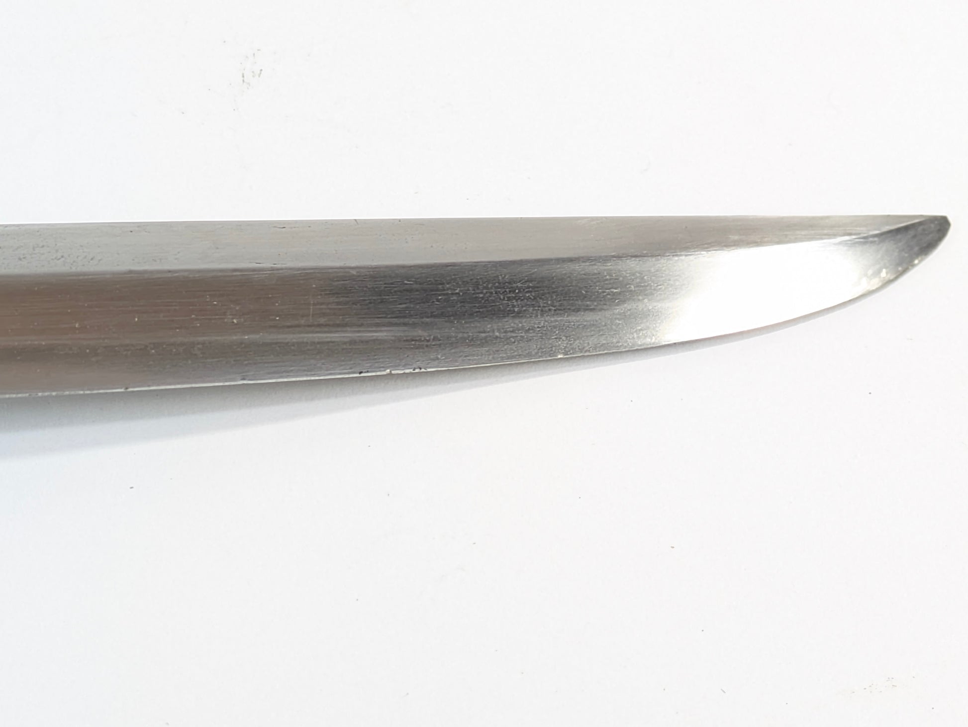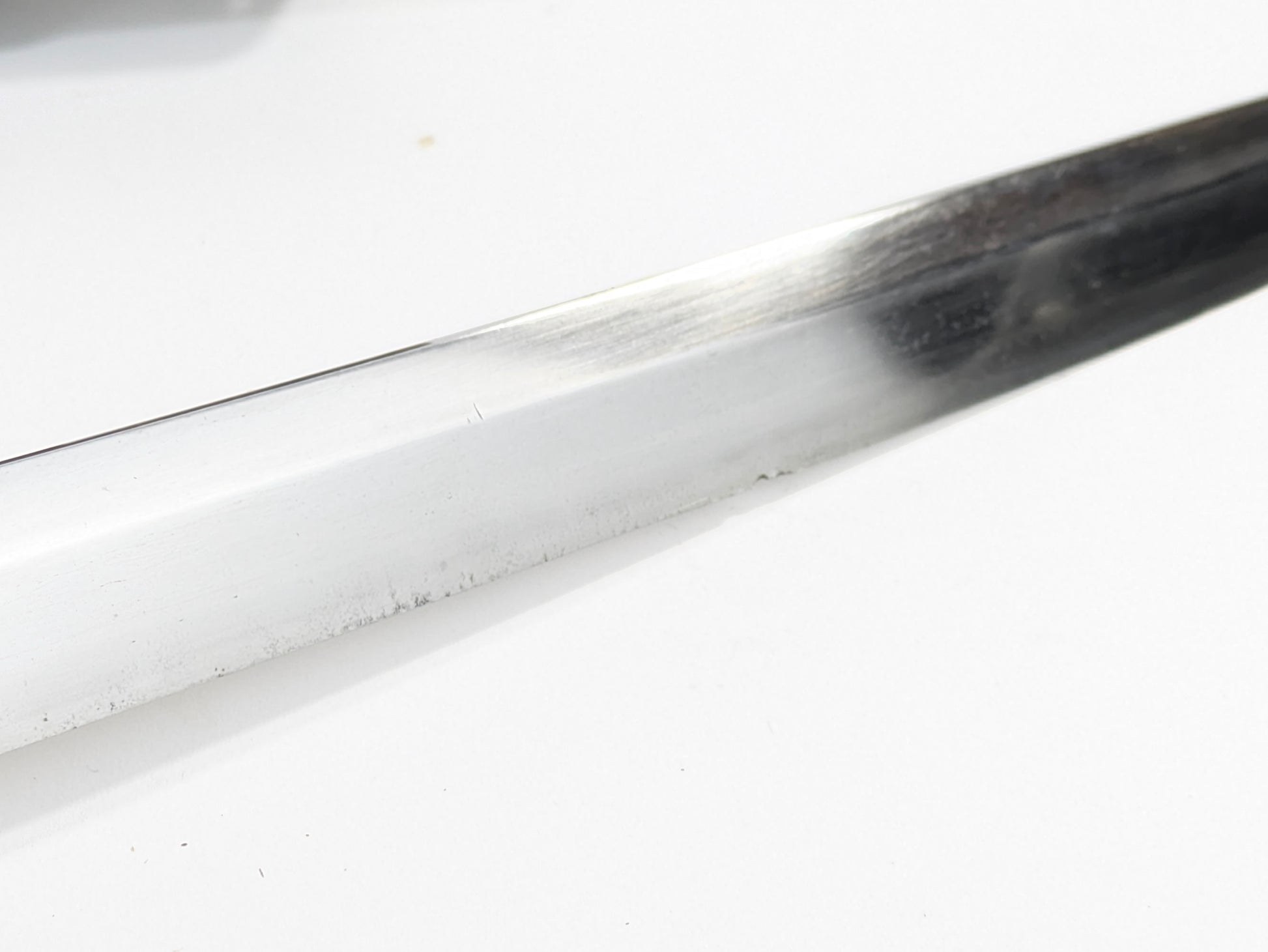 Blade: Hira-zukuri, hand-forged, suguha hamon, visible hada