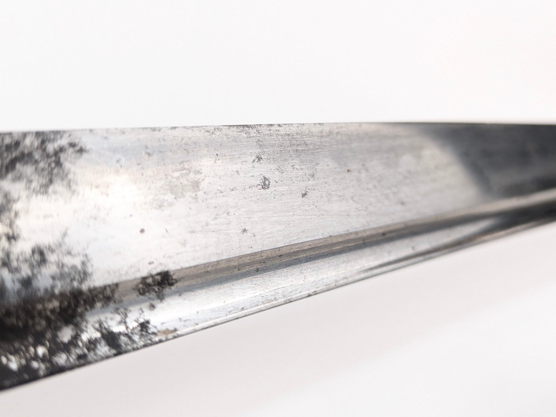 • Blade: steel with single, wide fuller; regulation curvature; temper line not intended to be visible on these factory blades.