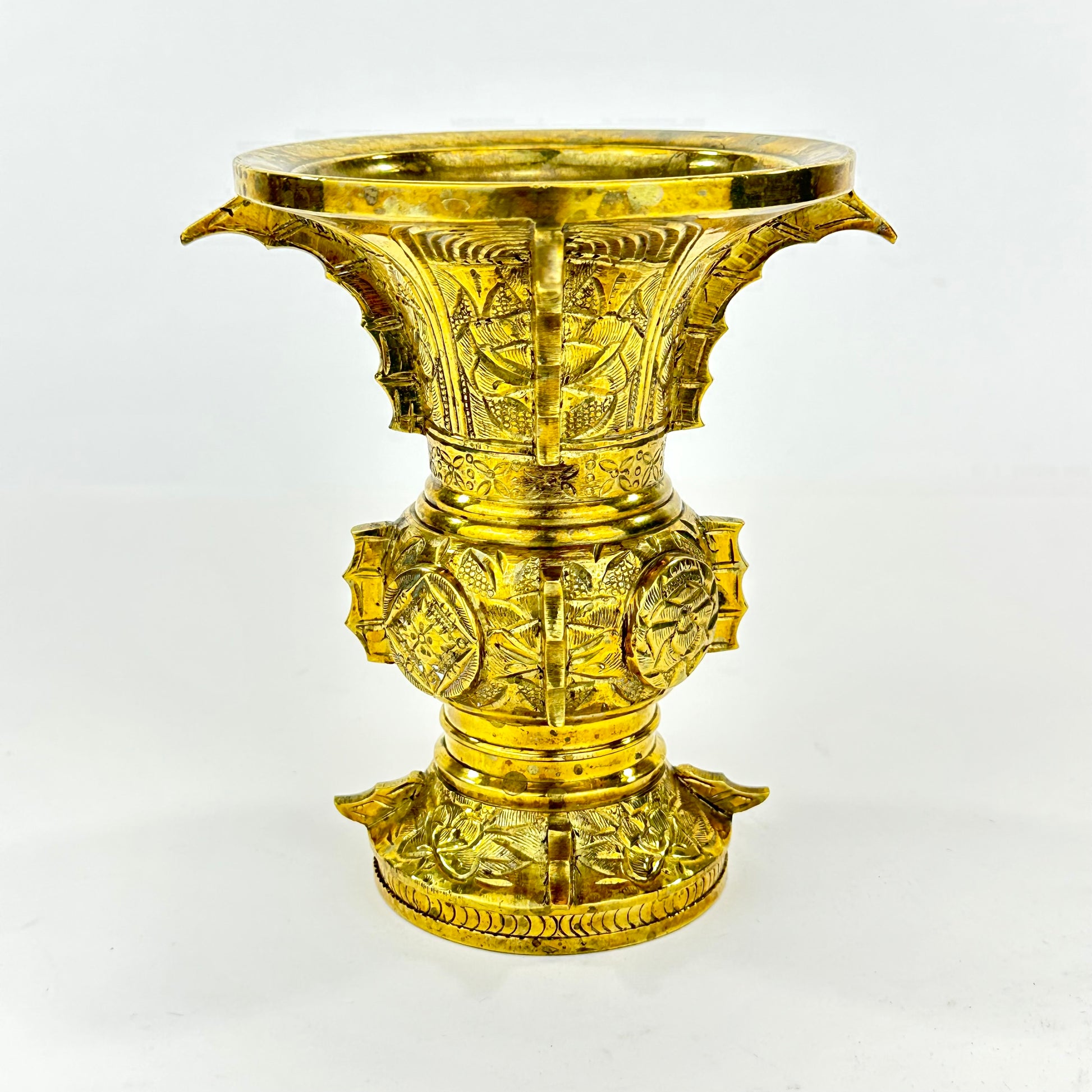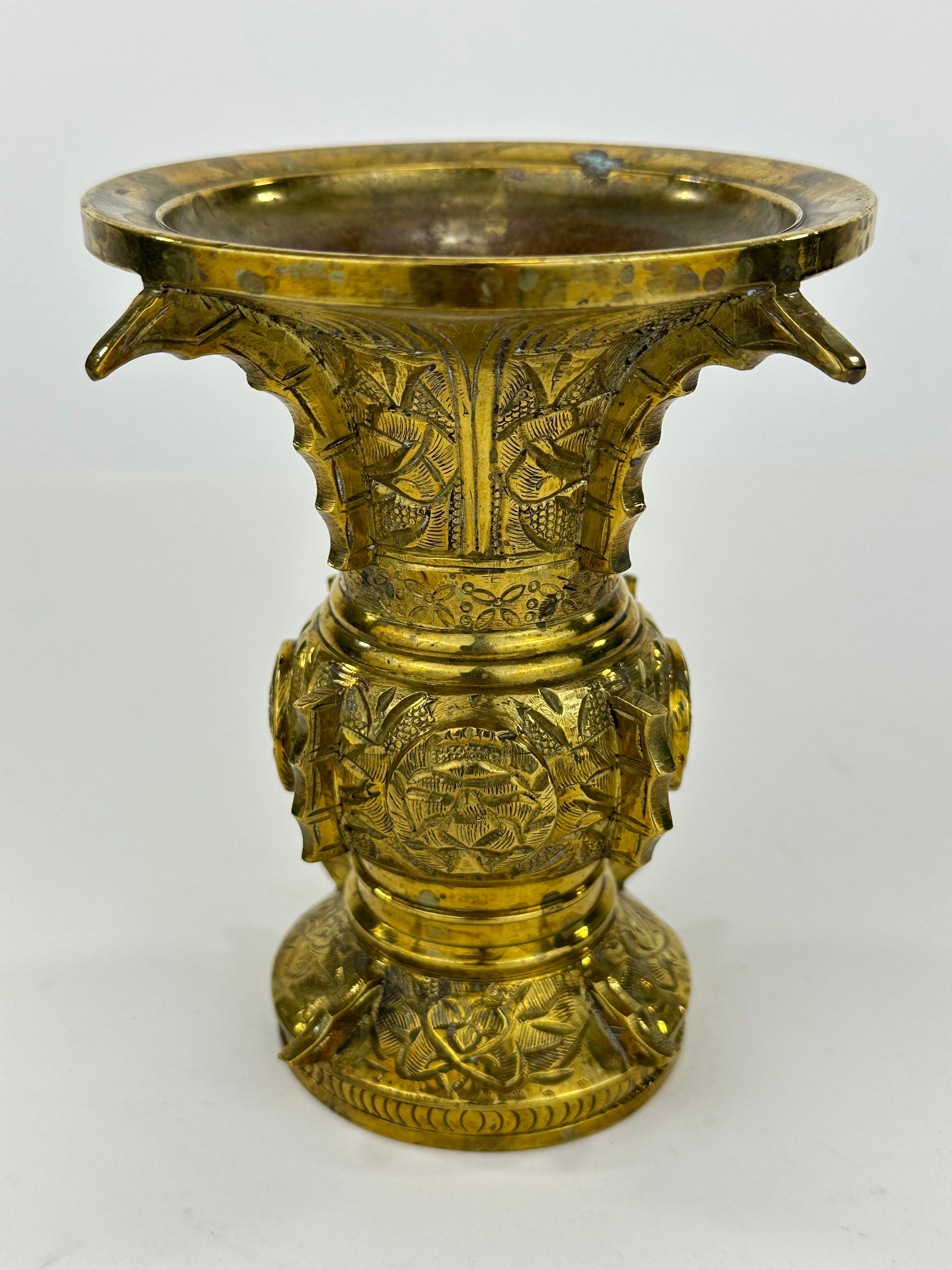 Antique Japanese Gilt Bronze Butsudan Vase – Buddhist Ritual Offering Vessel 6"H